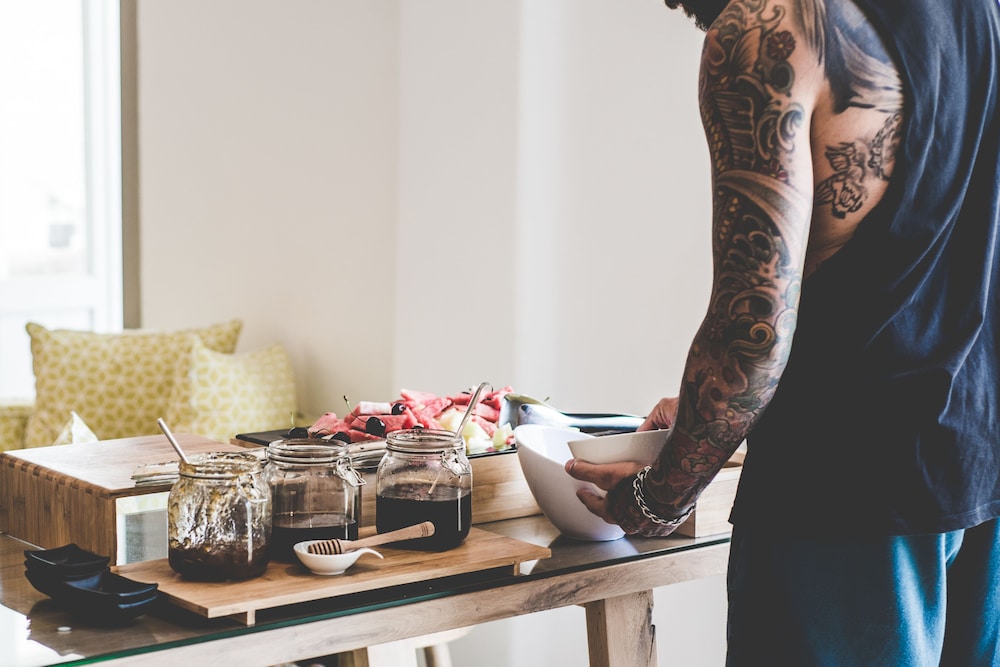 Guests are provided with free hand sanitizer