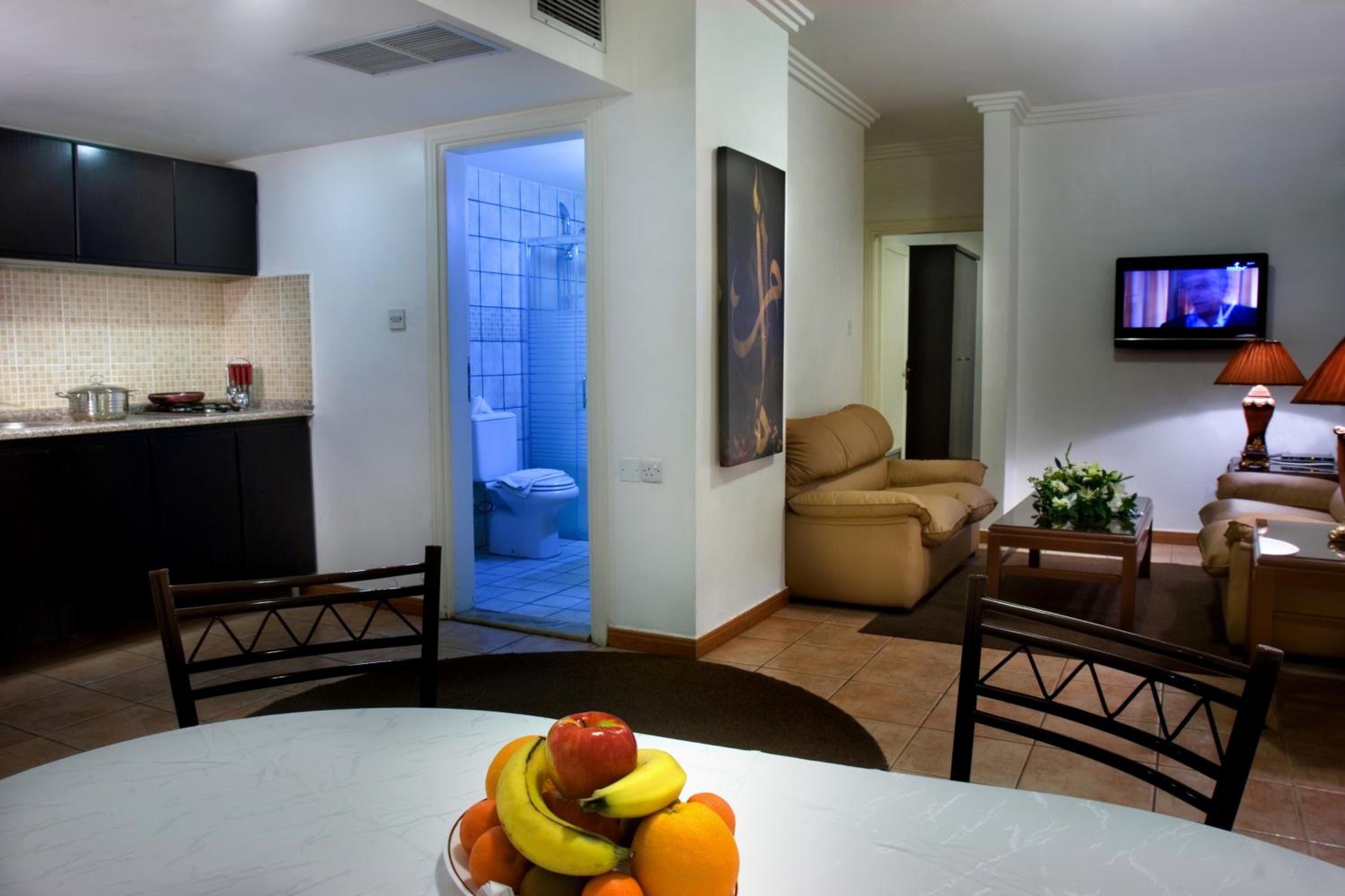 Barakat Hotel Apartments in Amman's financial Shmeisani District provide comfortable self-contained accommodation near shops and grocery stores. The 24-hour Safeway mall is just a short walk away, offering convenient shopping options for guests.