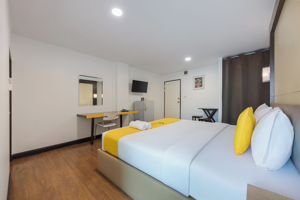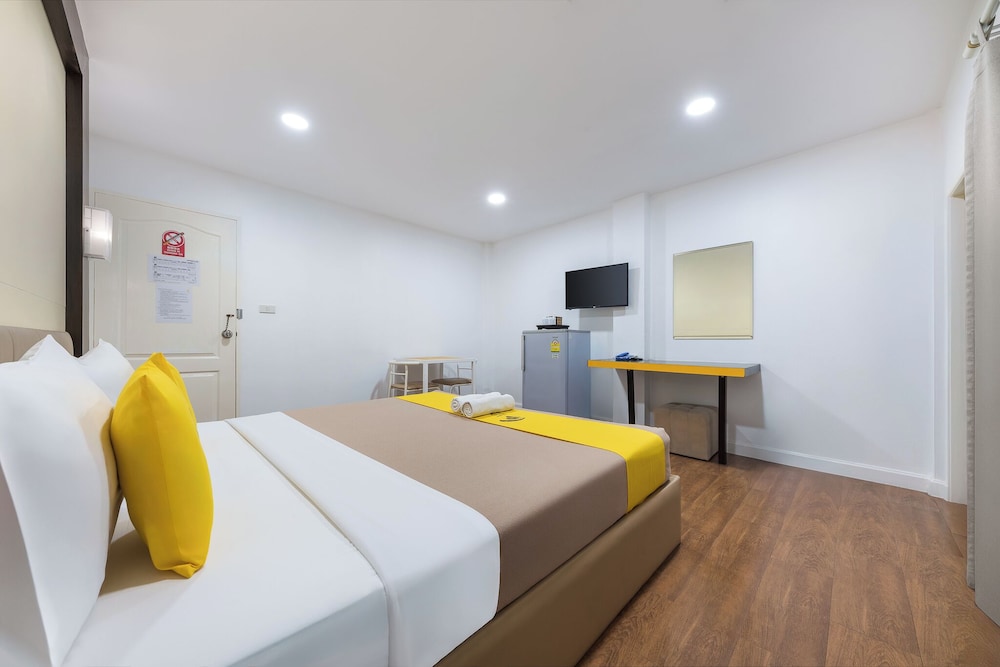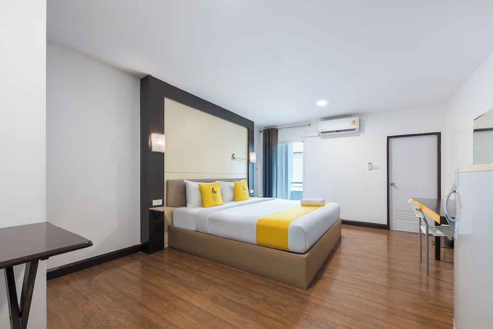 Not a tourist area though a few attractions in the vicinity. Good choice for those going for business convention and meetings. Halfway from airport to downtown. Room was very spacious, functional and clean. Big fridge, wardrobe with many hangers, tv and big toilet area too. Very basic breakfast with toast and coffee offered for free at the entrance area. Near to nosiy main road but accessible to Big C and Jaz Urban Mall and 24-hour Foodland food court but 15-mins walk away in the dark. Taking a bus is recommended.