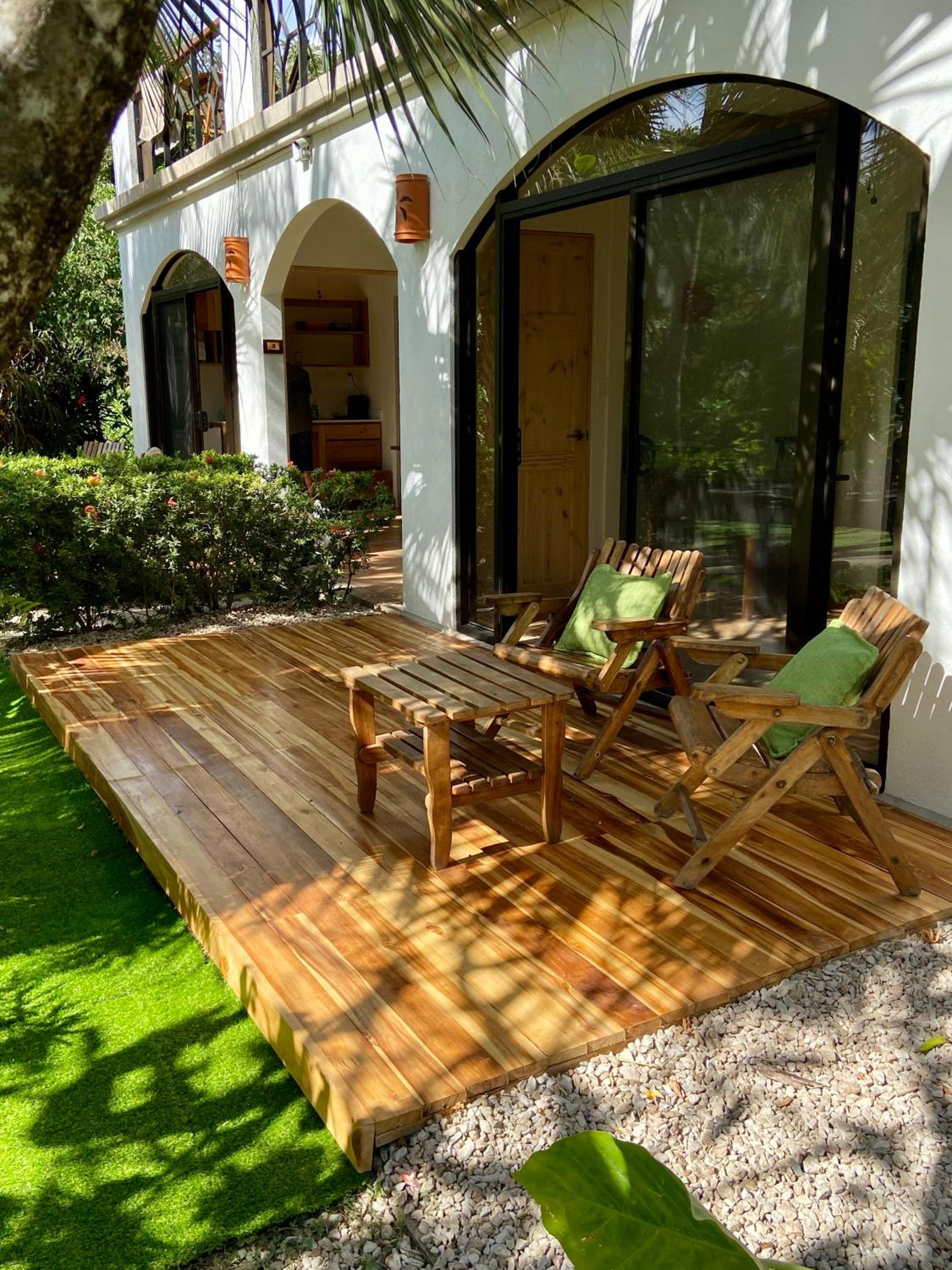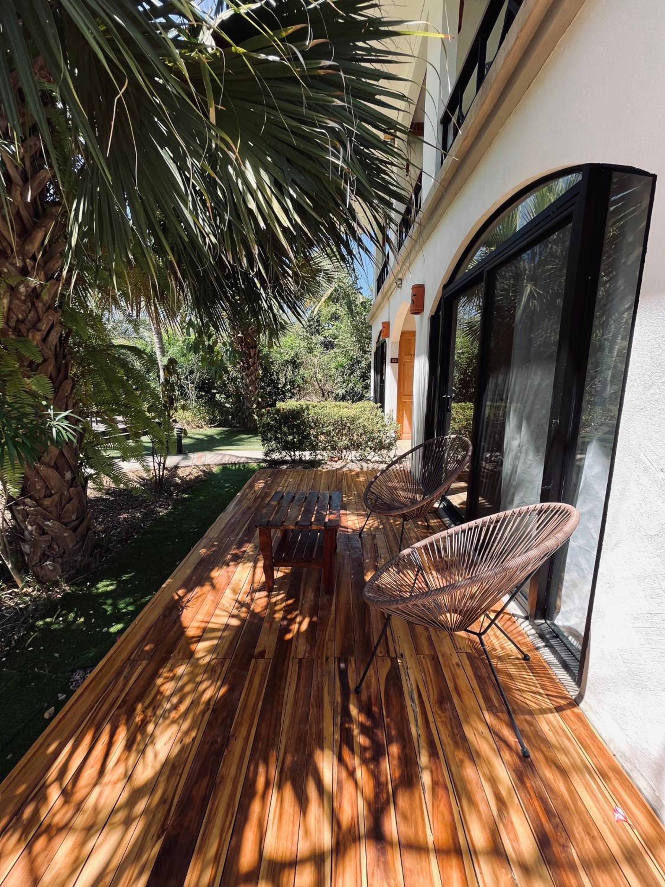 A strangely anti Costa Rica vibe. It had a very artificial unneighborly vibe. Gated beach that can only be accessed with a code. Beach was dirty. Entire common area was covered in fake, plastic grass. Very unnatural. It was common for people to not pick up after their dogs. We did not have WiFi and breakfast was not included as advertised. The advertised near by restaurants were closed for the season. Did not encourage sustainable living ( no recycling amongst other things). Reception was unhelpful, unaccommodating and seemed bothered by our very presence.