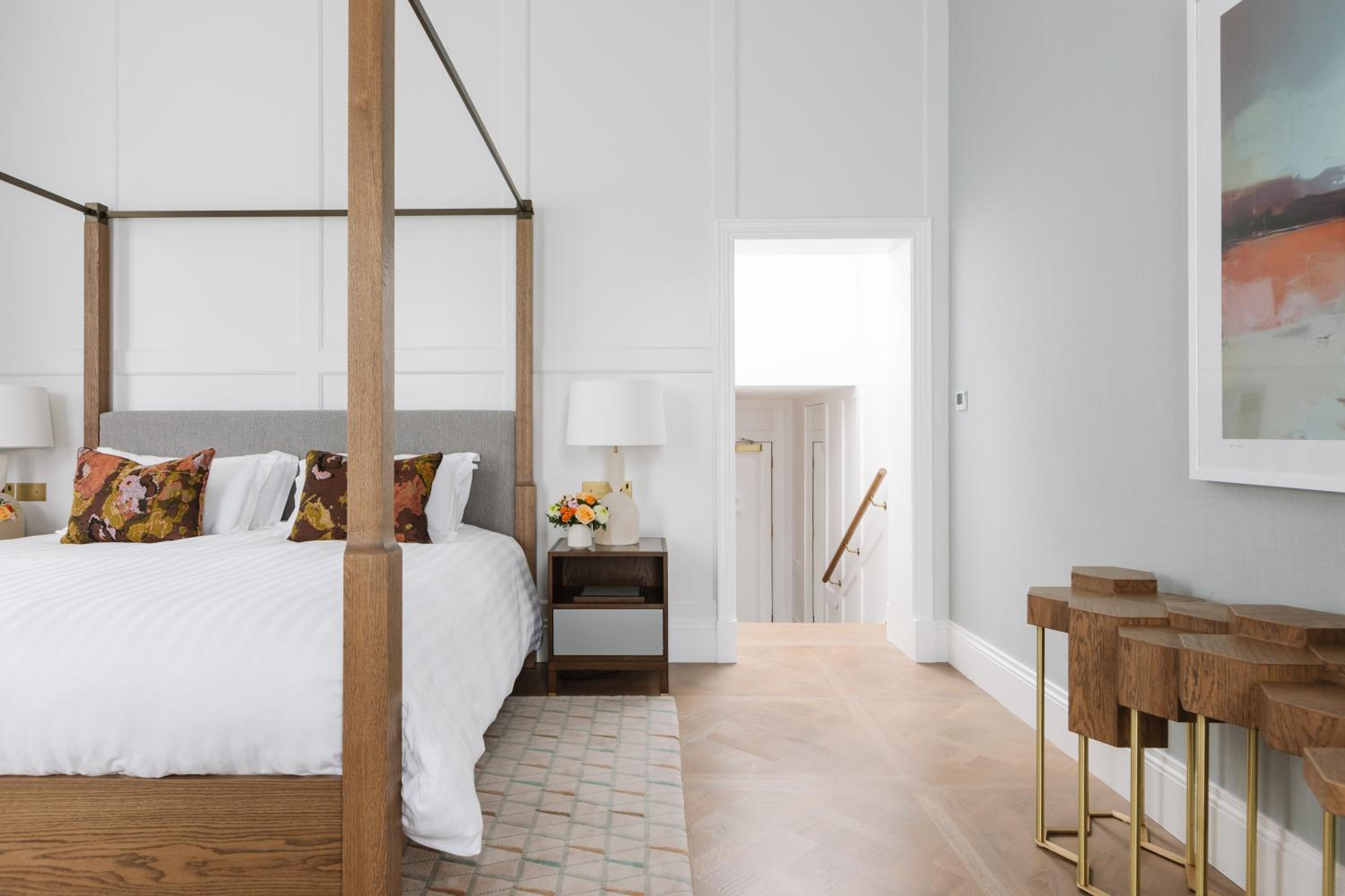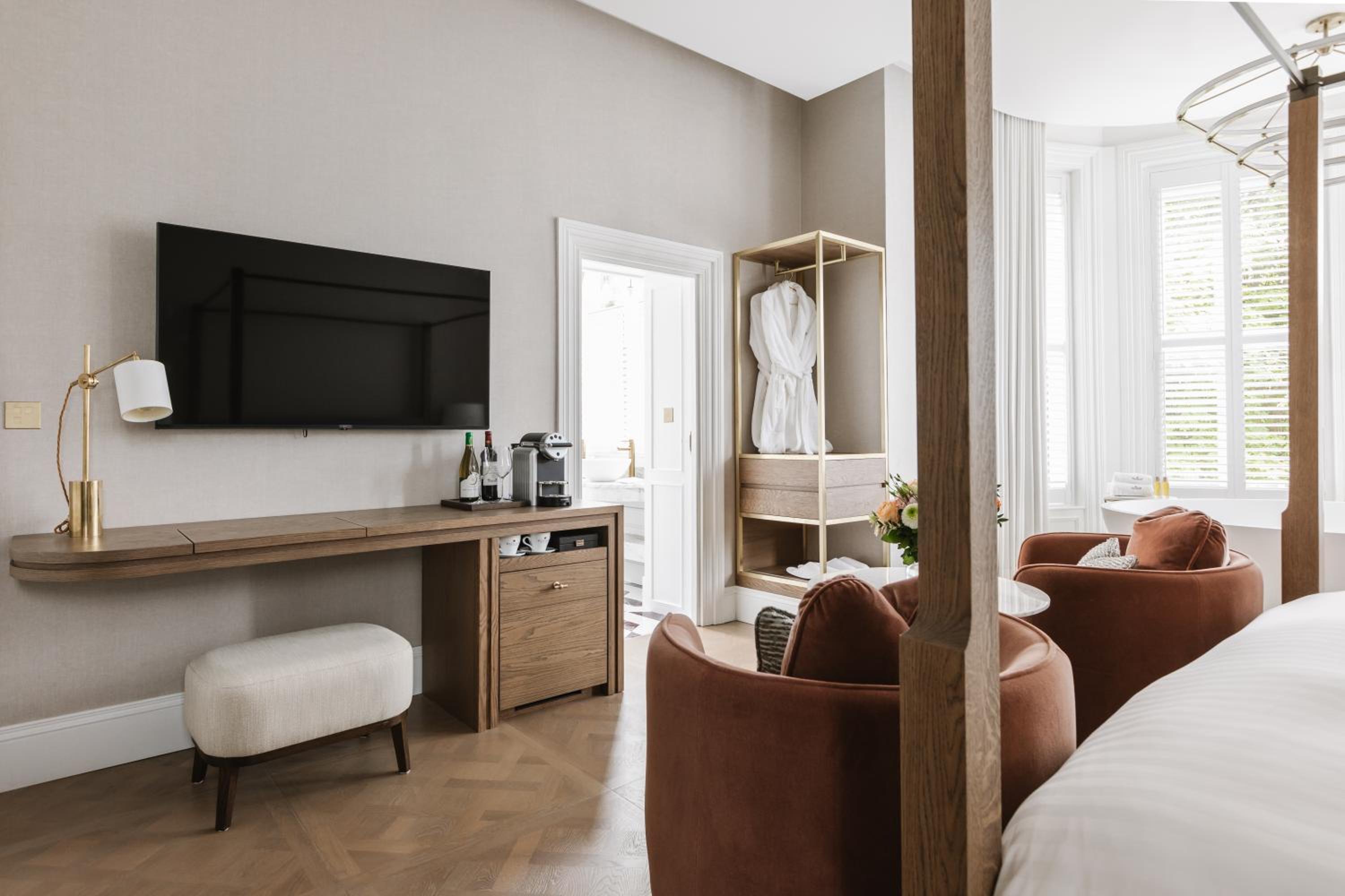 Reception staff quite abrupt answering phone calls while we were trying to check in.. Room outdated and shower didn’t have any pressure (R107) Cold tap supplied look warm water which was nice brushing ur teeth in.. Carpets from reception up to room all stained.. Breakfast wasn’t any better, food was terrible, self serve tea / coffee out of a machine very budget hotel like.. When paying £220 a night I would expect premium facilities, service and quality throughout.. All in all quite disappointed and I’m not a person who complains easily… If nothing else can your handy man put a bit of felt on the door at the top of the stairs from reception to the first floor rooms.. The door constantly banging all evening was so annoying.. 😡