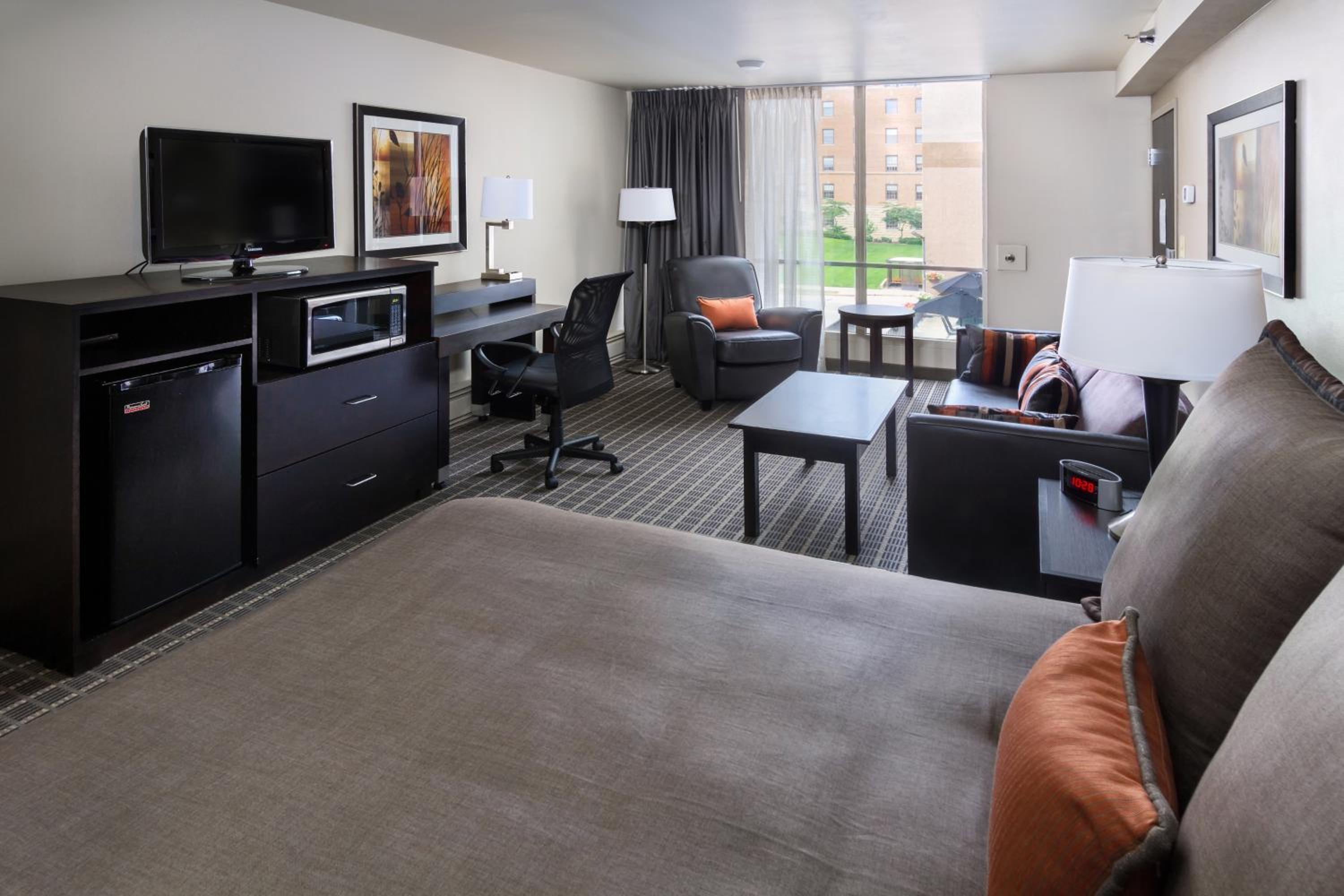 My husband had surgery at Mayo St. Mary’s hospital. All we had to do is walk across the street. Everyone was friendly. Room was clean. Good breakfast. Loved the hot cookies in the evening. Always had coffee and hot water for tea and hot chocolate in lobby.