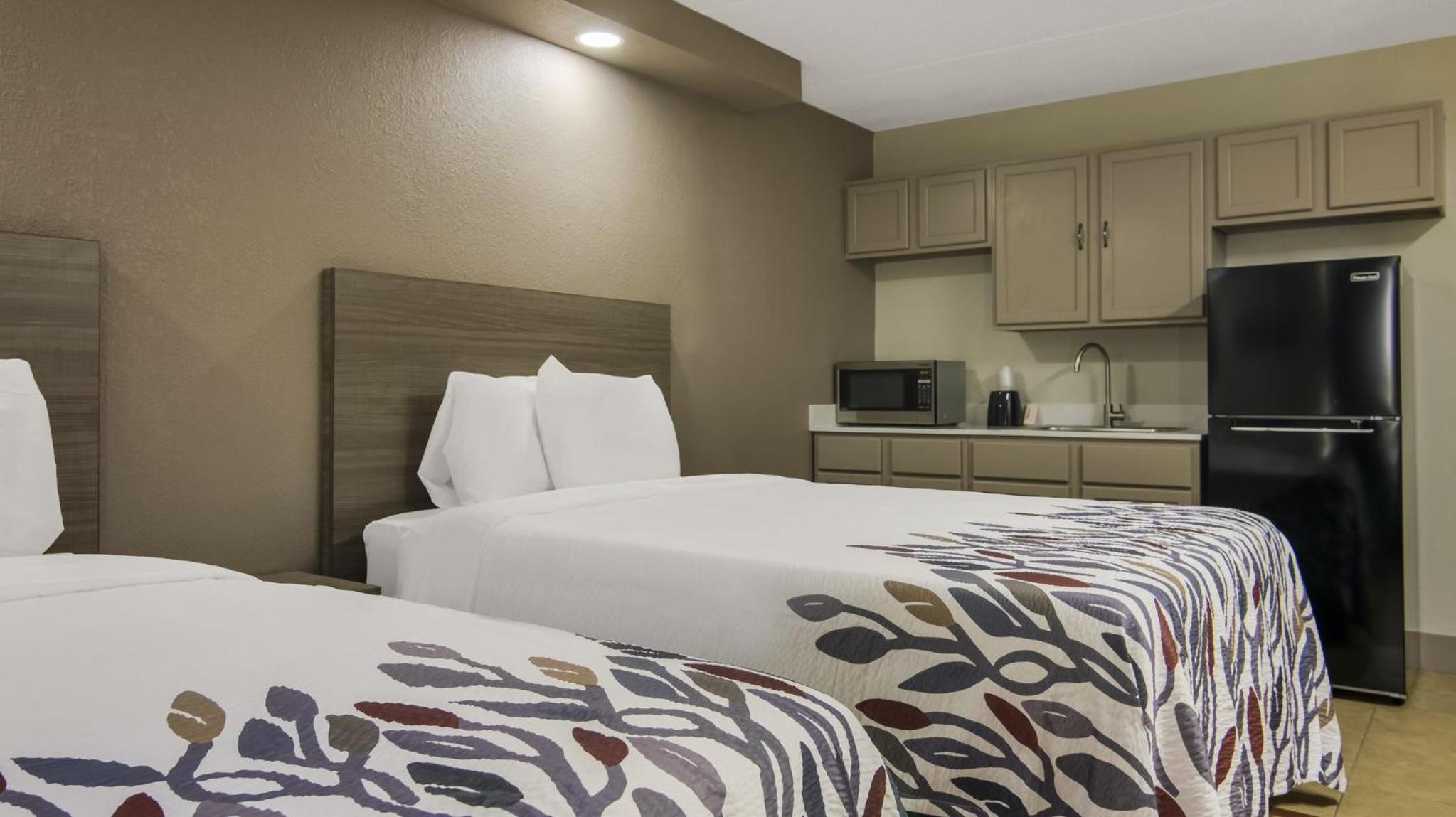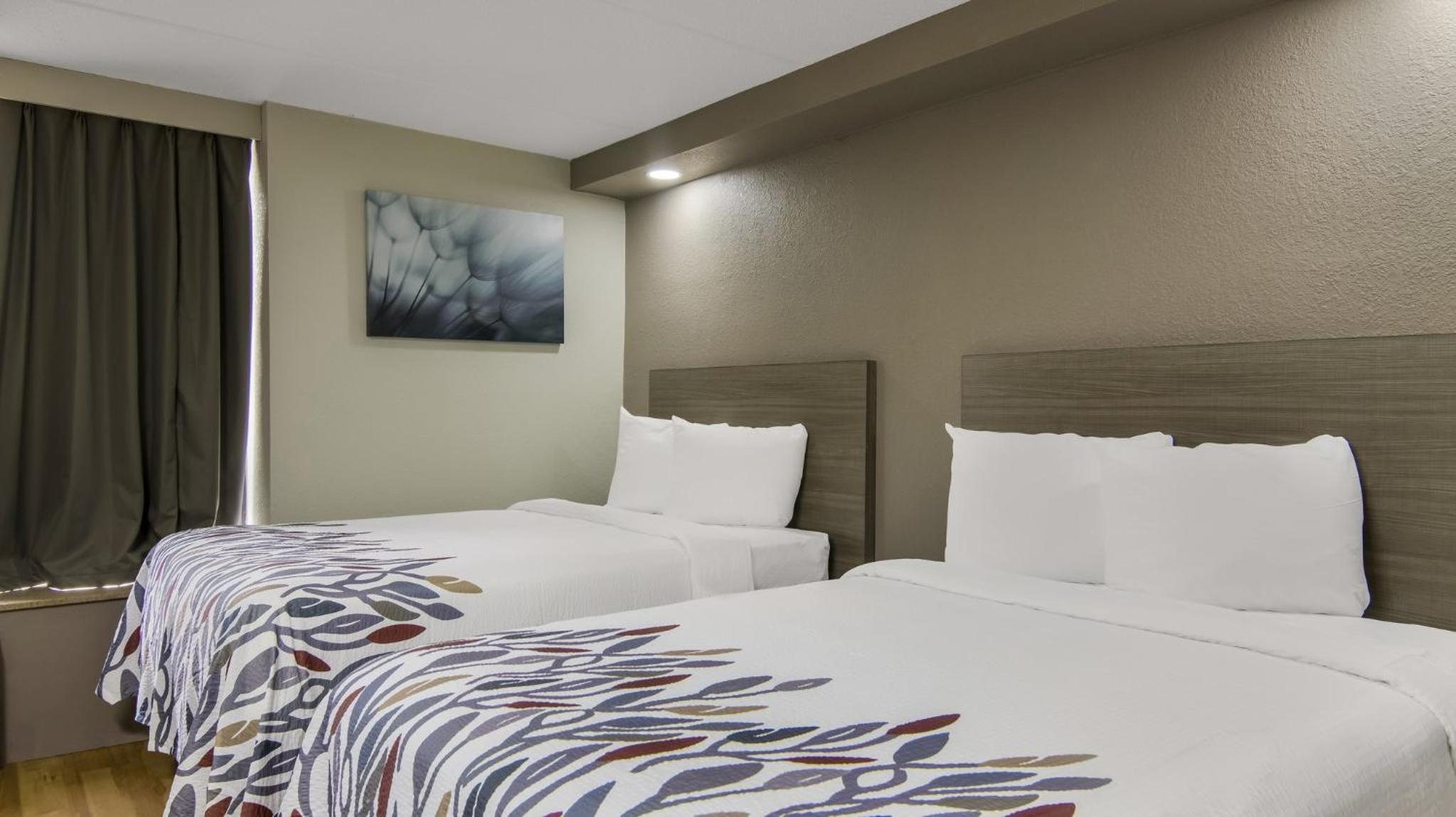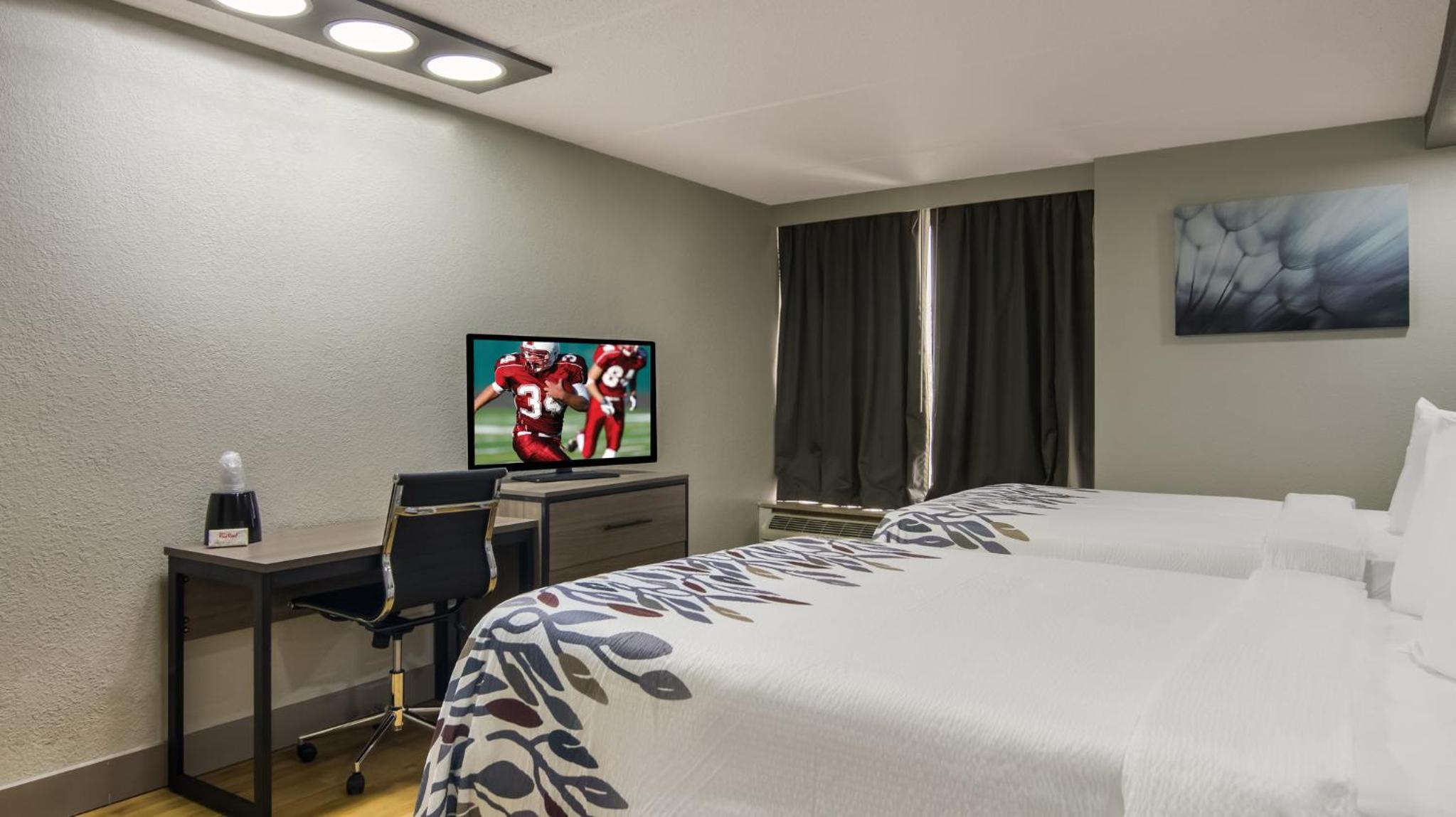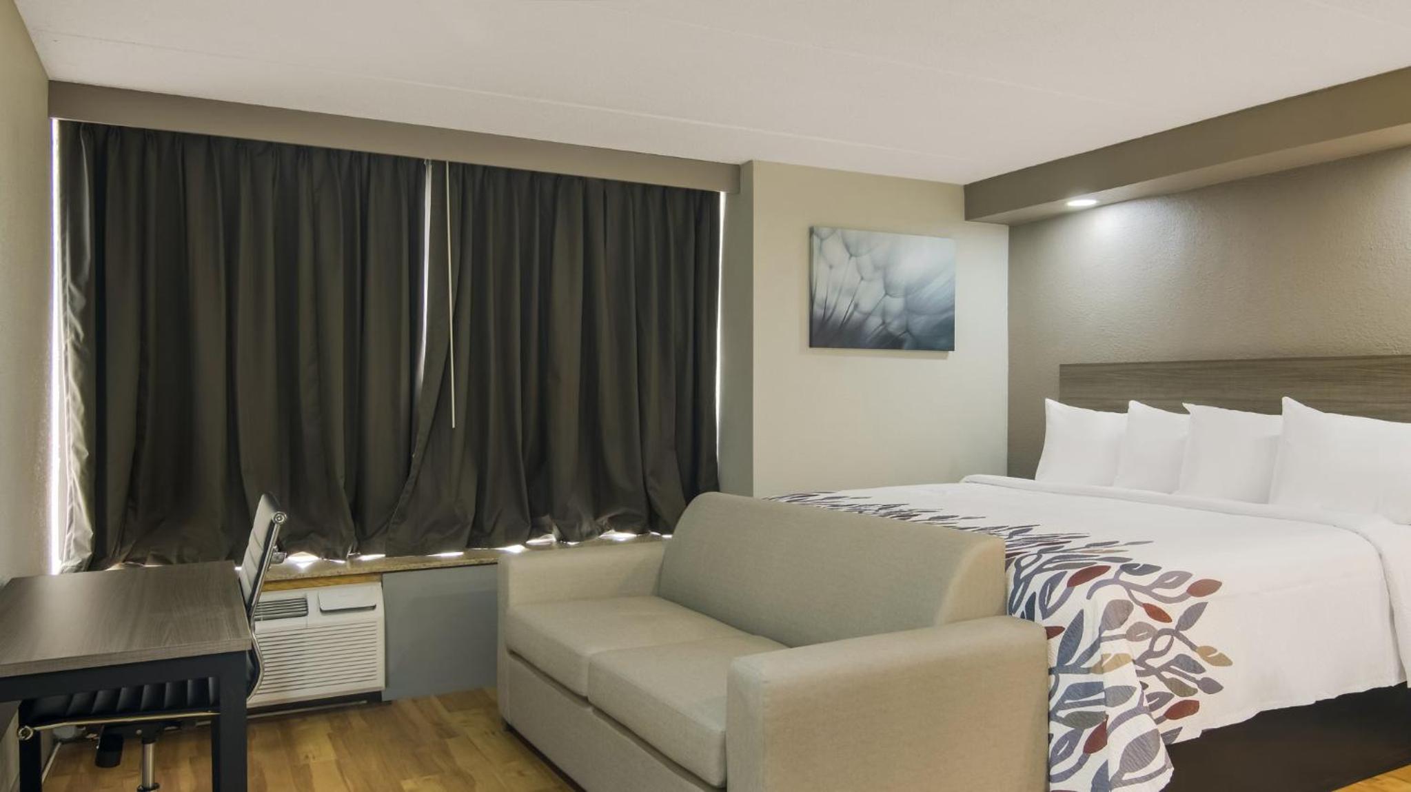 Each guestroom at this Red Roof Inn is equipped with free WiFi, cable TV, microwave, refrigerator, and coffee machine. The private bathrooms offer convenience with a bath or shower. The 24-hour front desk and free parking add to the overall comfort of your stay.