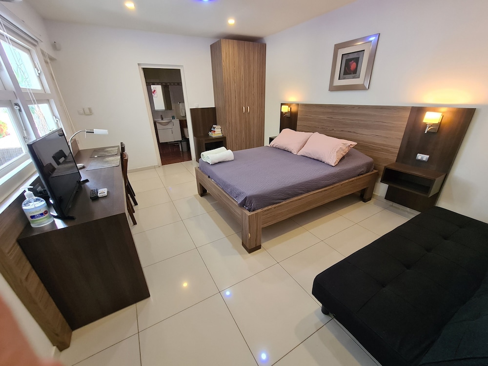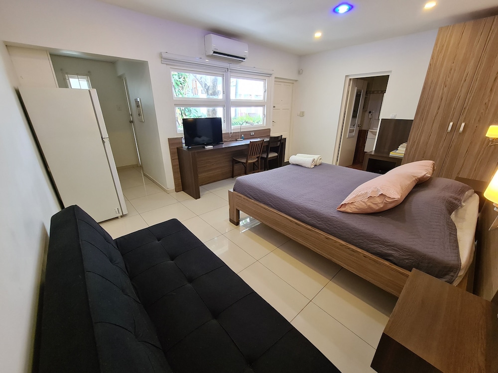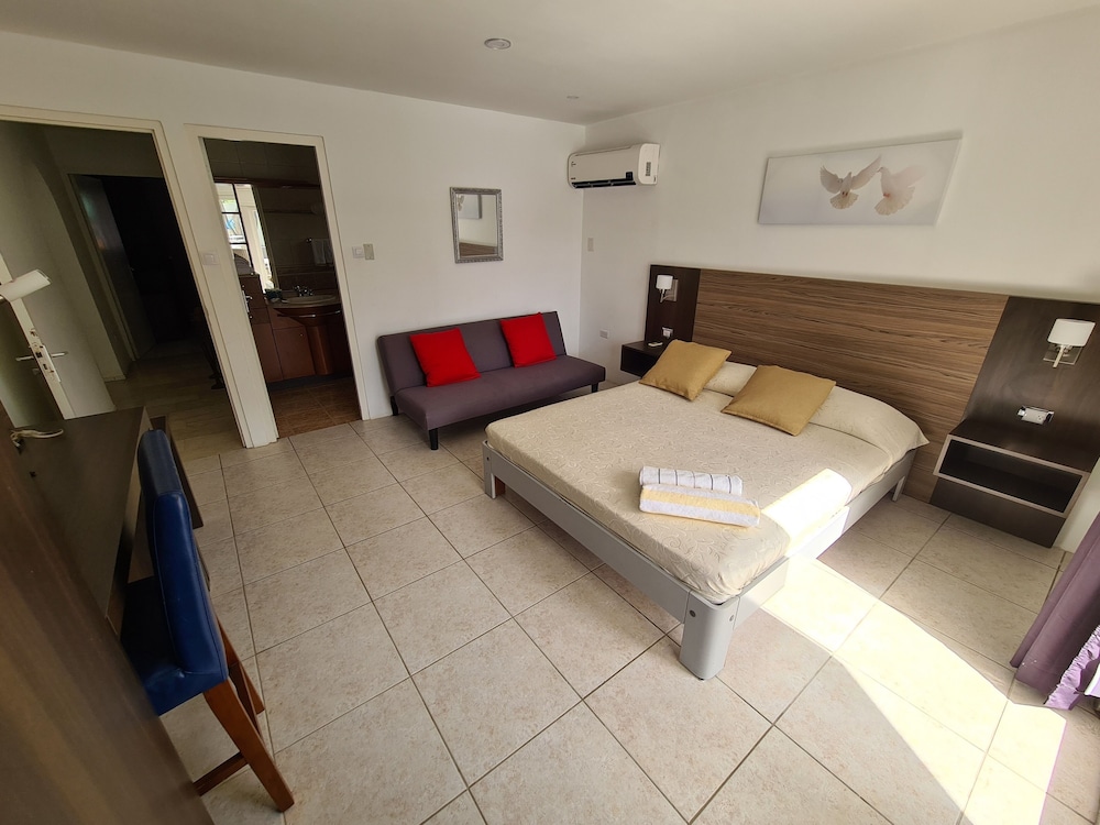This place was a bit deceiving from the outside as it appeared a bit small and run down. The room itself, however was completely remodeled and nice and modern looking. The deluxe studio had two decent sized rooms with king beds. The bed was comfortable, but the best part was the sheets. These were the softest sheets I've every slept on. The only thing about the room that was strange was that everything was pretty much new, except the toilet seat, which was in a separate room. The room had a glass door to the pool area. The pool wasn’t very large, but lots of sitting room. It also had a community kitchen. The hotel was close to a grocery store and about a 7 minute walk to the beach. There weren’t any restaurants nearby except at the beach. Overall very pleased with the hotel. Front desk staff was exceptionally nice and helpful.