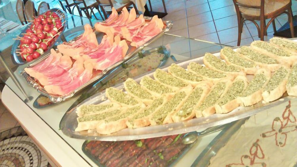 Abbiamo soggiornato in 5 (io, mia moglie e i 3 bimbi di 9 mesi, 3 e 6 anni).L'albergo é attaccato alla spiaggia e a due passi dal centro: l'unico neo e l'assenza del parcheggio, ma con pochi soldi abbiamo parcheggiato presso un park convenzionato, con bus navetta gratuito h24. Non abbiamo usufruito dei pasti e non possiamo commentarli, ma la colazione era ottima. La pulizia in camera ineccepibile, il personale cortese e la piscina molto graziosa.
