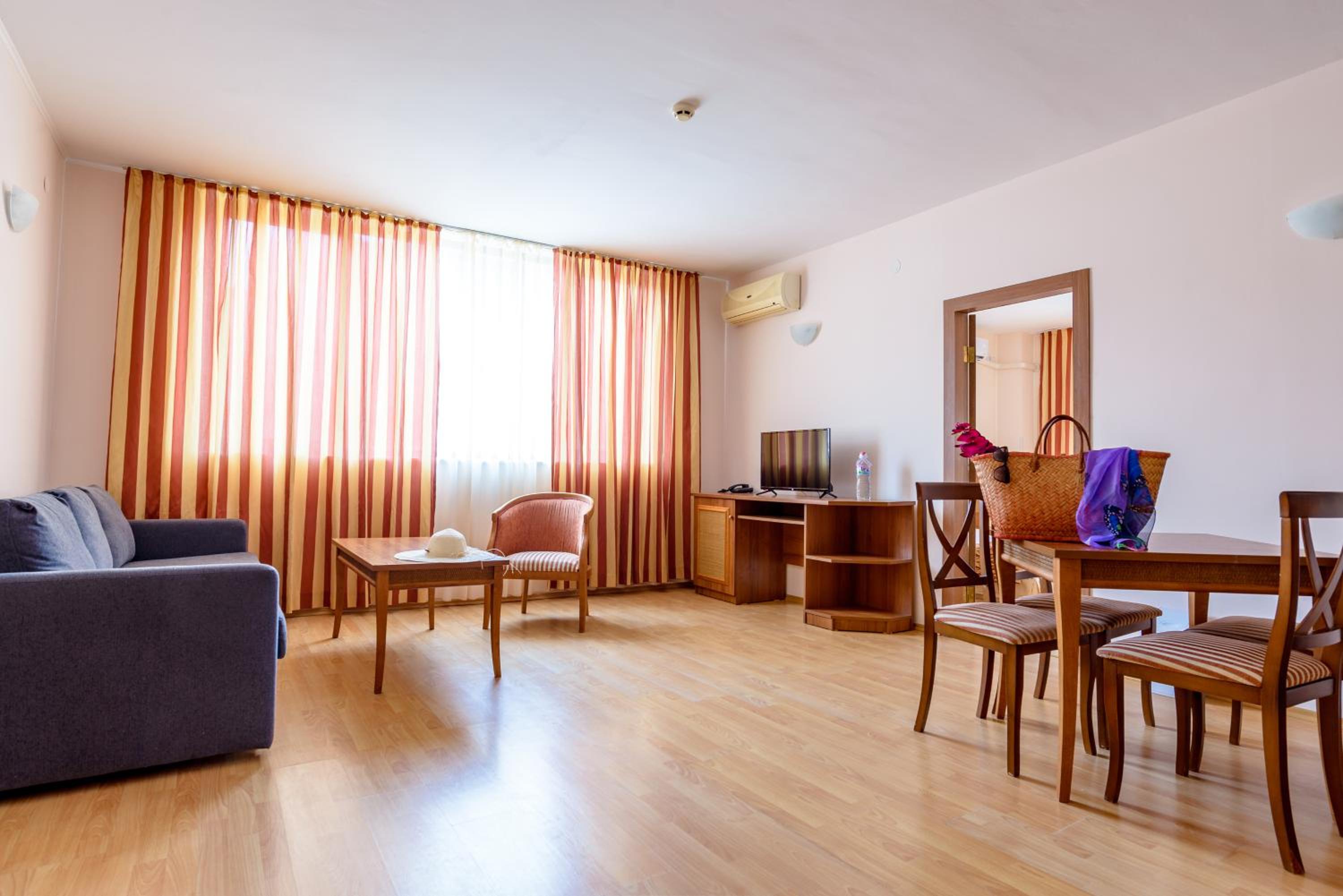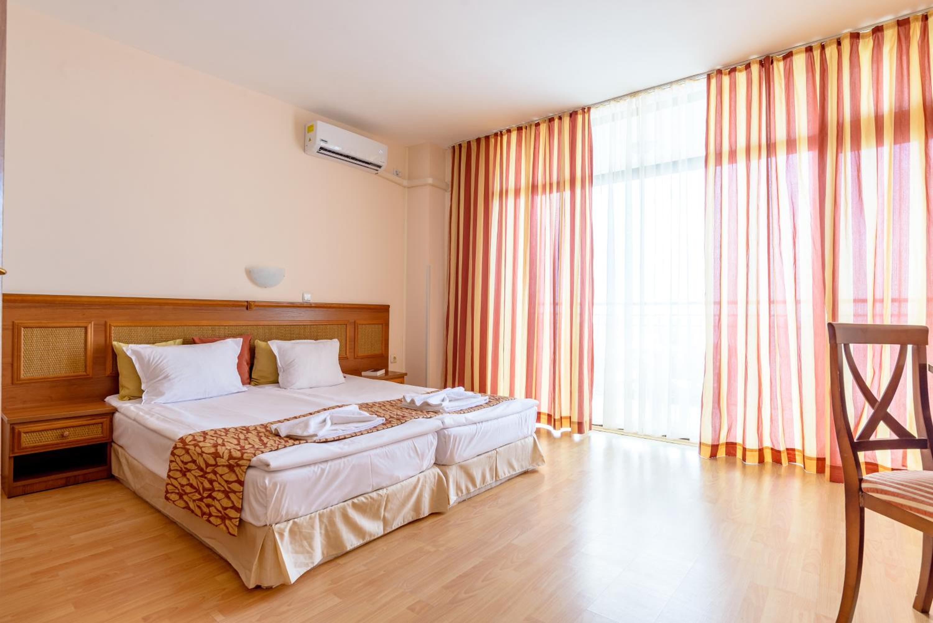 wonderful location , easy access to the beach , room it was extraordinarily clean and big . The room had exactly the sea view that we were expecting . The foods I can say were good and we had lots of options for all meals during the day . inside bar was active till 11 PM which was a wonderful option . free parking was prepared . The hotel had prepared good water play equipment for free . Wonderful beach , clean and safe for swimming . Active 3 bars , beside the pool and sea till 6 PM and inside the bar till 11 PM. Opportunity of visiting Nessebar beautiful city and Old town (Lots of free events in the Old town during summer).