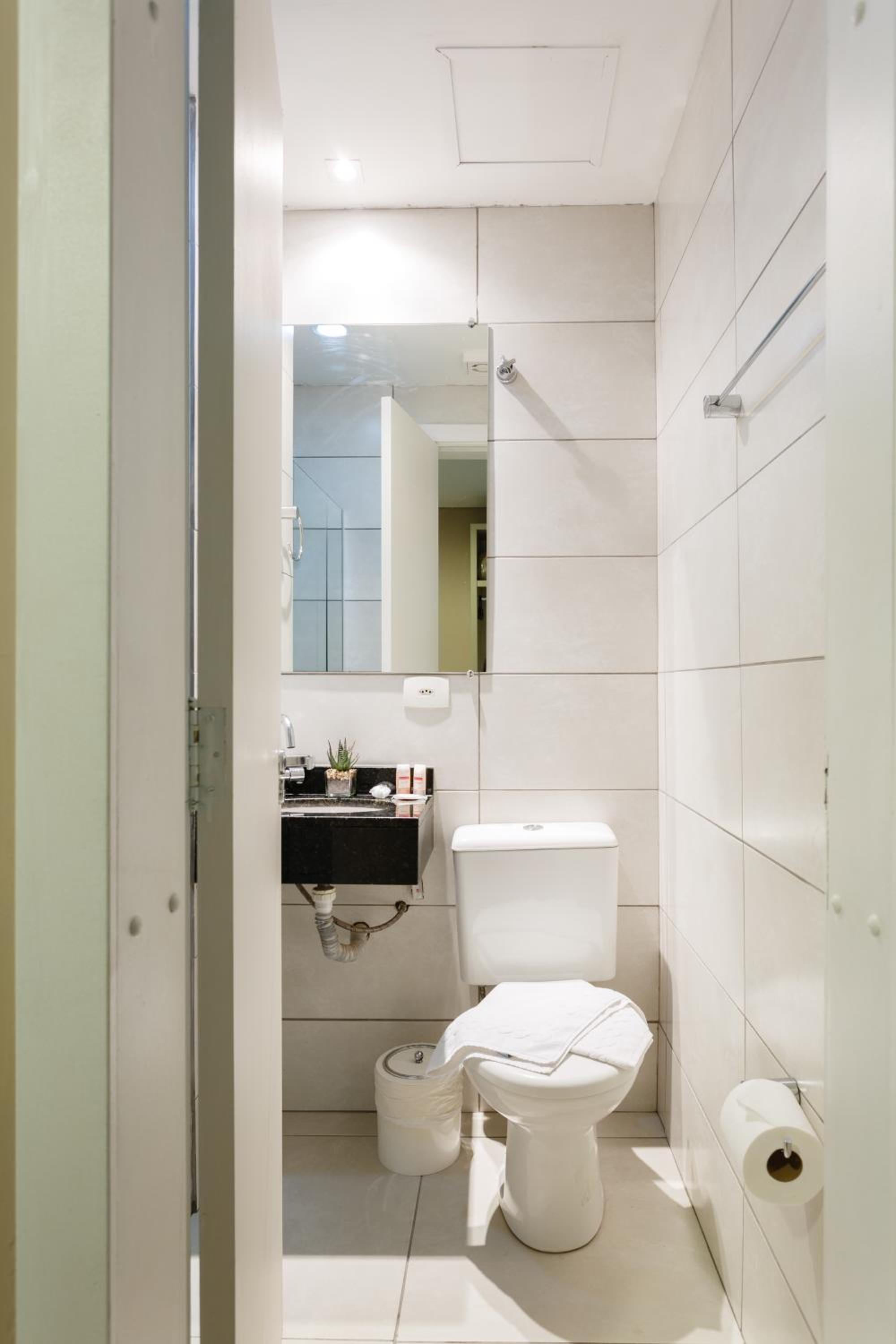 Senti falta de um isolamento acústico melhor e de uma duchinha higiênica. O chuveiro esquenta bem, mas no meu quarto a intensidade do fluxo variou um pouco ao longo do banho.