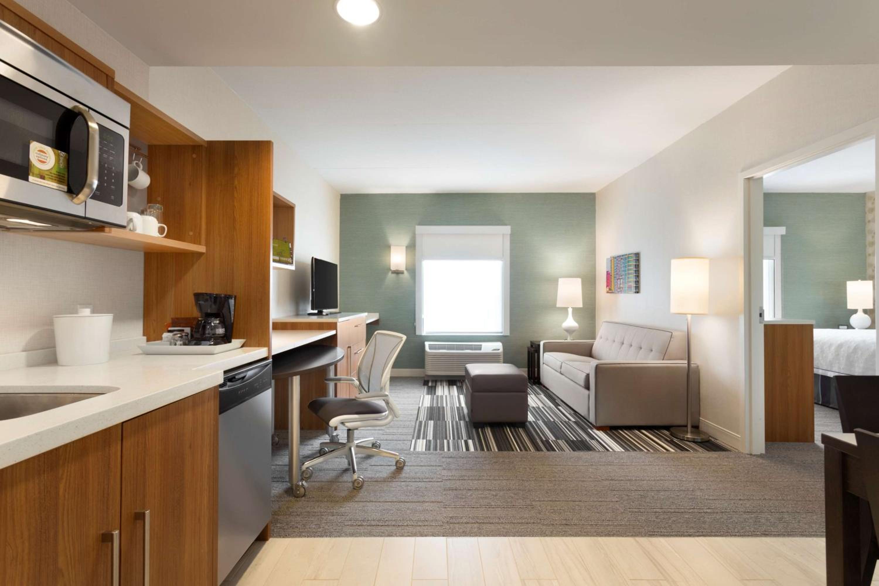 The Home2 Suites by Hilton Milton Ontario offers modern suites with full kitchens, equipped with all the amenities you need for a comfortable stay. From HDTVs to ergonomic chairs, the suites provide a cozy atmosphere for guests to relax and unwind.