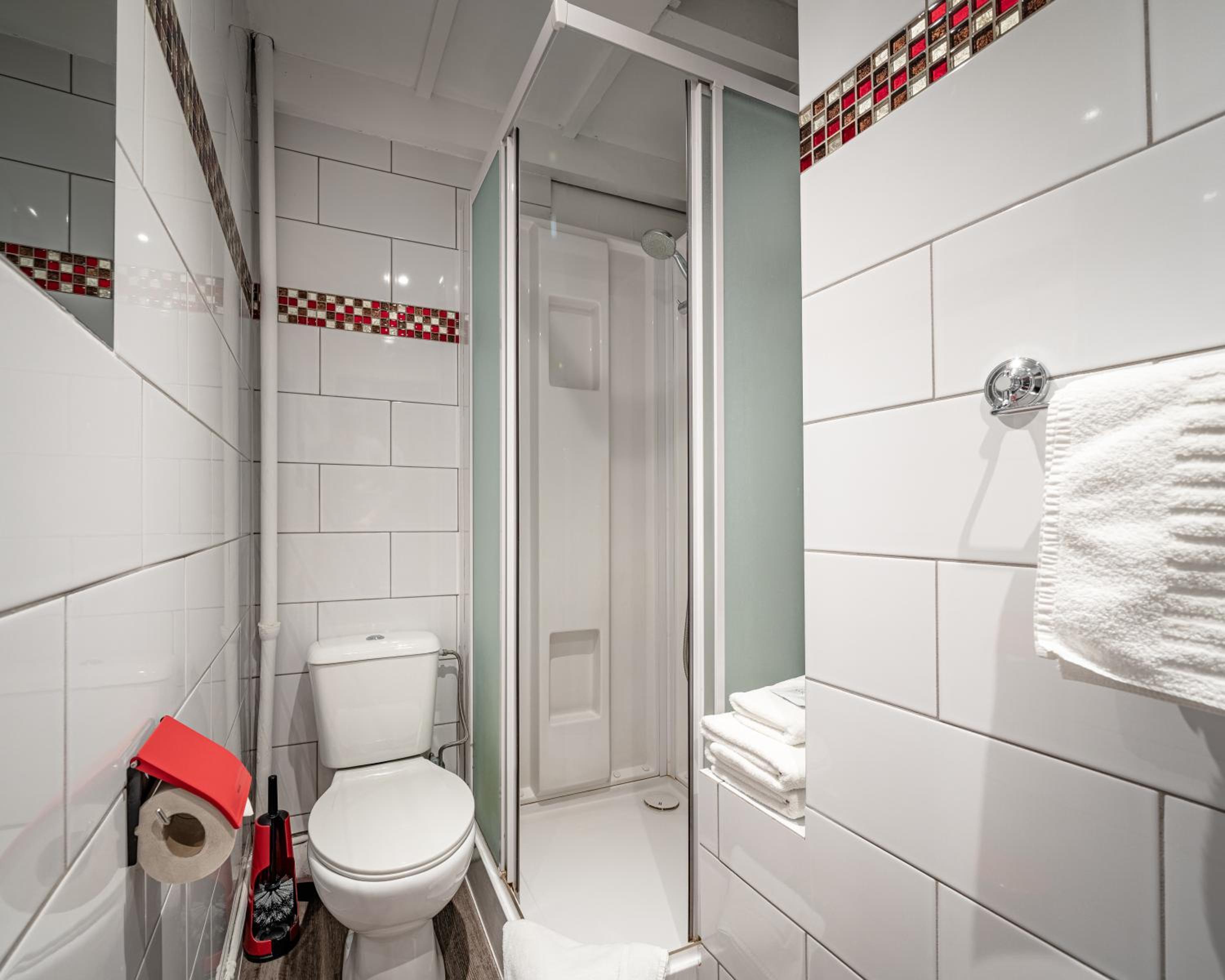 L'emplacement est vraiment bien. Une rue tranquille tout proche du beffroi. La chambre nous est apparue un peu petite par rapport aux précédentes que nous avons eu, mais tout à fait correcte.