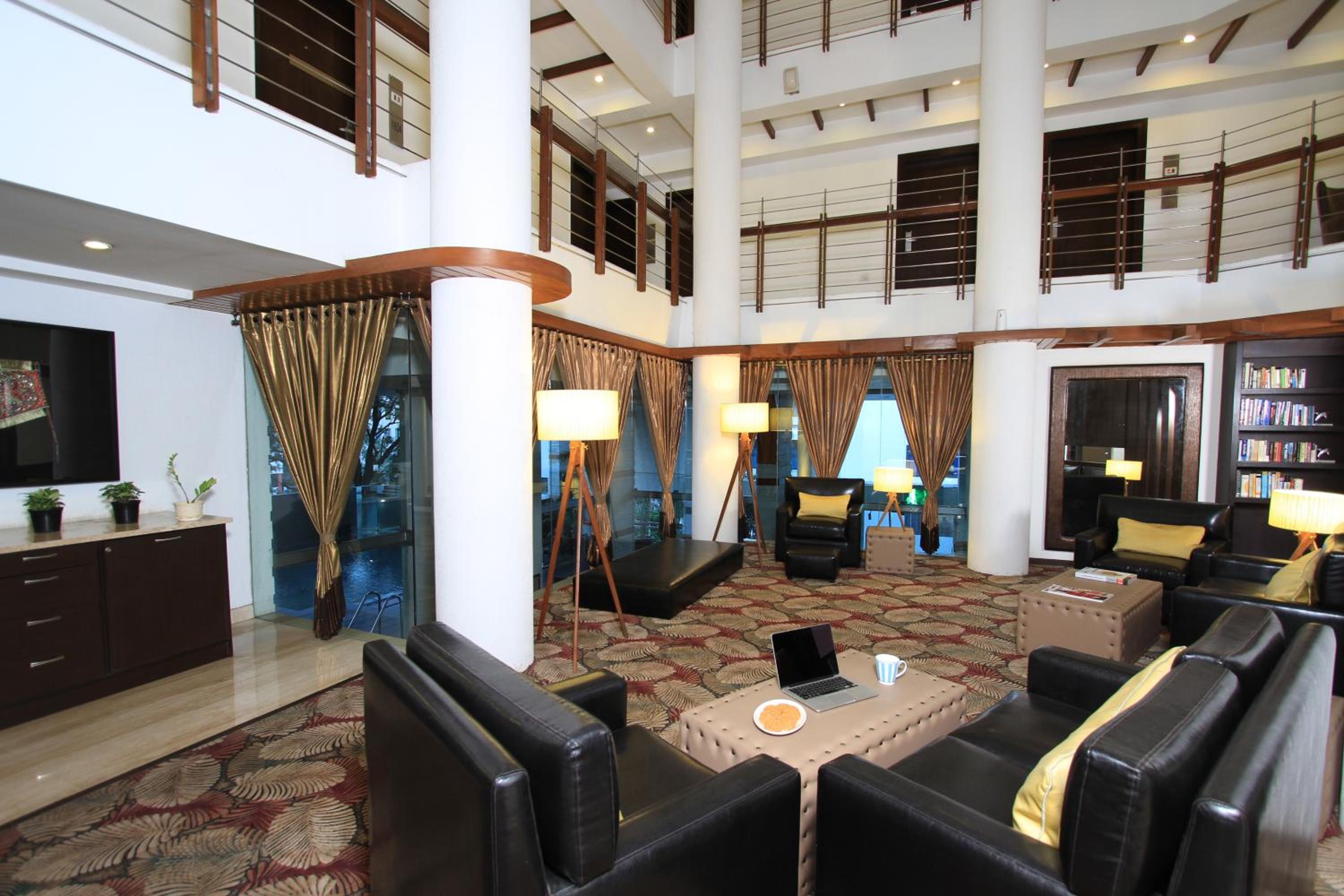 Older hotel with an old style arrangement of rooms around circular corridors with an open space in the middle. Easy to see ALL the guests on your floor. Obviously on the busiest road/flyover in Bangalore! Lot of road noise that starts early and ends late. Not a very easy entrance or exit (or pedestrian friendly). Mostly single business customers.