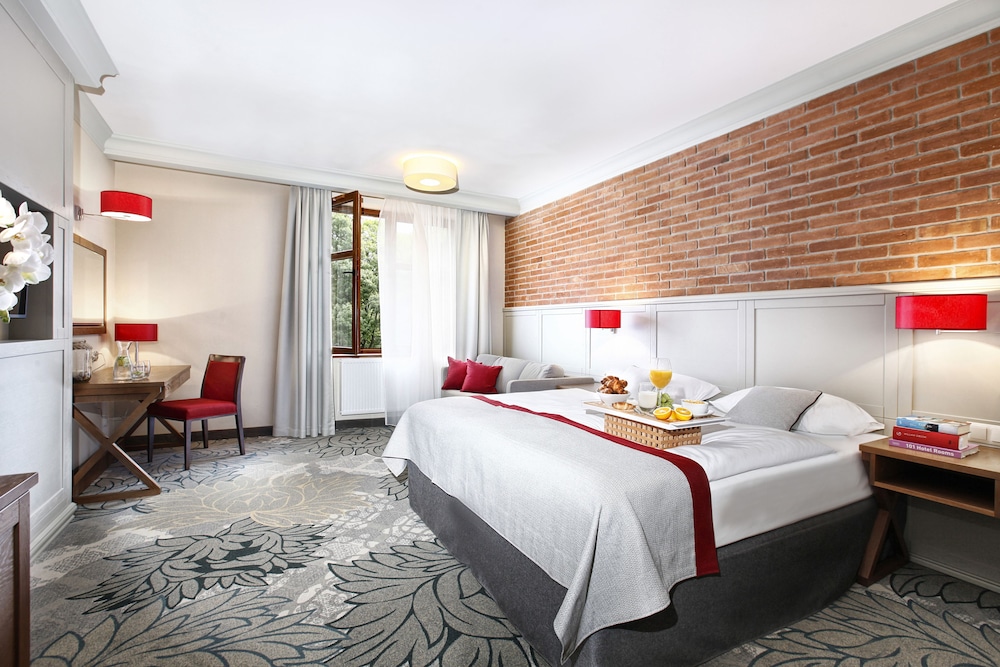 Hotel z zewnątrz ładny, wystrój ładny. Pokój dostaliśmy ciemny jak w piwnicy i pierwsze wrażenie prysło. Woda pod prysznicem śmierdzi szambem, niby takie ujęcie i dokumenty mają. Dostaliśmy dodatkowe butelki z woda do płukankę zębów..Jednak w hotelu z 4 gwizdkami takie rzeczy nie powinny mieć miejsca. Basen mały jak dla ilości gości, prawie cały czas był pełny. Woda w basenie miała tak dużo chloru, ze po wyjściu skóra była nim oblepiona. W spa wyłączają światło o 21 nie uprzedzając gości, nikt na saunę nie chodzi z zegarkiem. Trochę to nieuprzejme. Pokój ogólnie był czysty ale w jadalni leżały martwe owady na parapetach a parasole przed restauracja były aż zielone. Widać, że hotel zaczyna być zużyty, szkoda że nie dbają o takie szczegóły. Jedzie dostępne dla wszystkich takie sobie, niby duży wybór ale słabej jakości jak jajecznica, która pływała w wodzie. Za to dania z karty w restauracji bardzo dobre. Jezioro dość brudne nikt się nie kąpał. Praktycznie za wszystkie atrakcje pobierana opłata, rowerek wodny 30zl/h, bilard 20zl/h, kręgle 50zl/h, duża woda 16zl niby nie dużo ale za wszystko trzeba dodatkowo płacić. Chyba lepsze wrażenie sprawiła by wyższa cena i w niej wliczone jakieś atrakcje. Ogólnie już tam nie wrócimy ani też nikomu nie polecimy. Szkoda, że hotel na tej stronie jest tak wysoko oceniony bo komentarze, ogólnie dostępne są różne. My kierowaliśmy się tylko tymi z hotels.com i się rozczarowaliśmy. W recepcji słyszeliśmy innych gości, ktorzy nie byli zadowoleni.