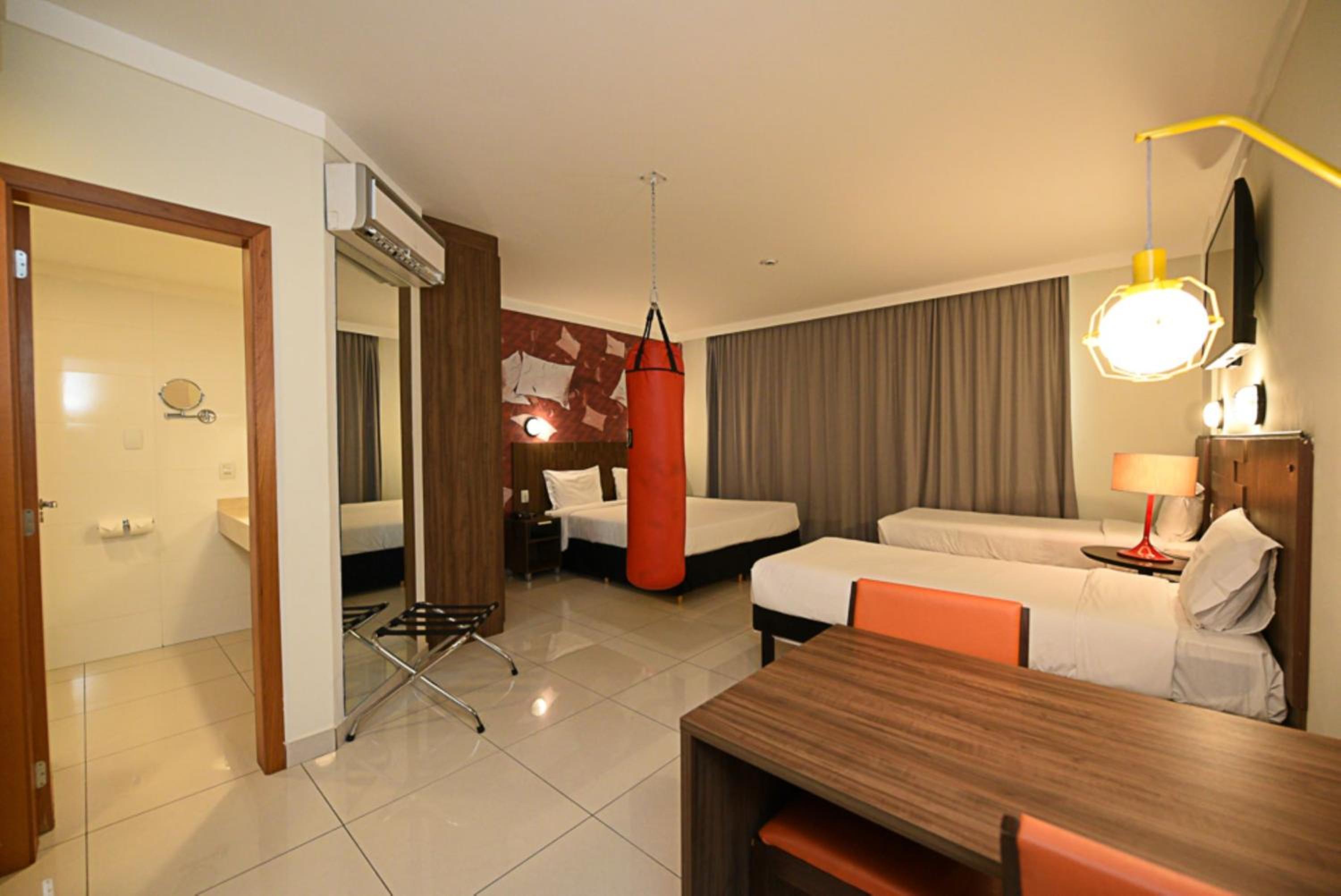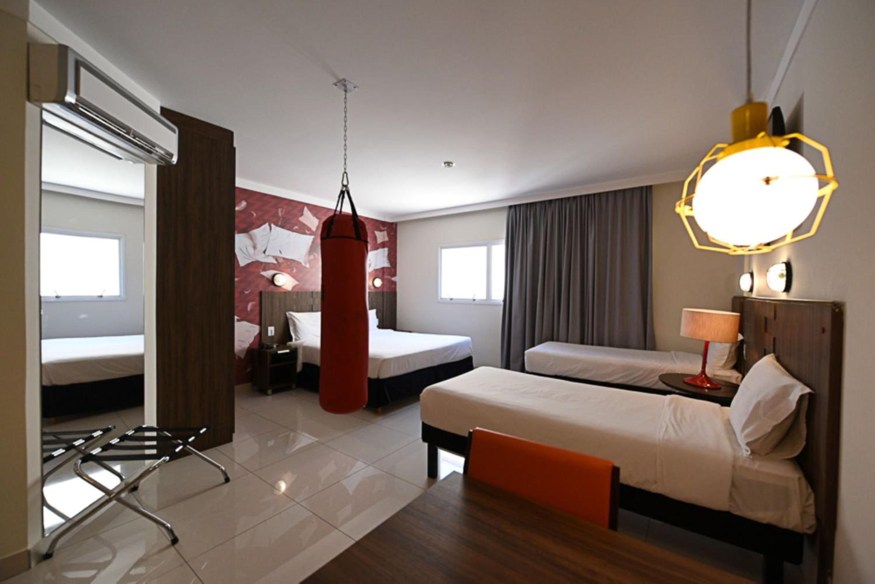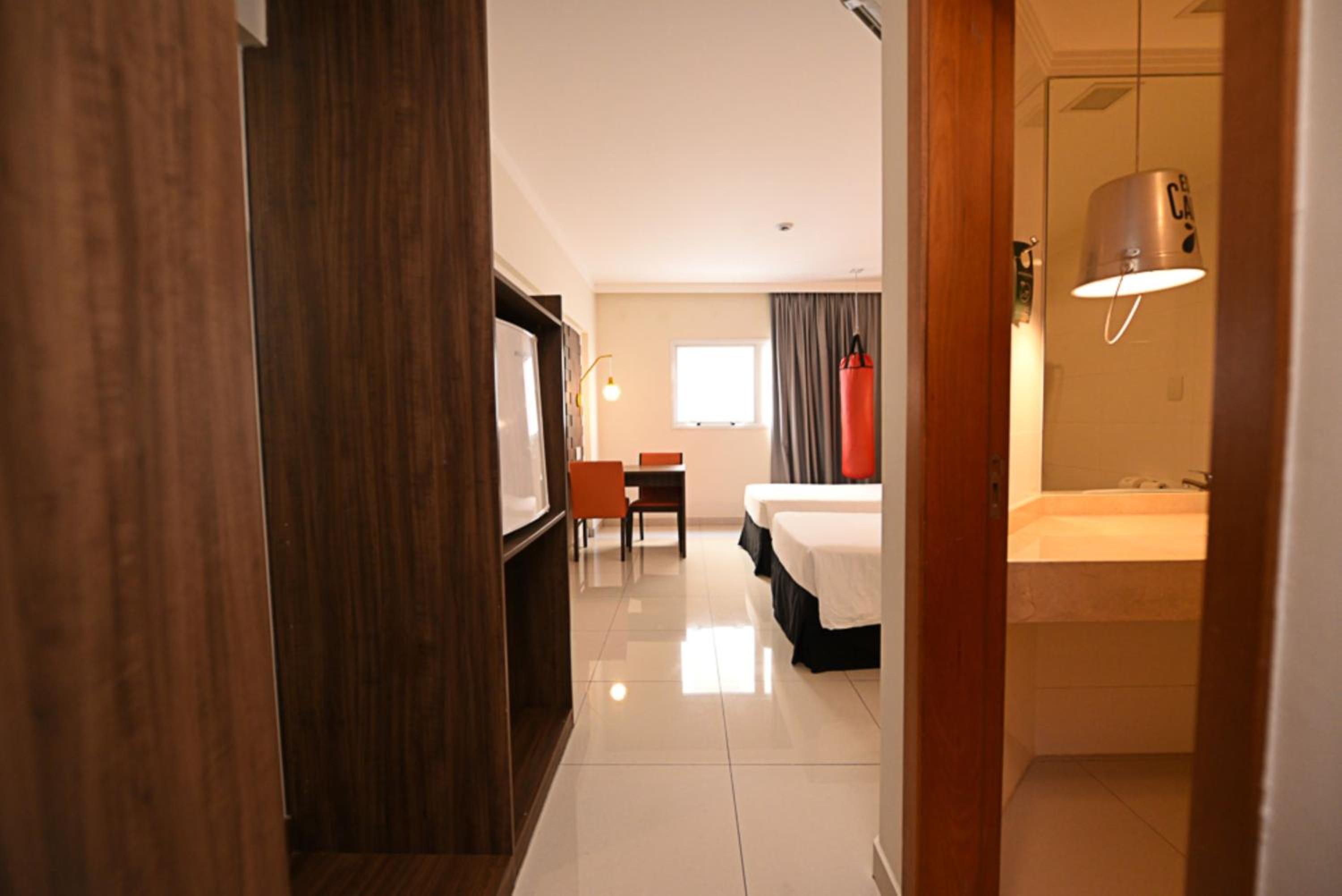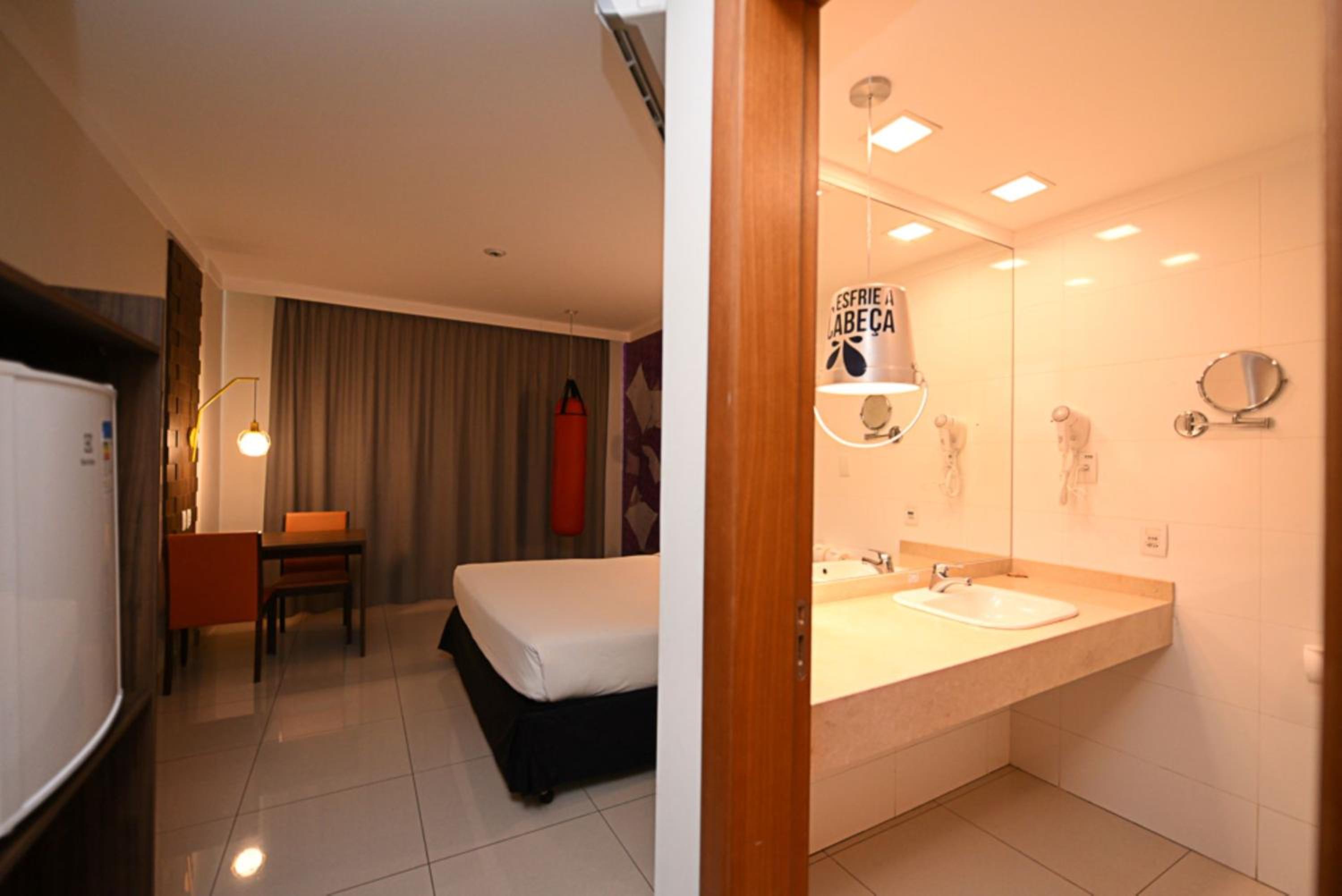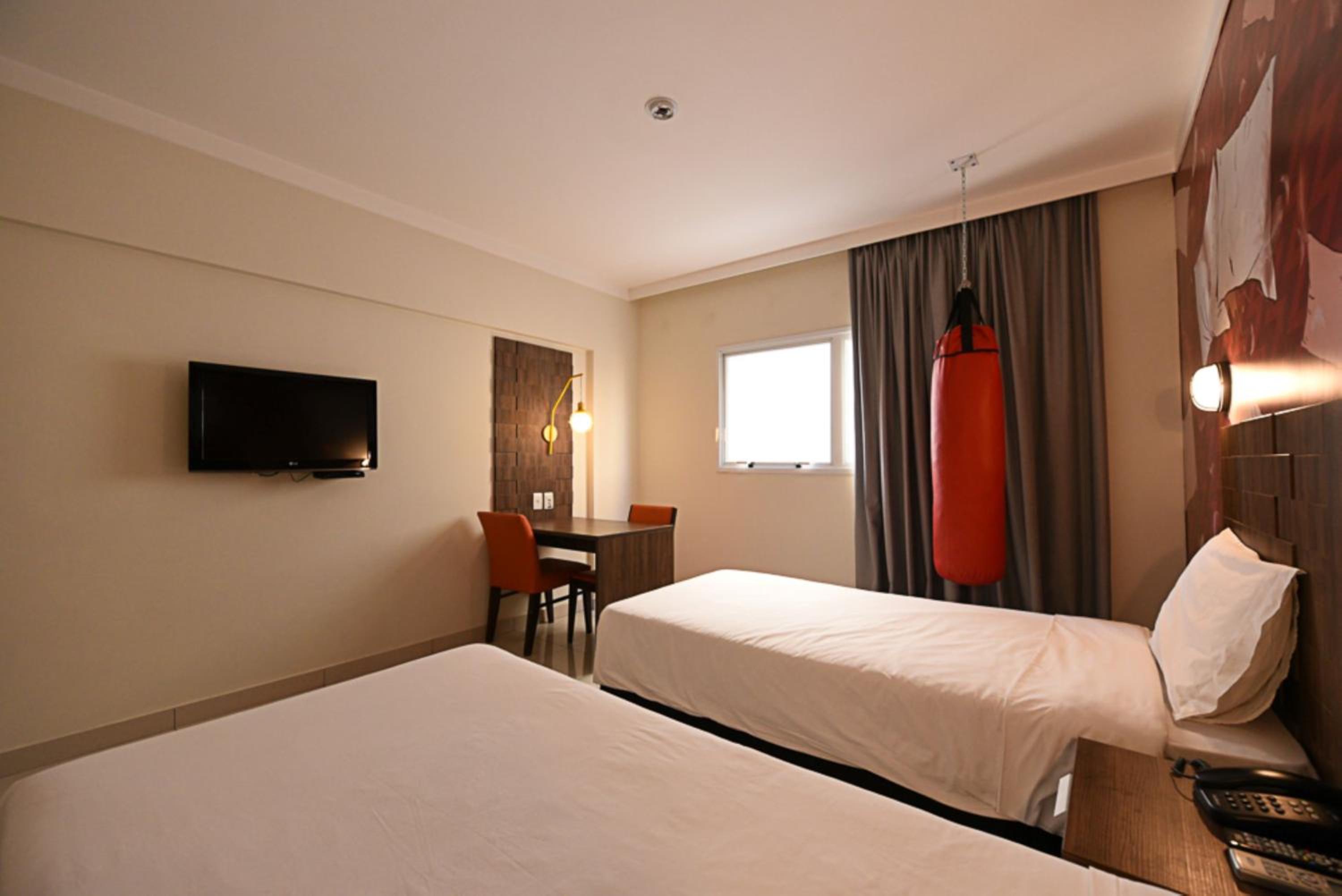 All rooms at Ibis Styles Piracicaba are modern, air-conditioned, and equipped with flat-screen TVs, minibars, and private bathrooms with hot showers. The warm lighting creates a cozy ambiance for guests to relax in.
