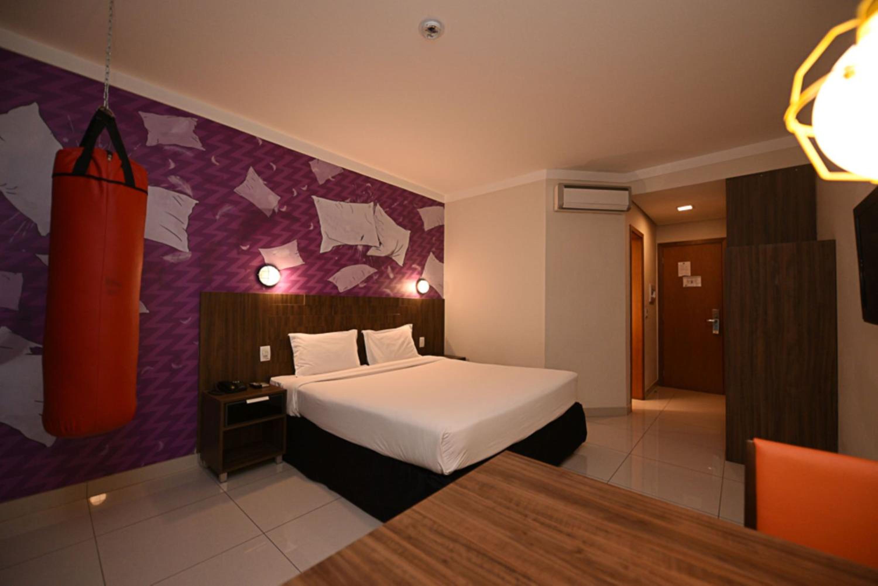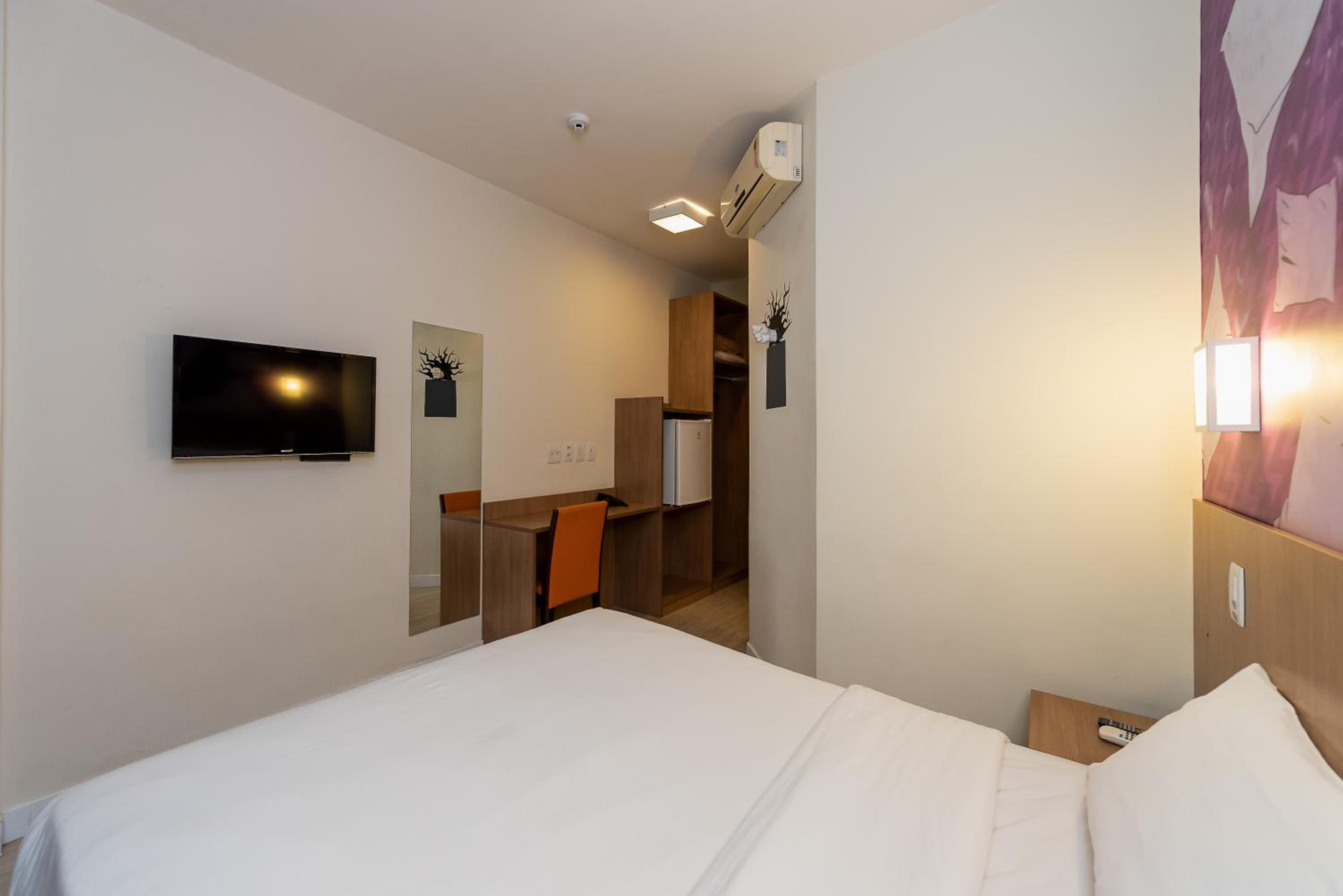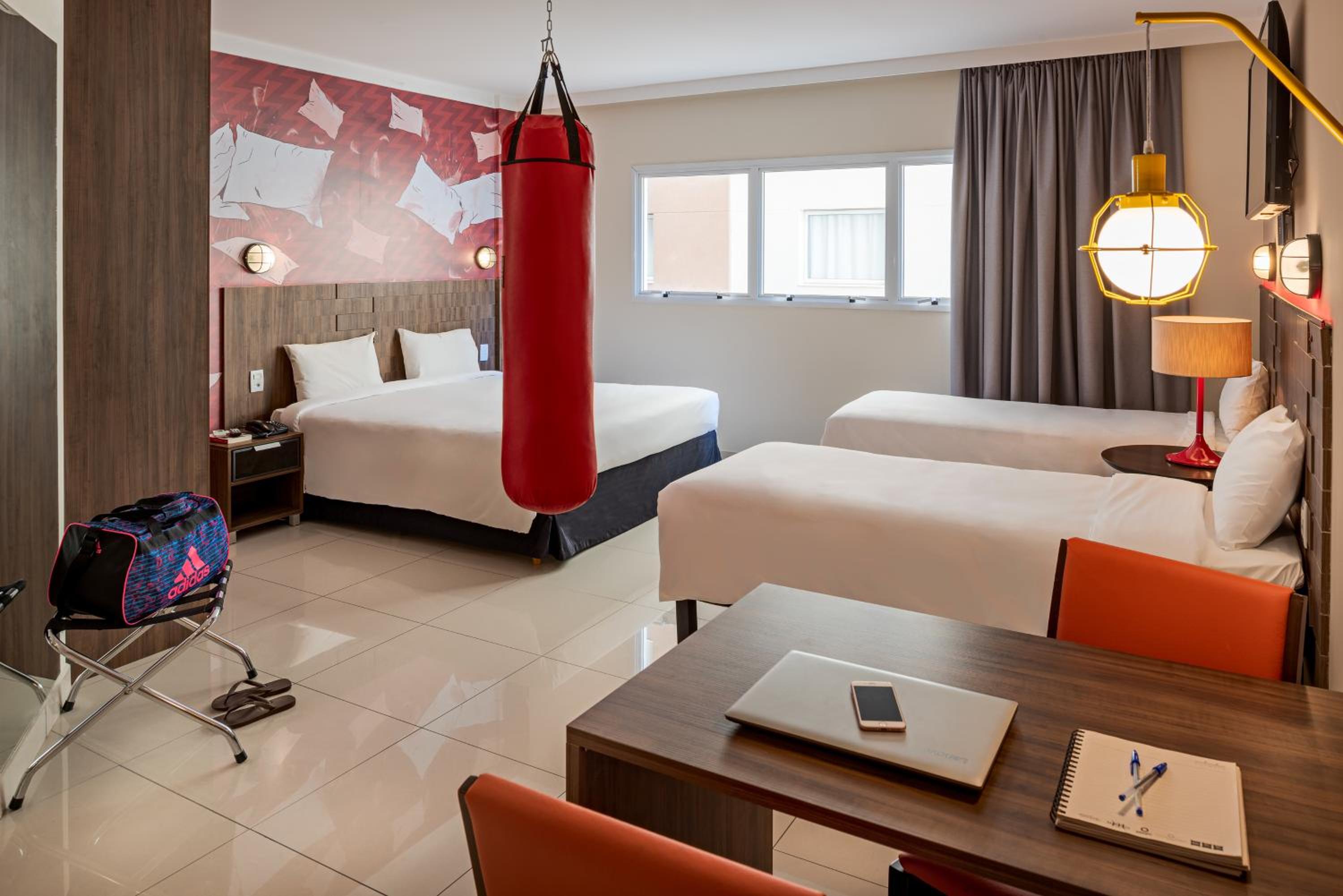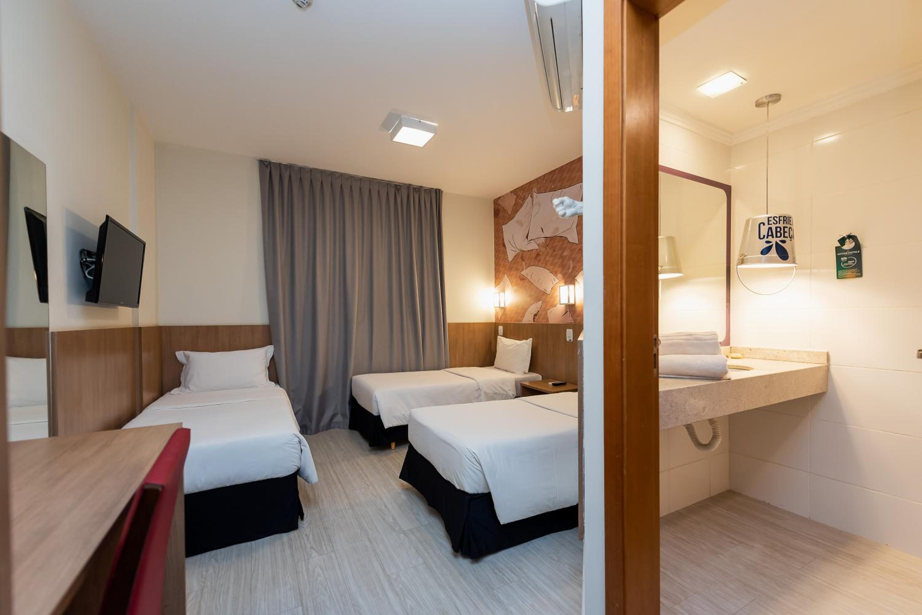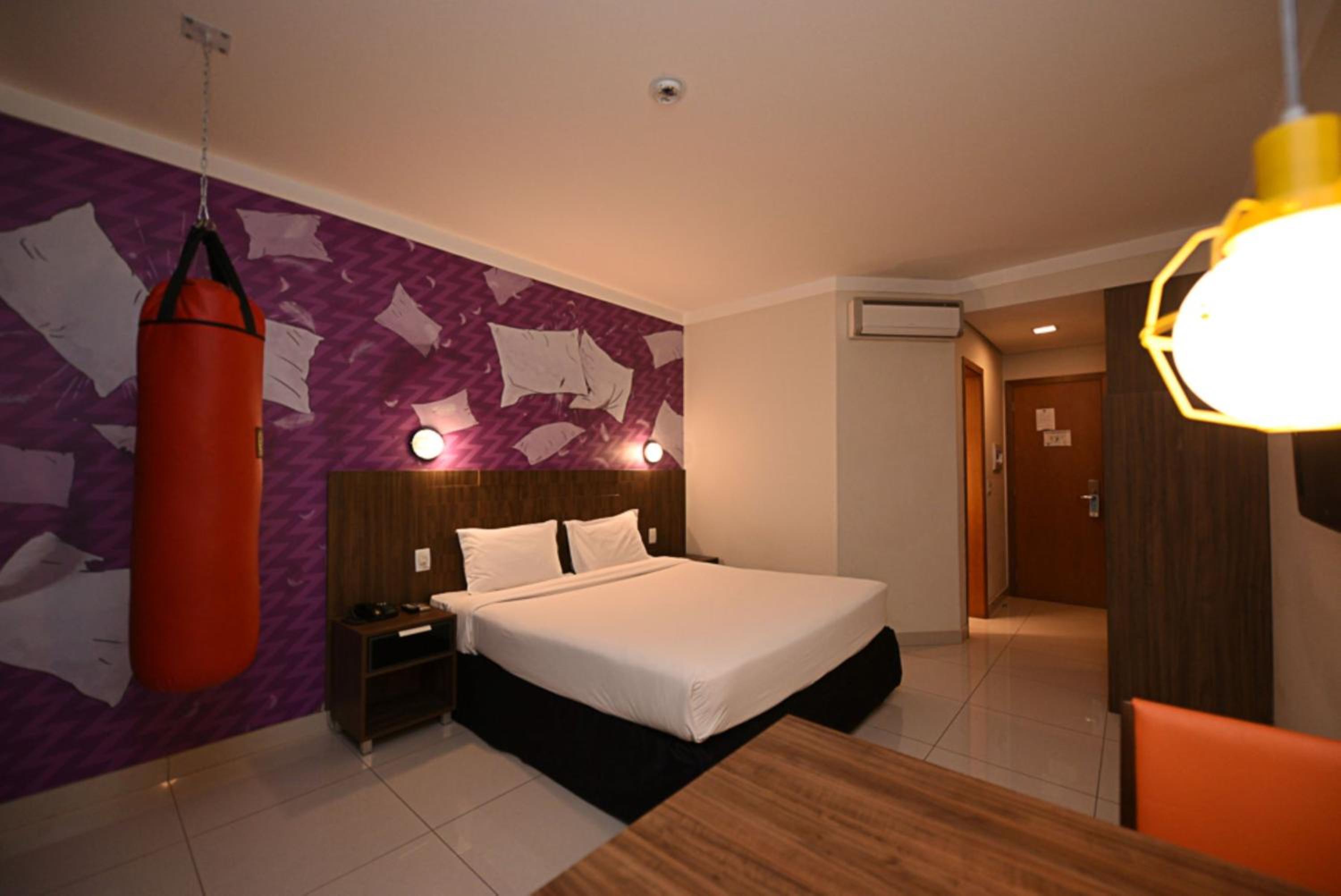 All rooms at Ibis Styles Piracicaba are modern, air-conditioned, and equipped with flat-screen TVs, minibars, and private bathrooms with hot showers. The warm lighting creates a cozy ambiance for guests to relax in.