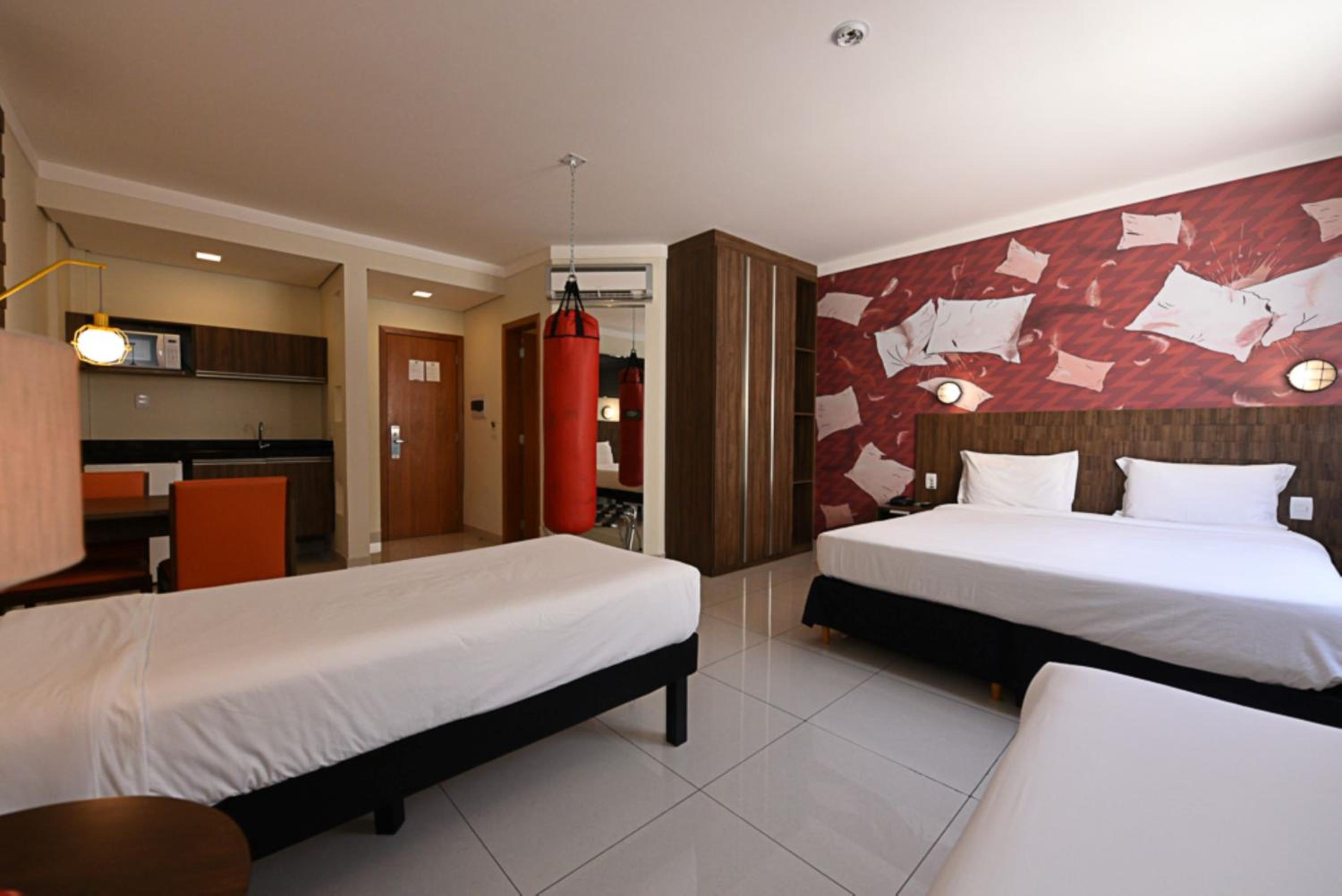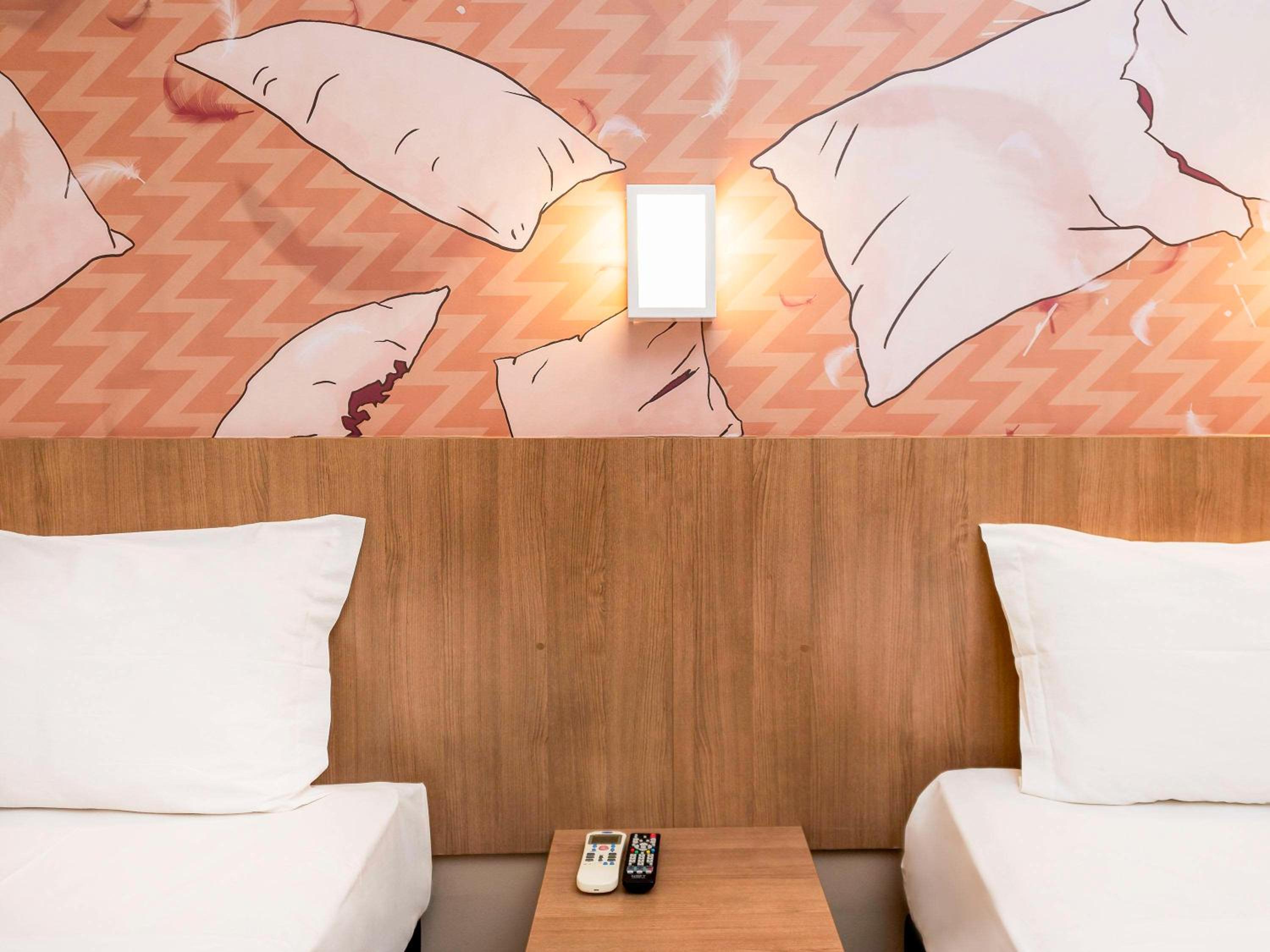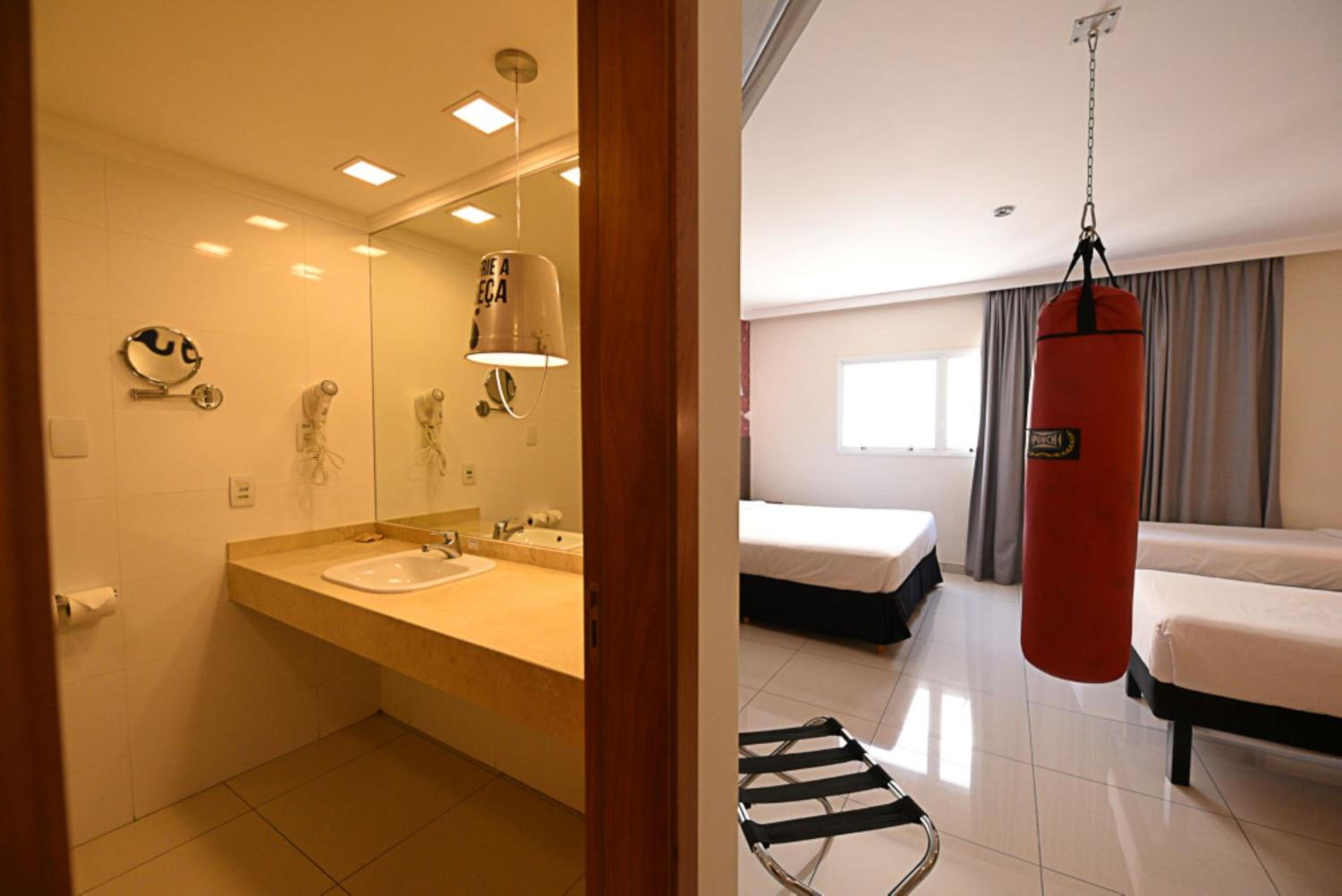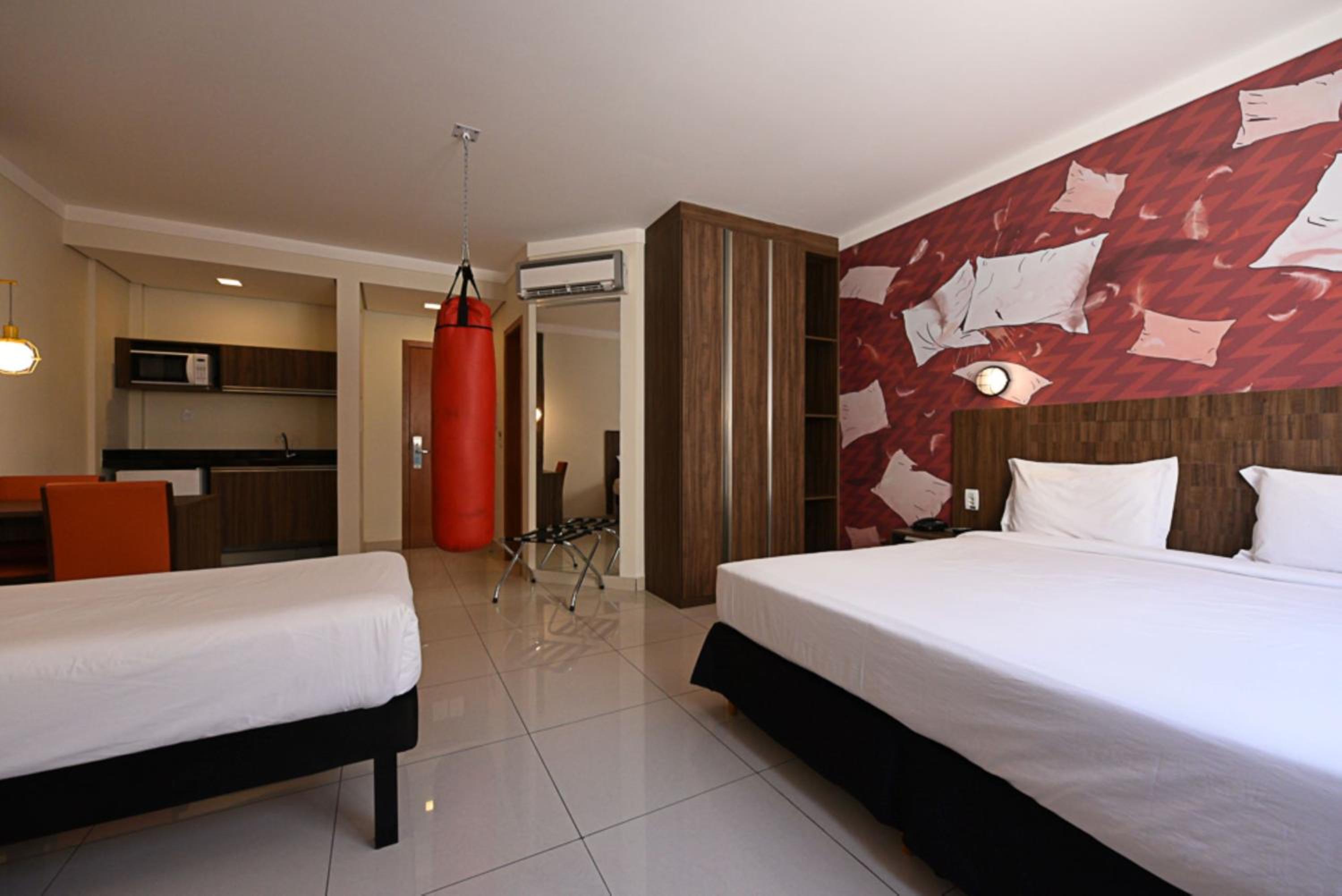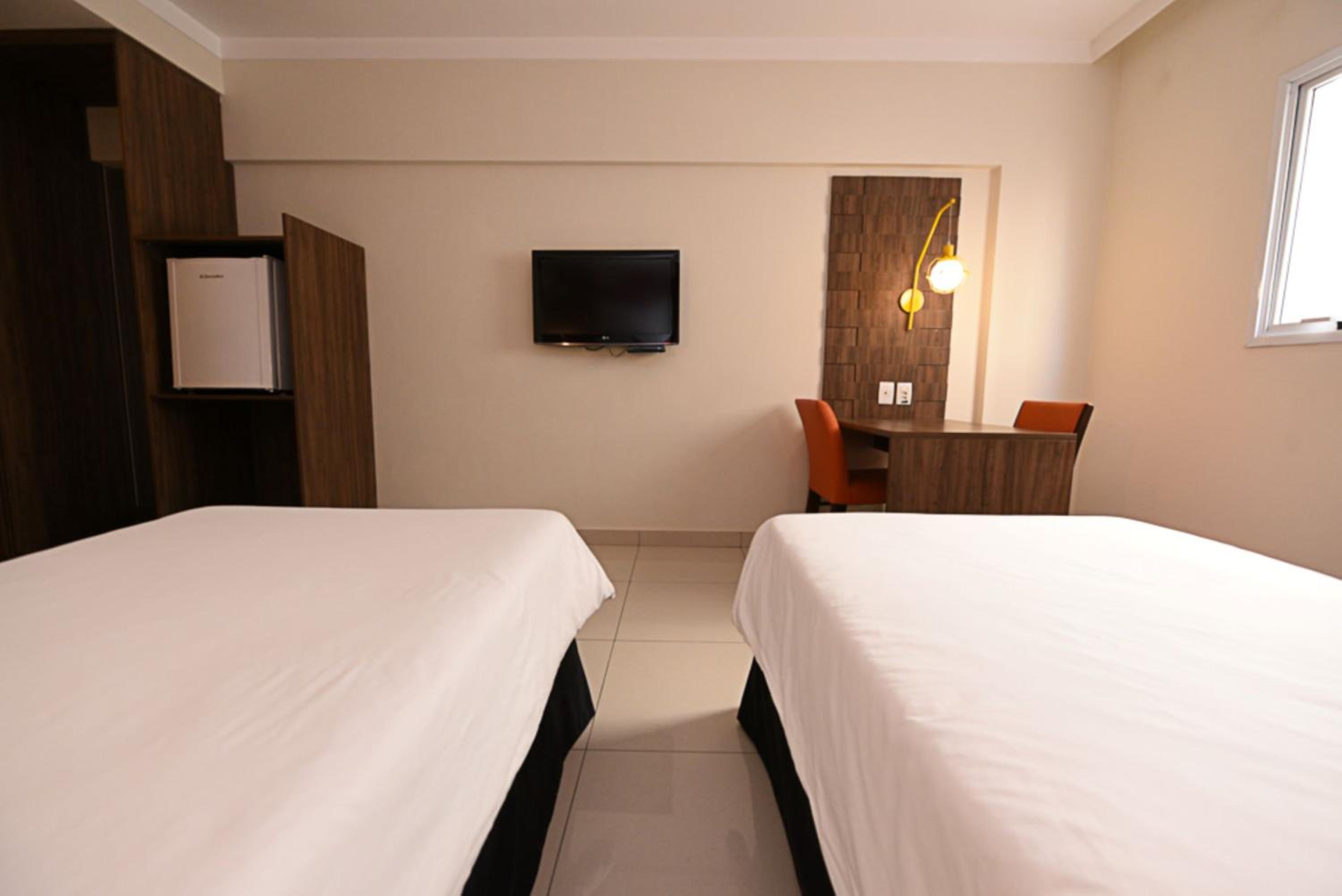 All rooms at Ibis Styles Piracicaba are modern, air-conditioned, and equipped with flat-screen TVs, minibars, and private bathrooms with hot showers. The warm lighting creates a cozy ambiance for guests to relax in.