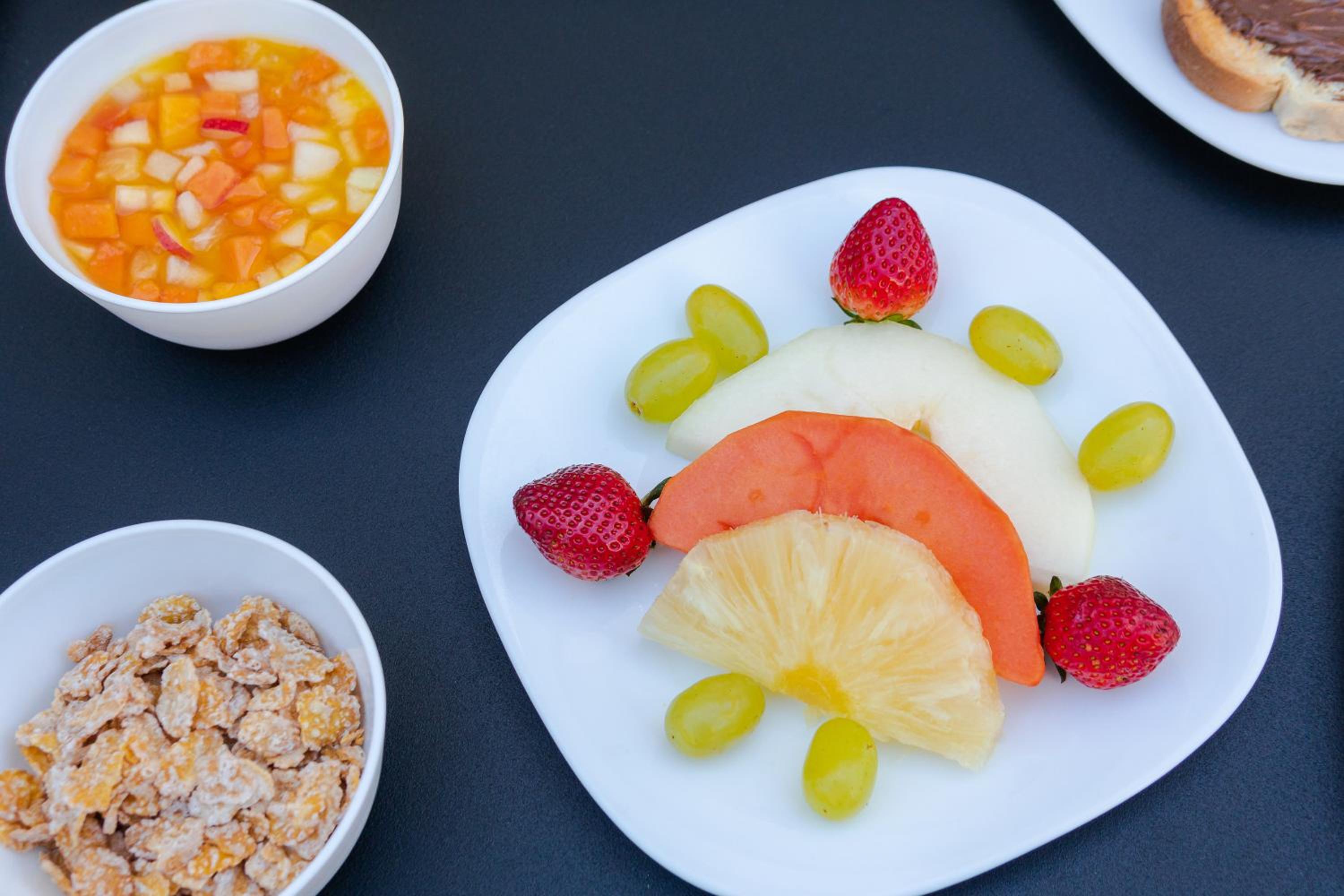 Guests can start their day with a hearty breakfast buffet featuring fresh fruits, breads, and cold meats. The hotel also offers regional and international specialties for lunch and dinner, along with a variety of drinks available through room service.