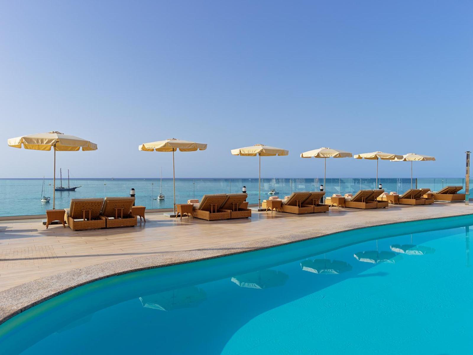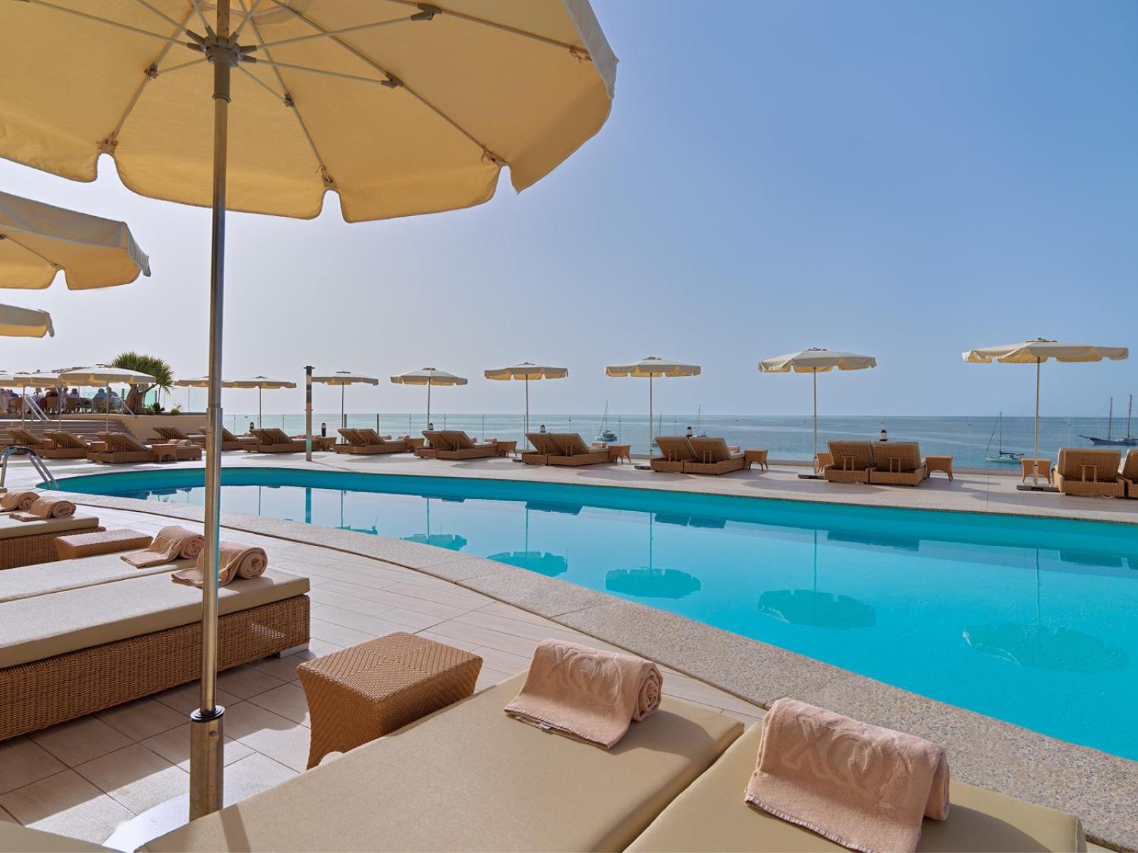Die Lage direkt am Meer und an der Promenade ist einfach fantastisch und man hat einen atemberaubenden Blick vom Balkon, von der Bar-/Frühstücksterrasse und von den Liegen aus. Die Liegen sind mega bequem und der Pool angenehm warm. Das Frühstück war total lecker und abwechslungsreich, der frisch gepresste O-Saft war ein Traum und das Abendessen ausgezeichnet.