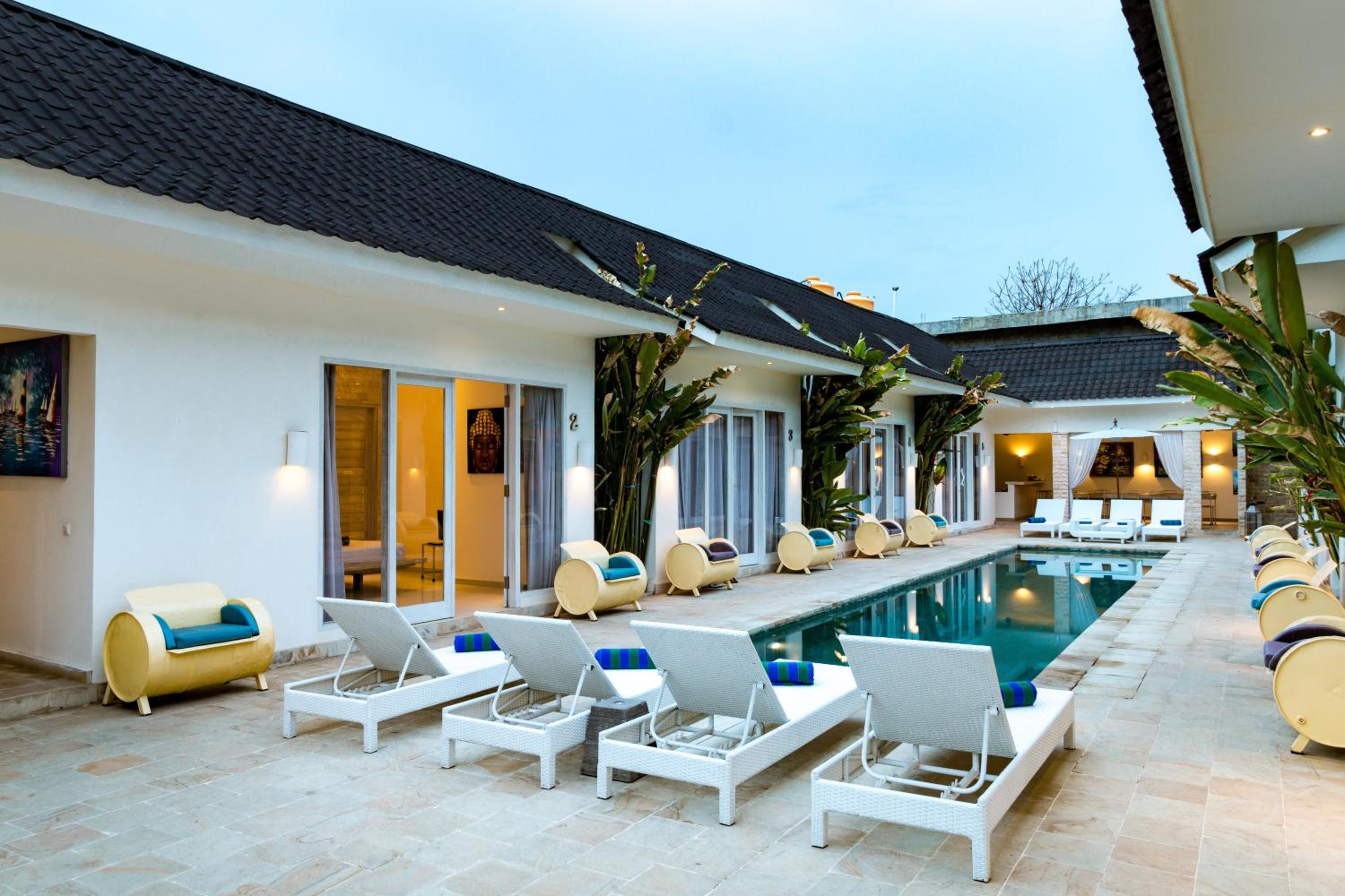 Tamoa Boutique Hotel in Gili Trawangan offers a unique blend of modern tropical architecture and a refreshing outdoor pool, creating a tranquil oasis for guests to unwind.