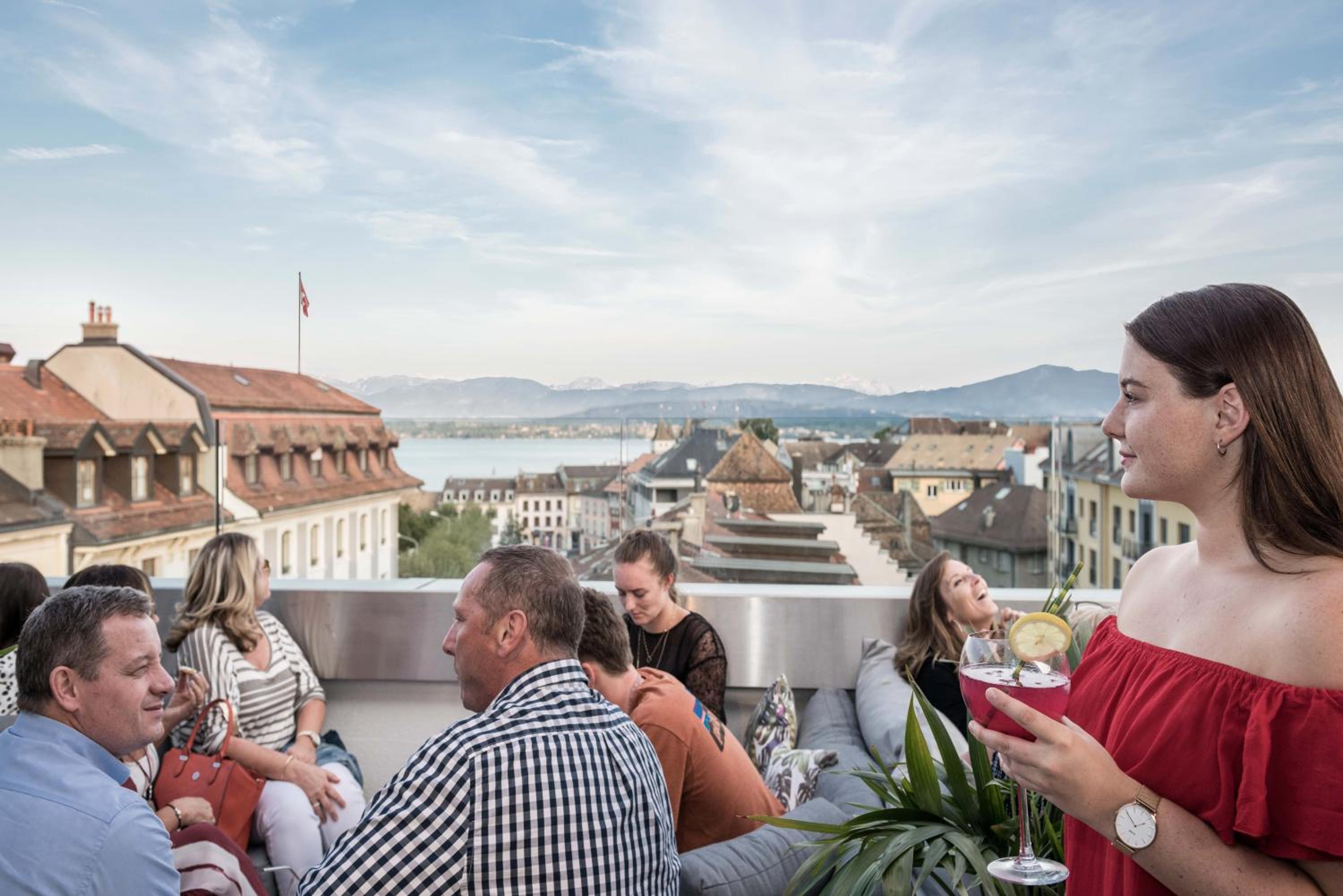 Indulge in stunning views of Lake Geneva and the French Alps from the Base Balcony & Bar. Start your day right with a breakfast bag filled with fresh pastries, organic juices, coffee, and tea.