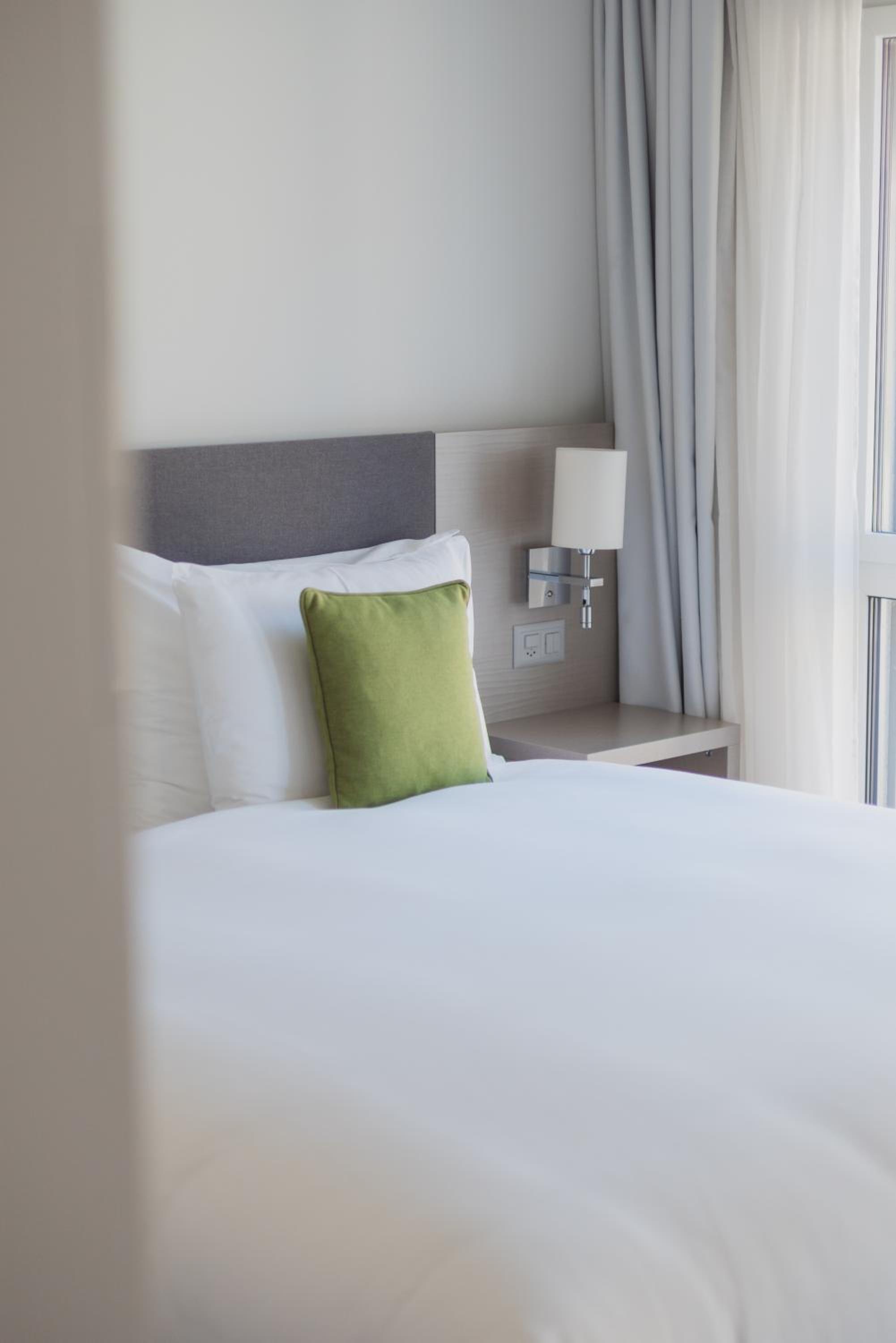 Experience the convenience of a fully equipped kitchen, Nespresso coffee machine, and free WiFi in each apartment. Relax in a king-sized bed, enjoy the 40” HDTV, rain shower, and organic beauty products in the bathroom. Stay fit at the on-site fitness center and dine at the hotel restaurant.