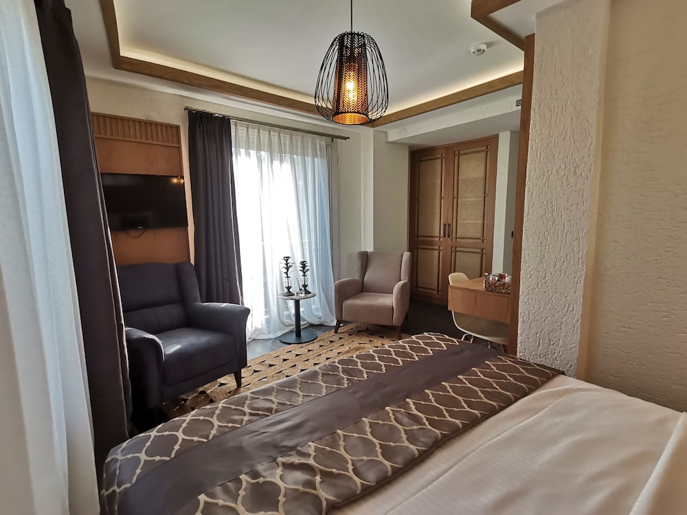 Konumu, arac park sansi, sakinligi, ama aynı zamanda 2dk yuruyusle diger kapısından hacimemise ulasabiliyor olmak, otelin mimari dekorasyonunun da şıklıgıyla birlesince cok iyi bir tercih yaptigimizi görduk. Ki yılbası aksamı olmasina ve yaz sezonu olmamasına ragmen harika gecti.