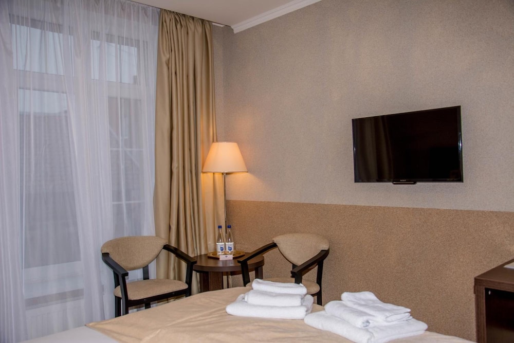 Общее впечатление от отеля хорошее. Останавливалась на одну ночь, переночевать. Номер брала самый бюджетный. 1400 рублей ночь. Номер на последнем этаже с мансардными окнами. Номер чистый. Полотенца, халаты, тапочки все чистое. Девушка на ресепшен очень радушная. Разрешила оставить на ночь мой автомобиль на территории отеля, хотя парковка для гостей не предусмотрена и это указано в описании отеля. Завтраки хорошие и сытные. Соотношение цена и качества превосходное. Расположение очень удачно. Минусов больших нет. Единственное, что может смутить путешественников, при выборе номера для людей с ограниченными возможностями, раковина очень маленькая и вынесена в комнату. Девушка на ресепшен меня сразу предупредила об этой особенности.