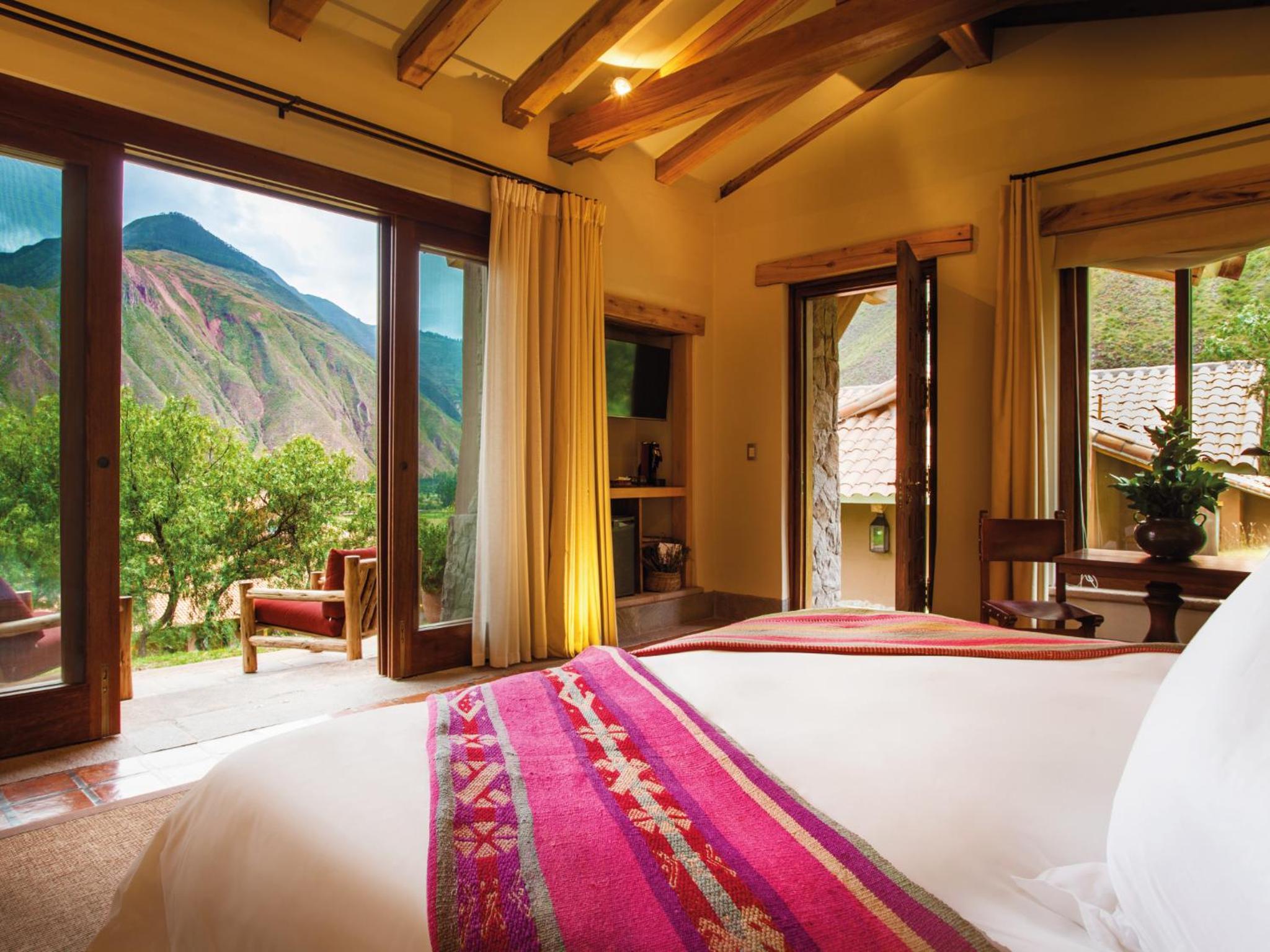 Indulge in comfort at Inkaterra Hacienda Urubamba with rooms featuring flat-screen TVs, iPod docking stations, and modern amenities like free toiletries and hair dryers.