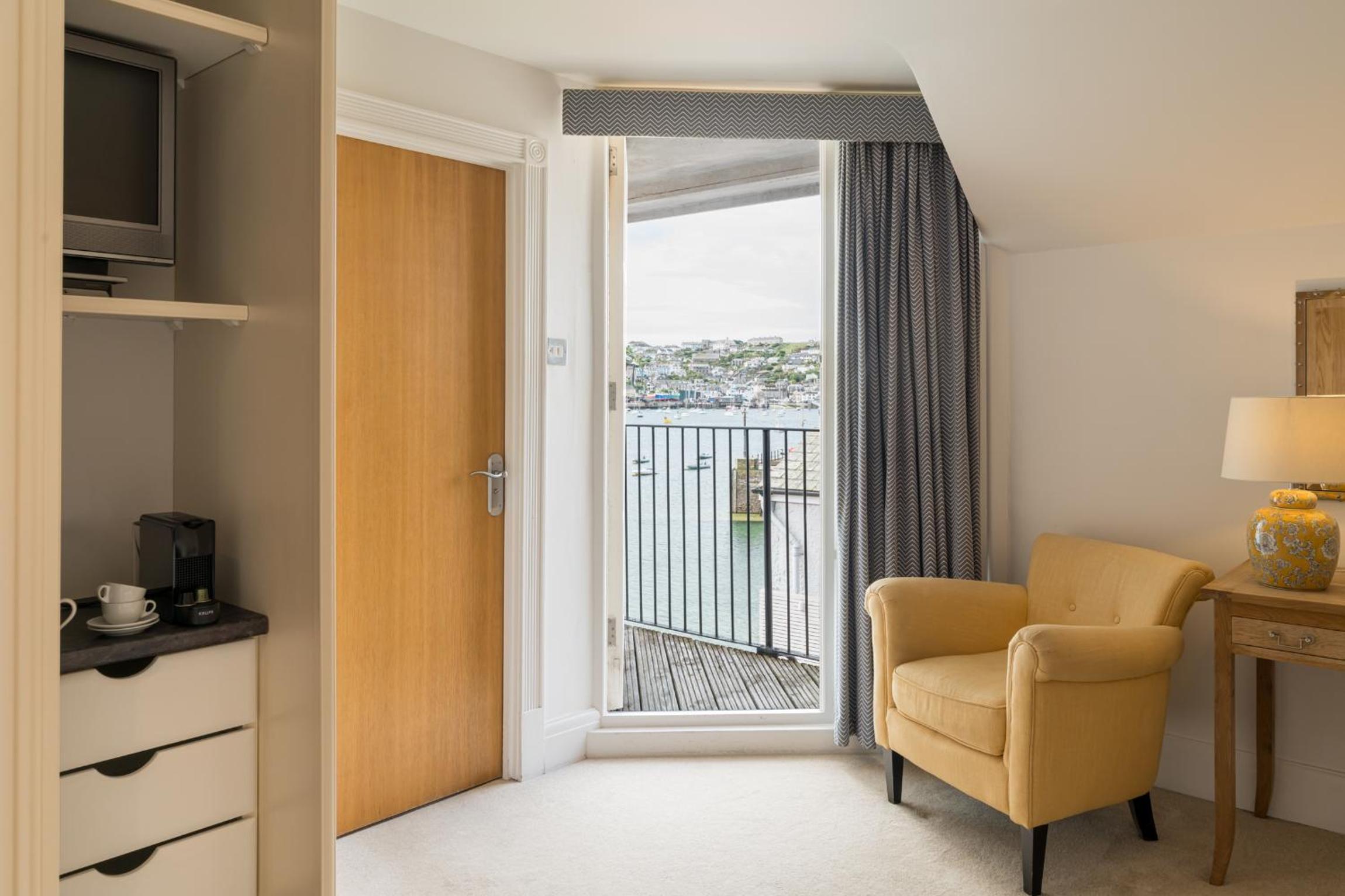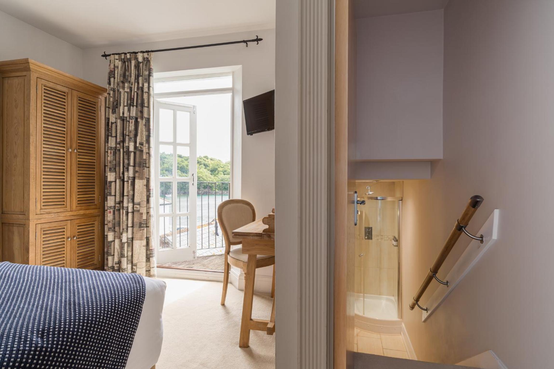 Lovely boutique hotel In centre of Fowey on mainstreet and river ar rear. Very welcoming manager. Ground floor mainly comprises recently renovated bar , restaurant and outside terrace overlooking river. Our bedroom on 1st floor was very pleasant and well appointed with tea/ coffee making facilities. The en-suite was equipped with high quality toiletries and dressing gowns.The restaurant was closed in the evening ( it was. Monday off season) but the breakfast was delicious with a wide range of options using excellent local products. Would definitely use again .