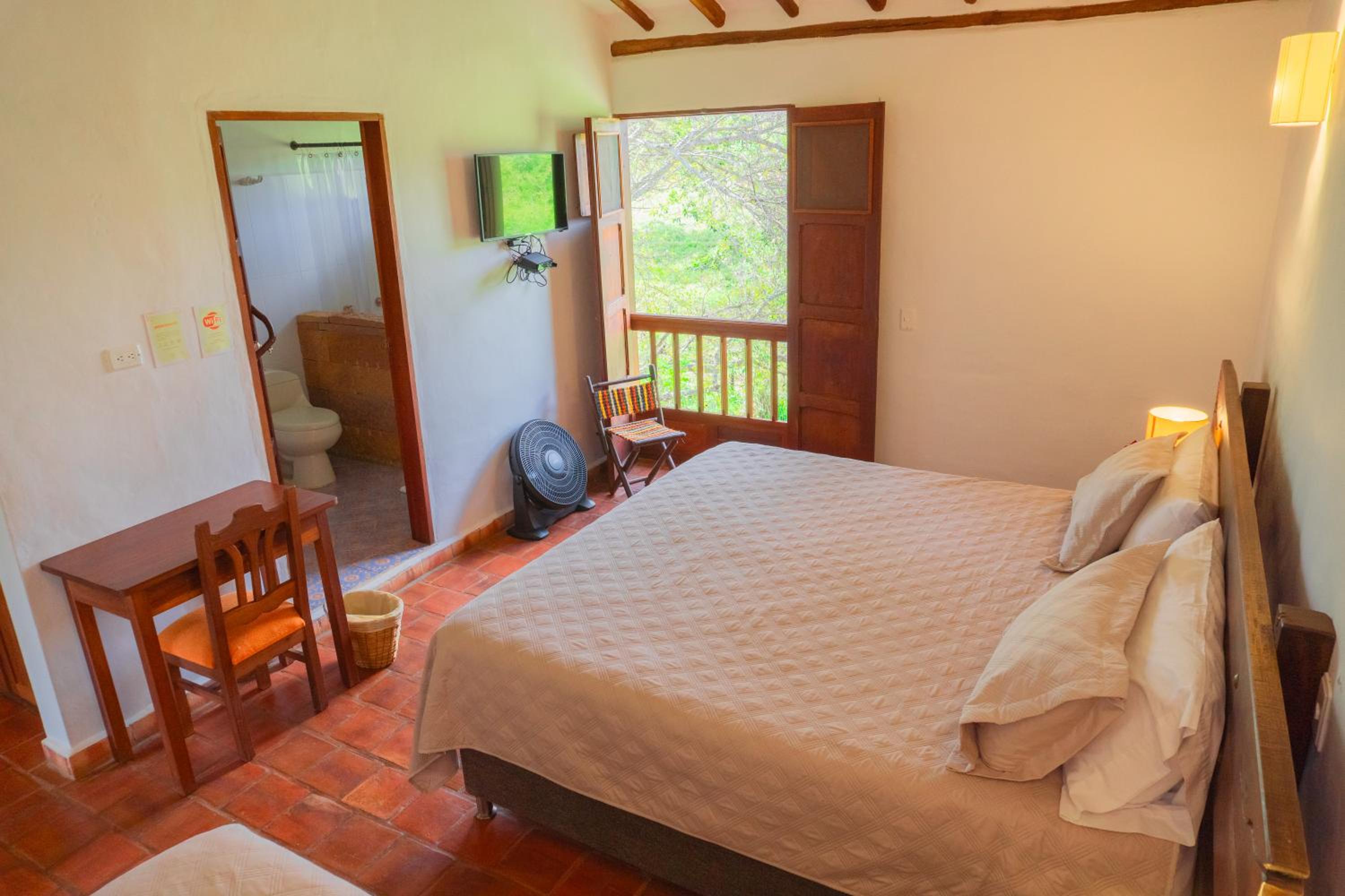 So peaceful and spacious, lovely waking up to the sounds of birds and chickens in the morning. The semi-outdoor showers are such a nice touch. Breakfast was delicious - have the caldo de huevo. Everything was so clean. Staff very helpful. It's about 3km from Barichara - a short (10 minute) and cheap tuk tuk ride. More peaceful and relaxing than staying in town