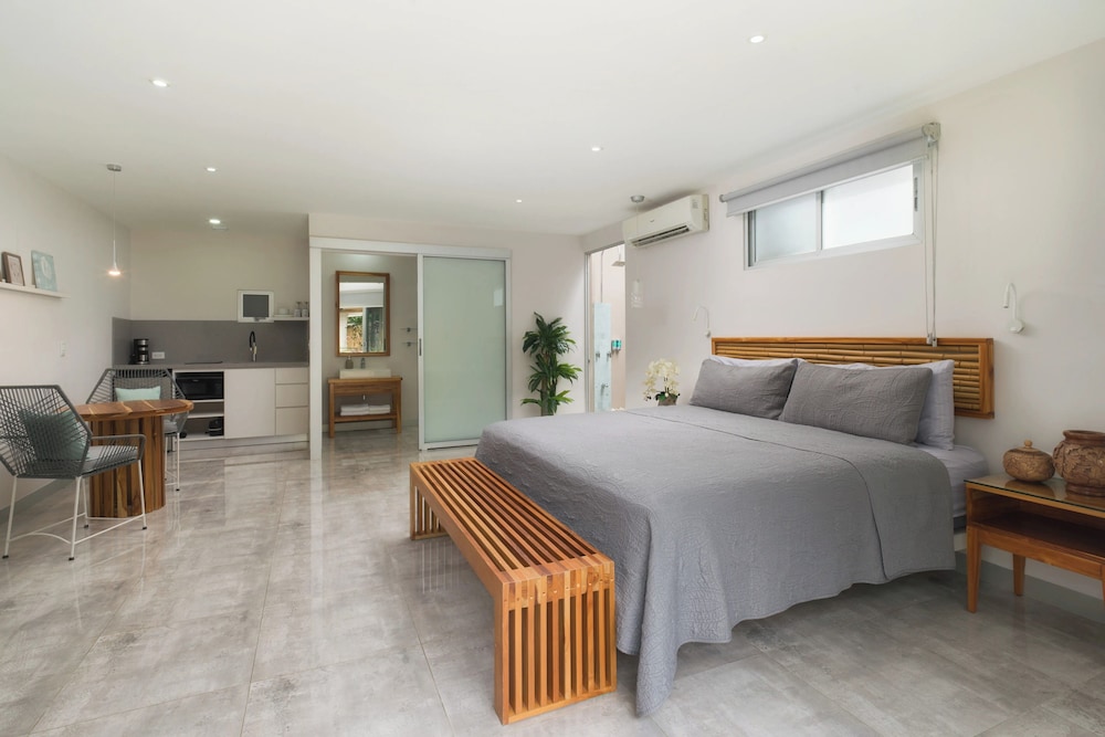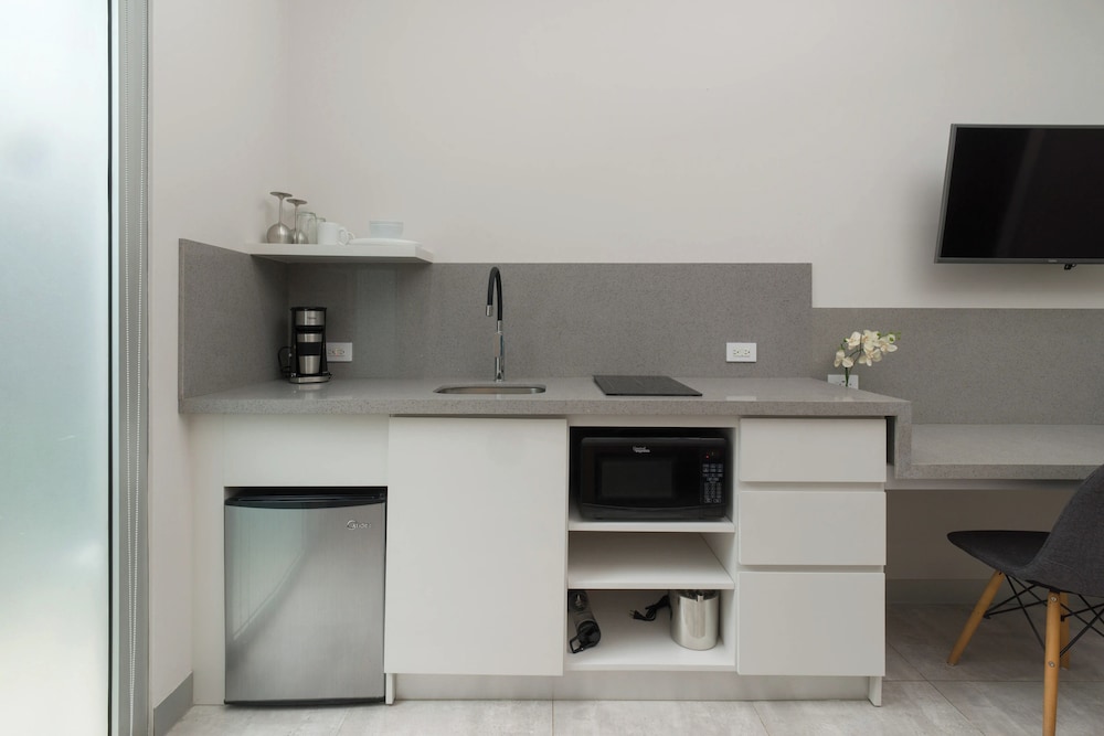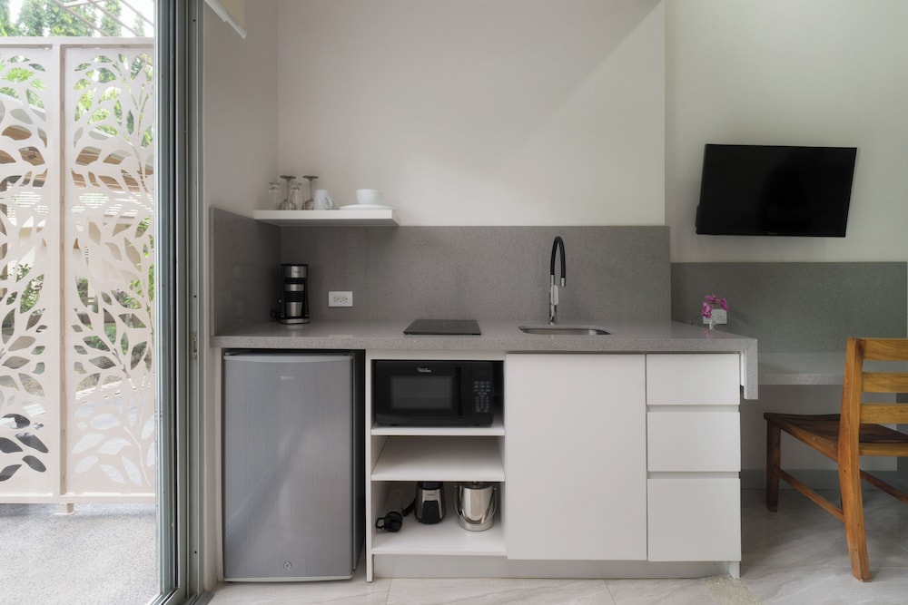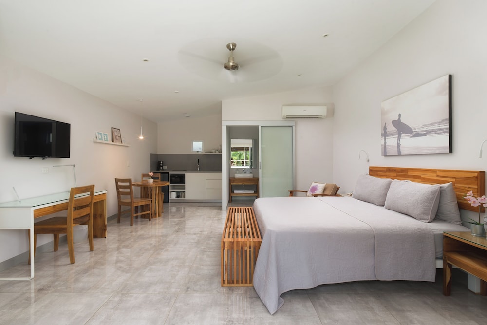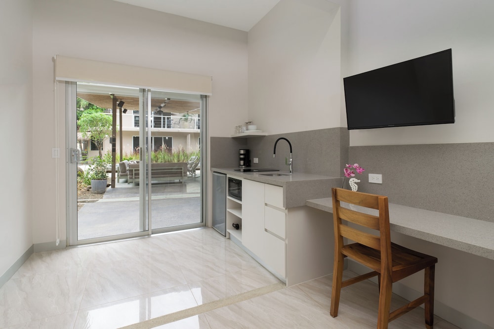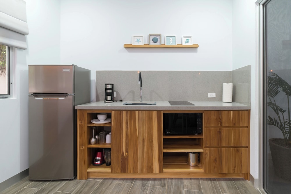 Very quiet spot, does not feel like the rest of Tamarindo. Walking distance to shops restaurants, and beaches. My wife and I were kicking off a month in Costa Rica and it was an excellent transition spot. The apartment felt very homey with a very comfortable king bed and a very nice kitchen area with a table. The bathroom was also massive. A full coffee maker with coffee was provided. There was a full refrigerator and all the utensils we needed. They had a filtered water dispenser that served up cold water. They also had a nice little pool. Would definitely stay again if we are ever in Tamarindo.