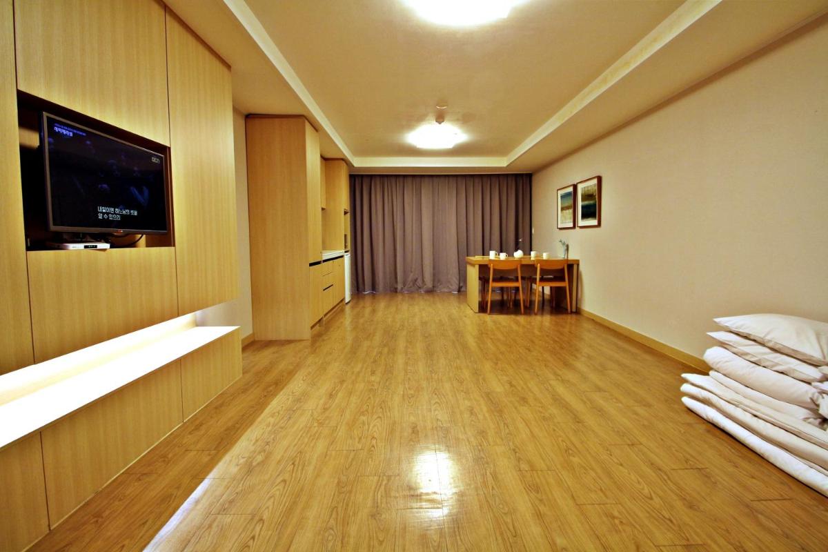 Luceville Resort offers contemporary apartments near Halla Mountain, just a short drive from Jungmun Beach. Each apartment boasts stylish hardwood floors and furnishings, along with a kitchenette, dining area, and cozy seating area with a flat-screen TV. Guests can enjoy the convenience of free on-site parking and property-wide WiFi.