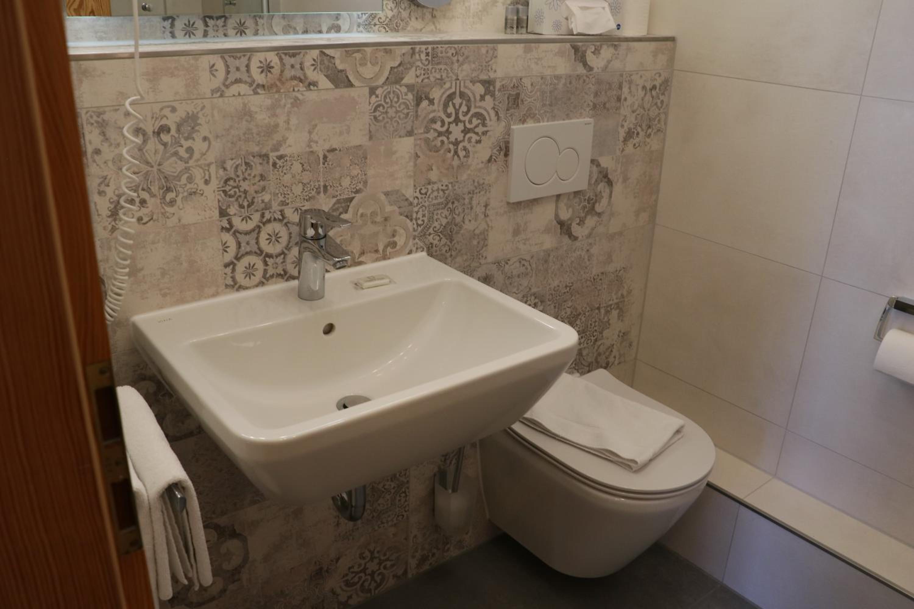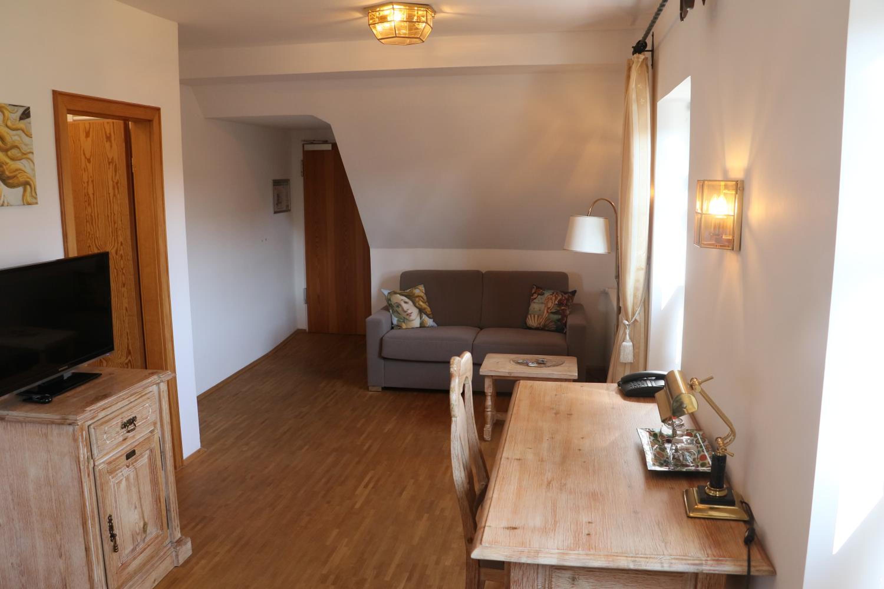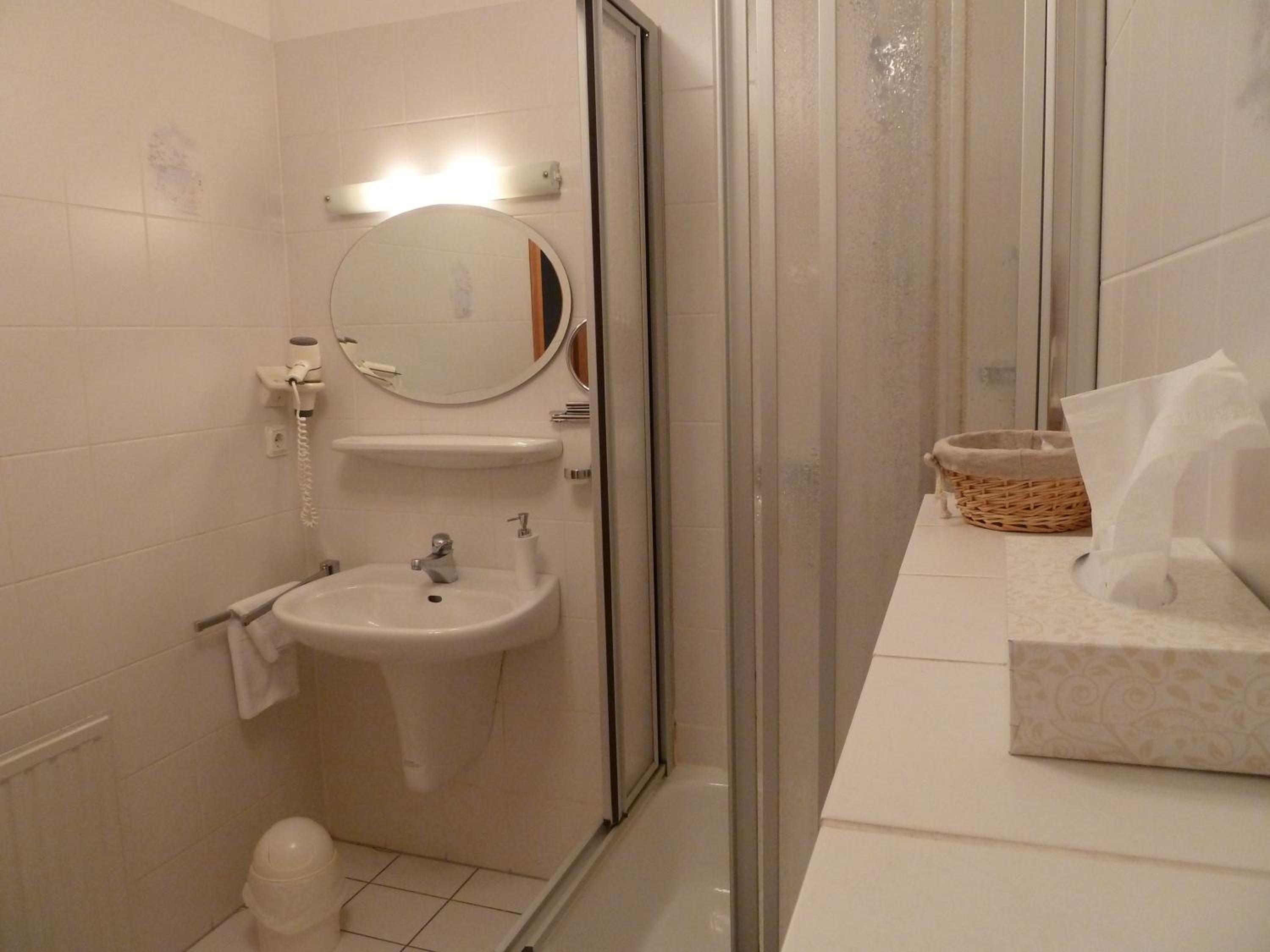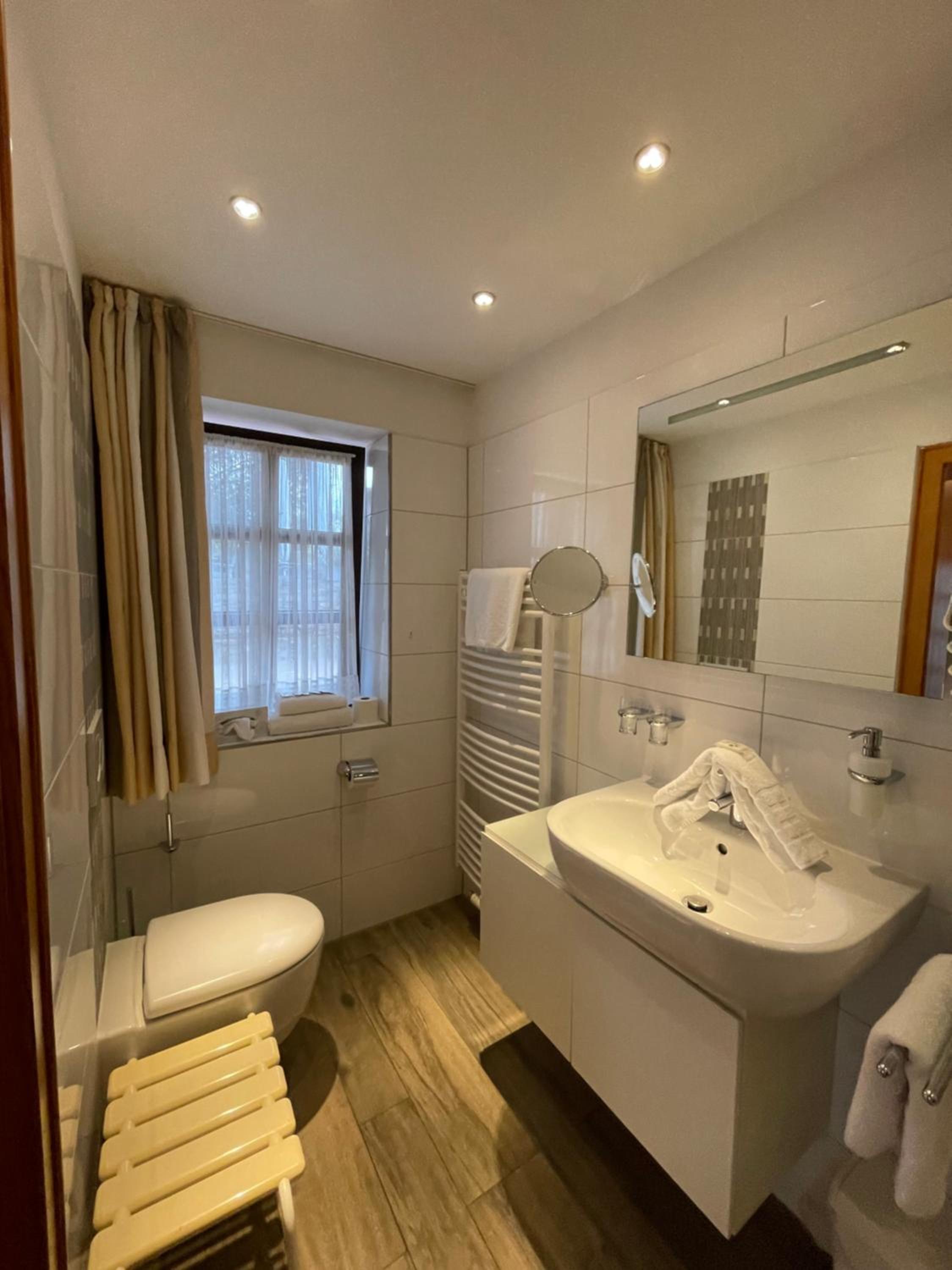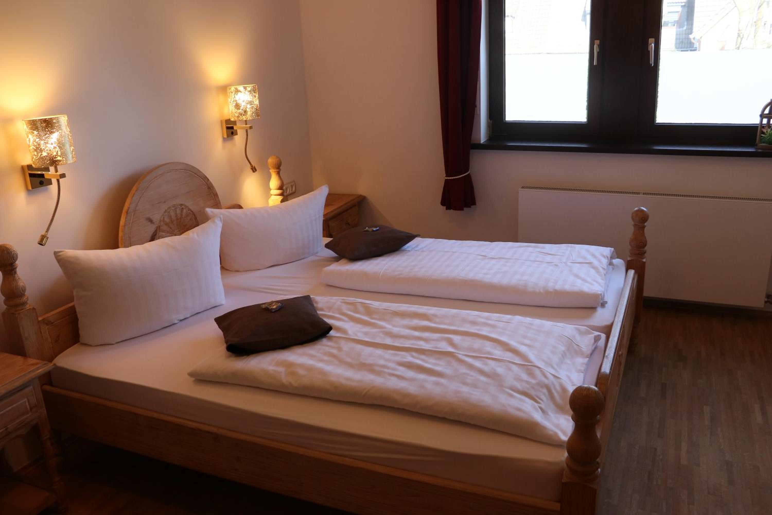 Durch das beliebte Restaurant (Mittwoch ist Schnitzeltag für 14-20 €) im Erdgeschoss ist auch bis 22 Uhr jemand für persönlichen Check-In vor Ort, sehr angenehm.