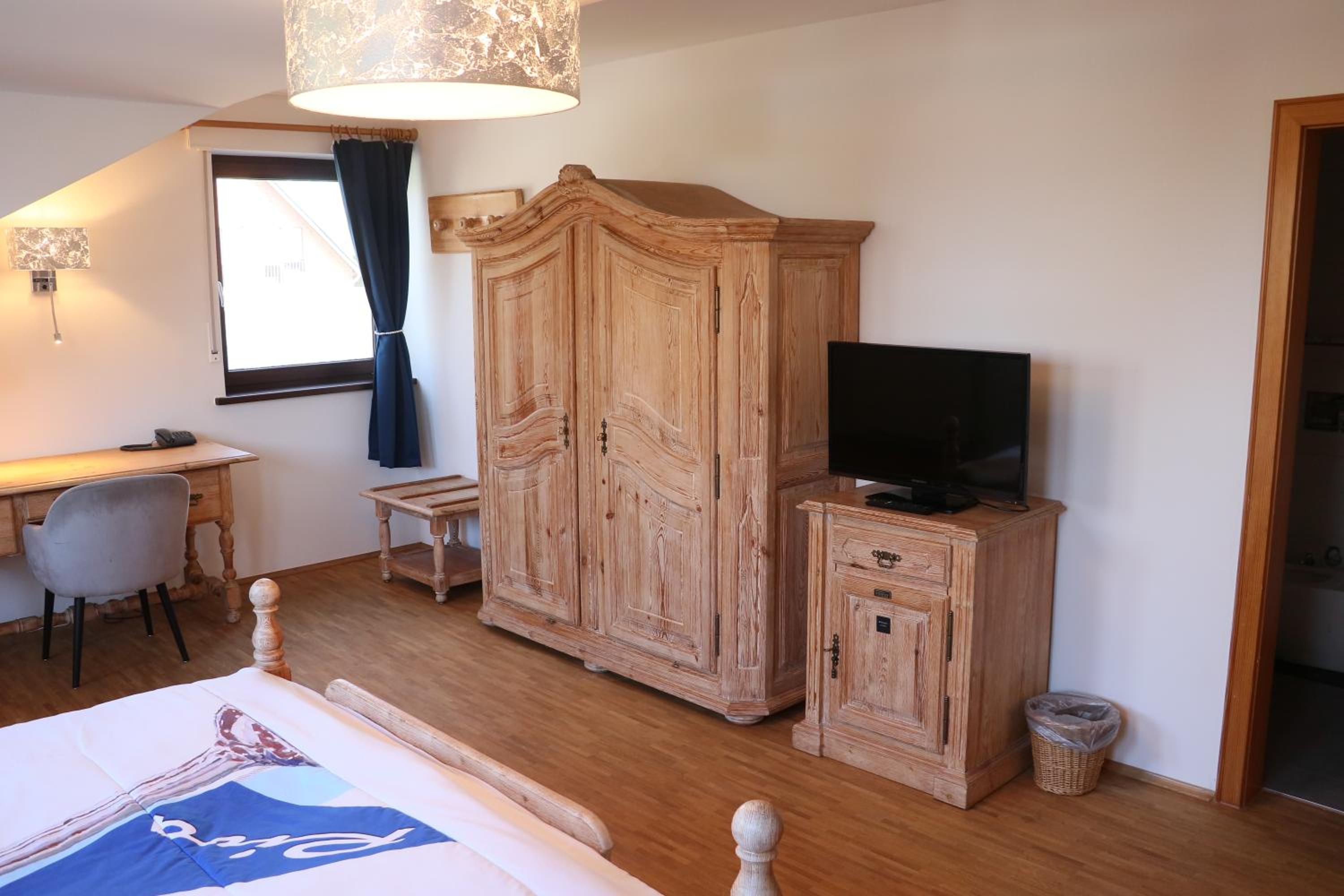 Restaurant fürs Abendessen mit dabei (außer Montag). Kostenlose Parkplätze fürs Auto. Großzügige Anlage mit Biergarten mit (zumindest für mich) großen Zimmern. Bisher hatte ich immer schön ausgestattete Zimmer und Badezimmer auf dem neuesten Stand.