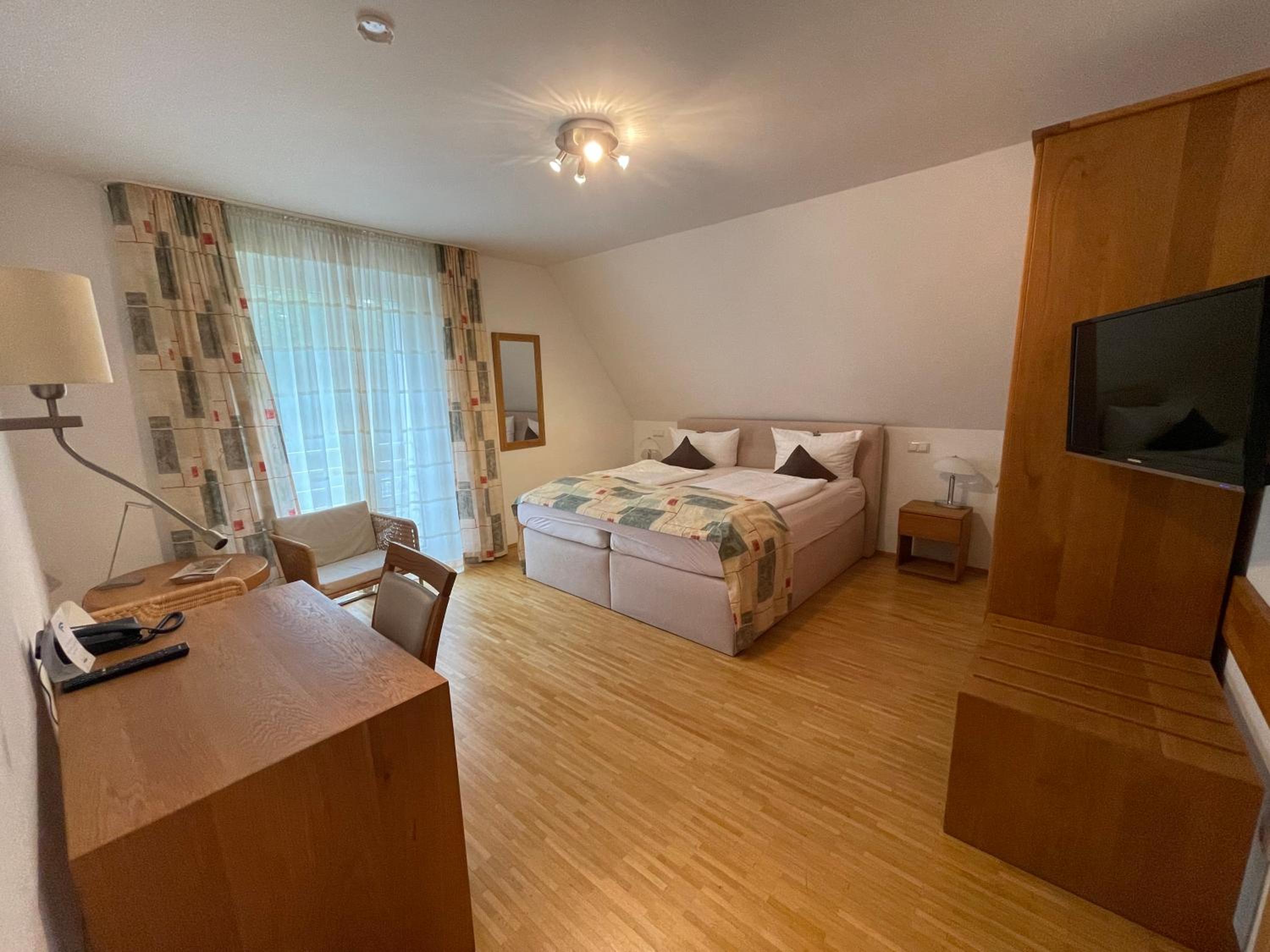 Groot authentiek Duits hotel/ restaurant op korte afstand van de snelweg, rustig gelegen. Vriendelijk personeel, ruime wel wat gedateerde kamer. Gezellig restaurant waar je lekker kunt eten. Verzorgd ontbijt.