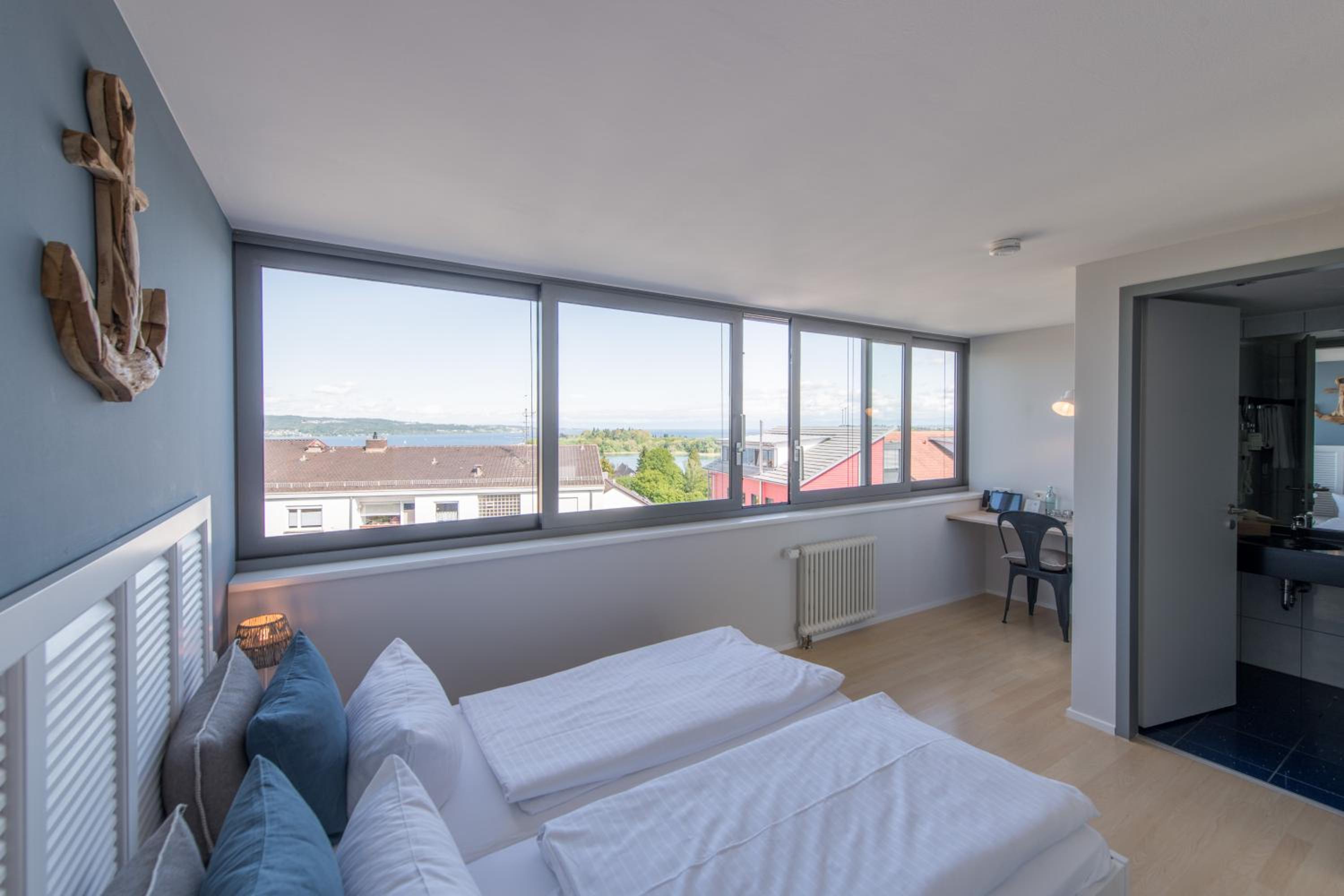 Das Frühstück war sehr lecker, schöne Auswahl. Was ich toll fand ,ich durfte meinen kleinen Hund mitnehmen, das ist nicht überall so. Auch die Umgebung ist richtig schön denn man ist in wenigen Schritten am Bodensee.