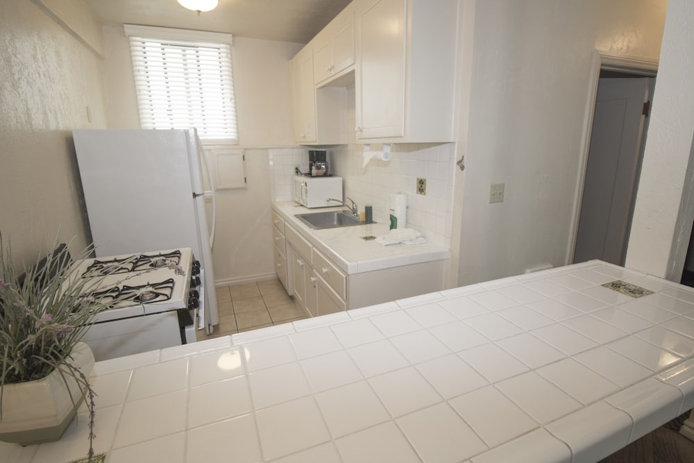 Excellent location. Understandably this is not an upscale property and the main value is in its location. But I think there are a couple of easy fixes to improve the customer experience a lot. We stayed in Room 141 - the blinds don’t work fully and being right next to the parking lot and the walkway it is hard to sleep. Some real blackout curtains would be very helpful. Another problem is in hot summer days there is no effective cooling. One of our bedroom had a ceiling fan and that runs extremely slow and is ineffective, the other bedroom had none. We called the office and asked if there are tower fans. There was none - I think adding some modern functioning cooling options to the guest rooms will greatly improve experience.