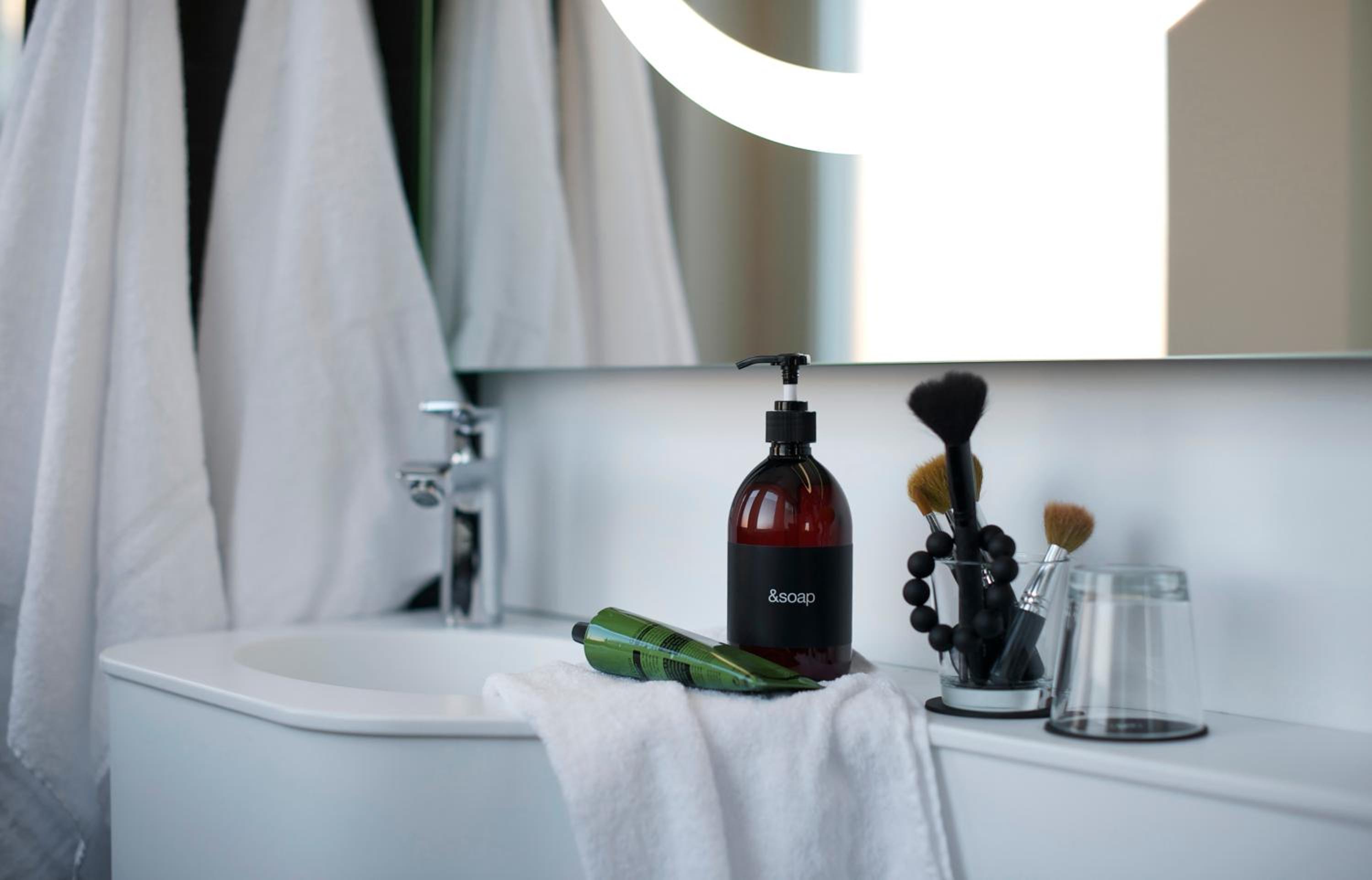 Dubbelrum var perfekt för en person men hade varit alldeles för litet om vi varit två. Likaså för smal säng 140 cm för två. Saknade hudlotion.