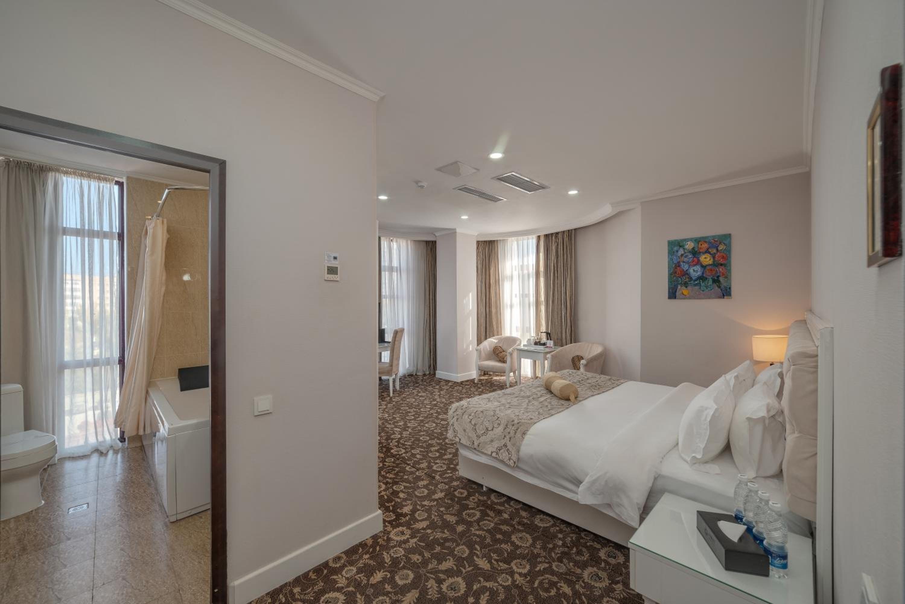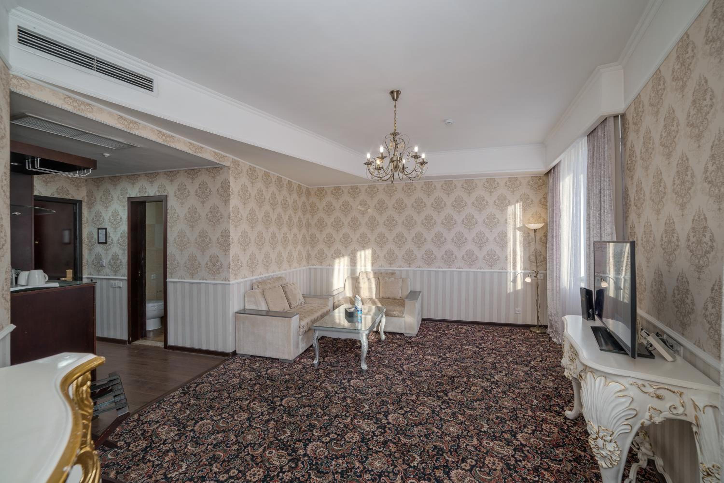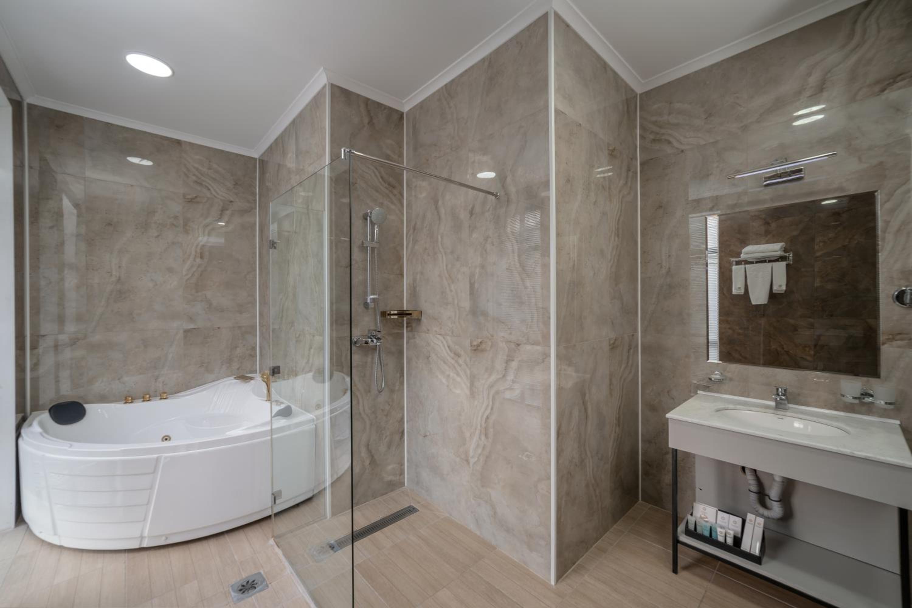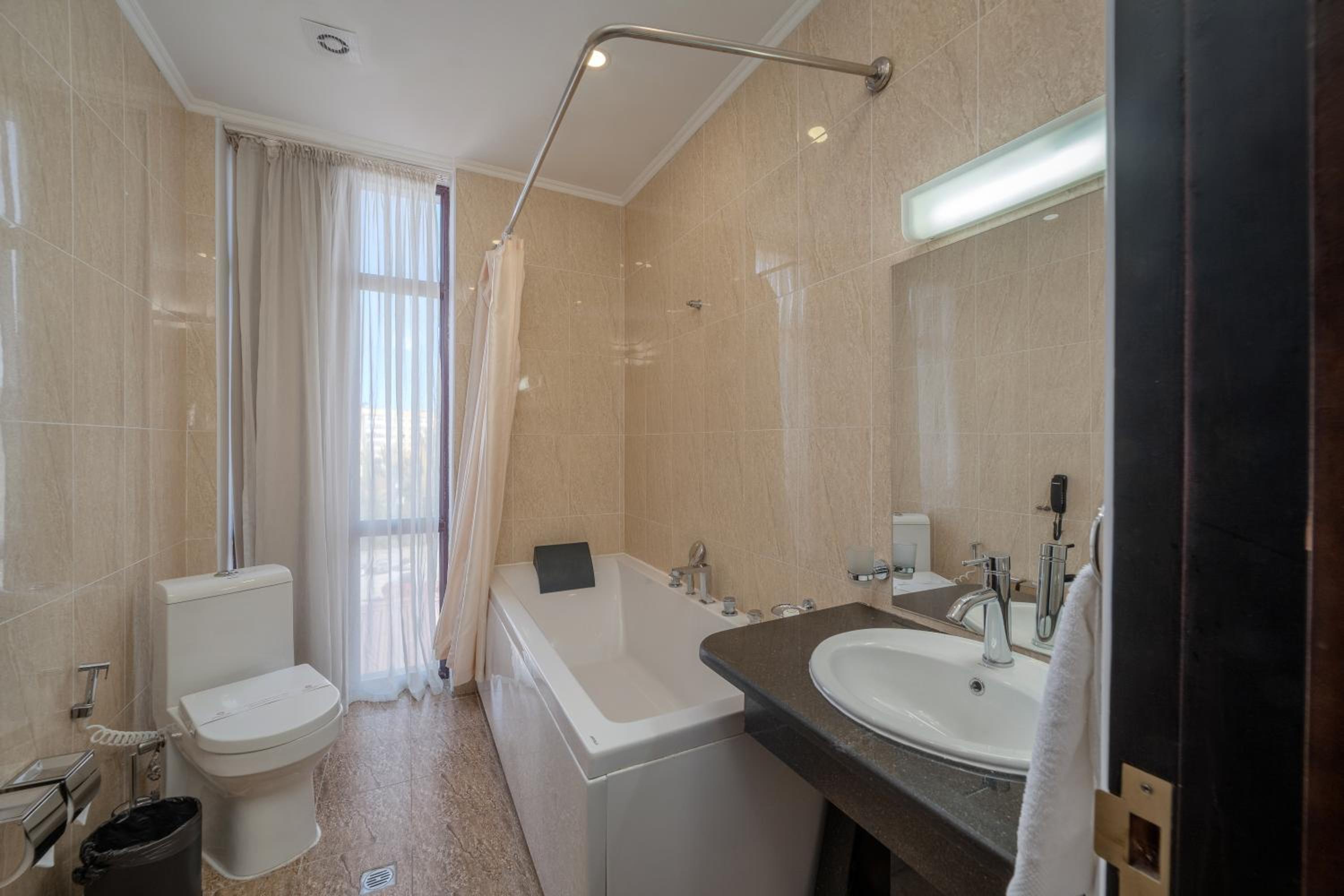 Some small things were average: like stain on furniture, plastic slippers, smell in changing room, damaged bath handles, empty minibar, but overall we enjoyed our stay. Thank you to hotel staff!