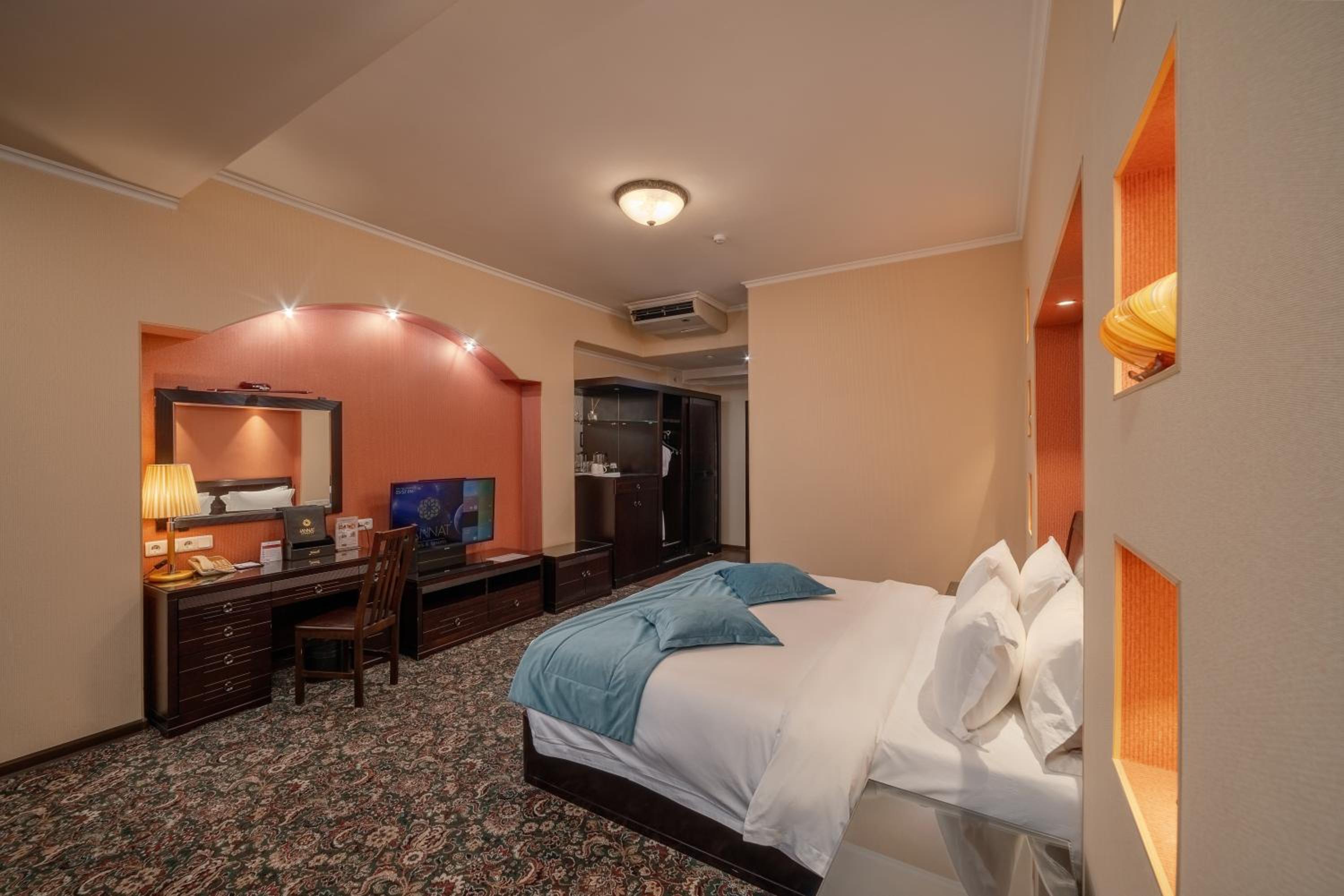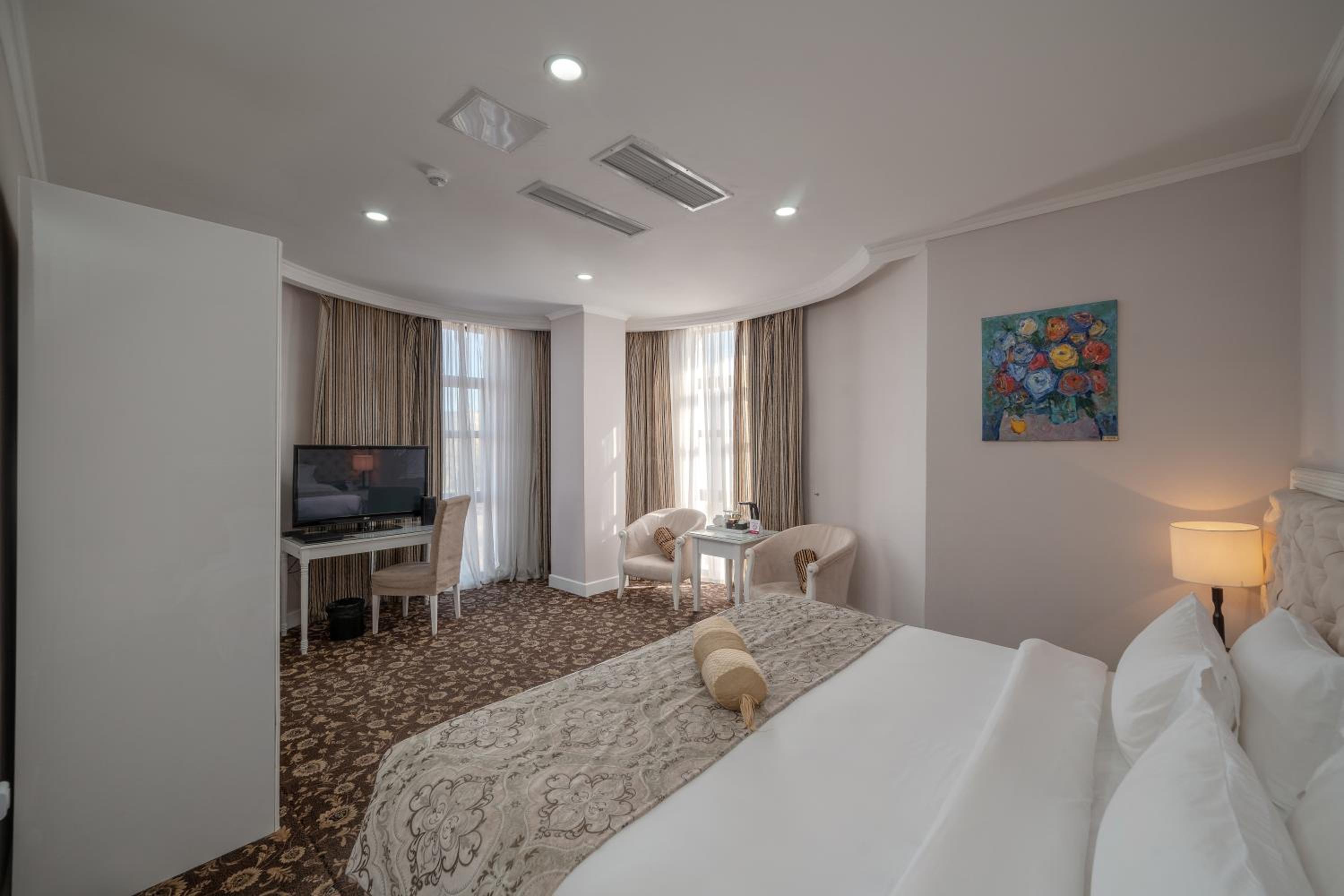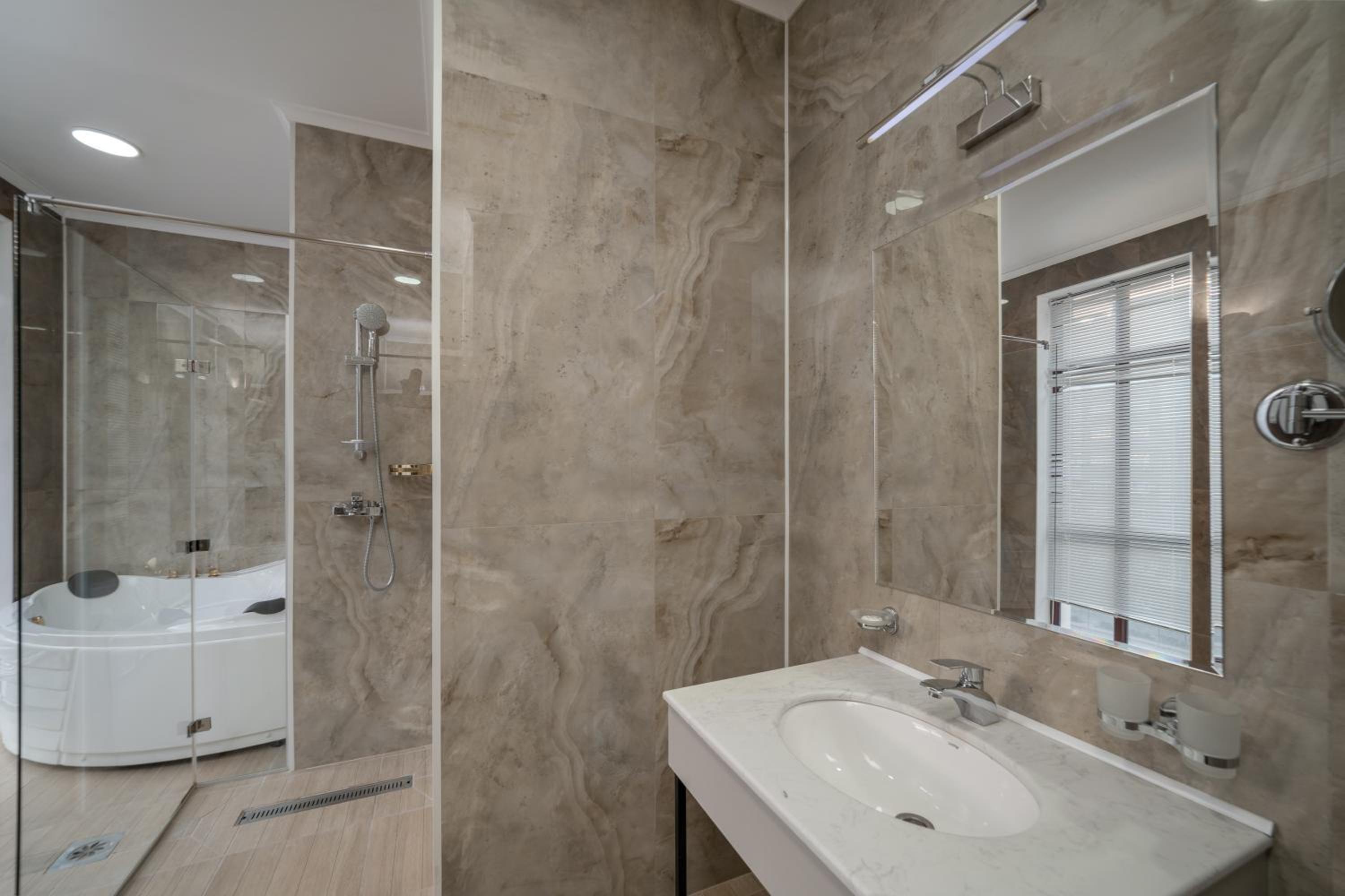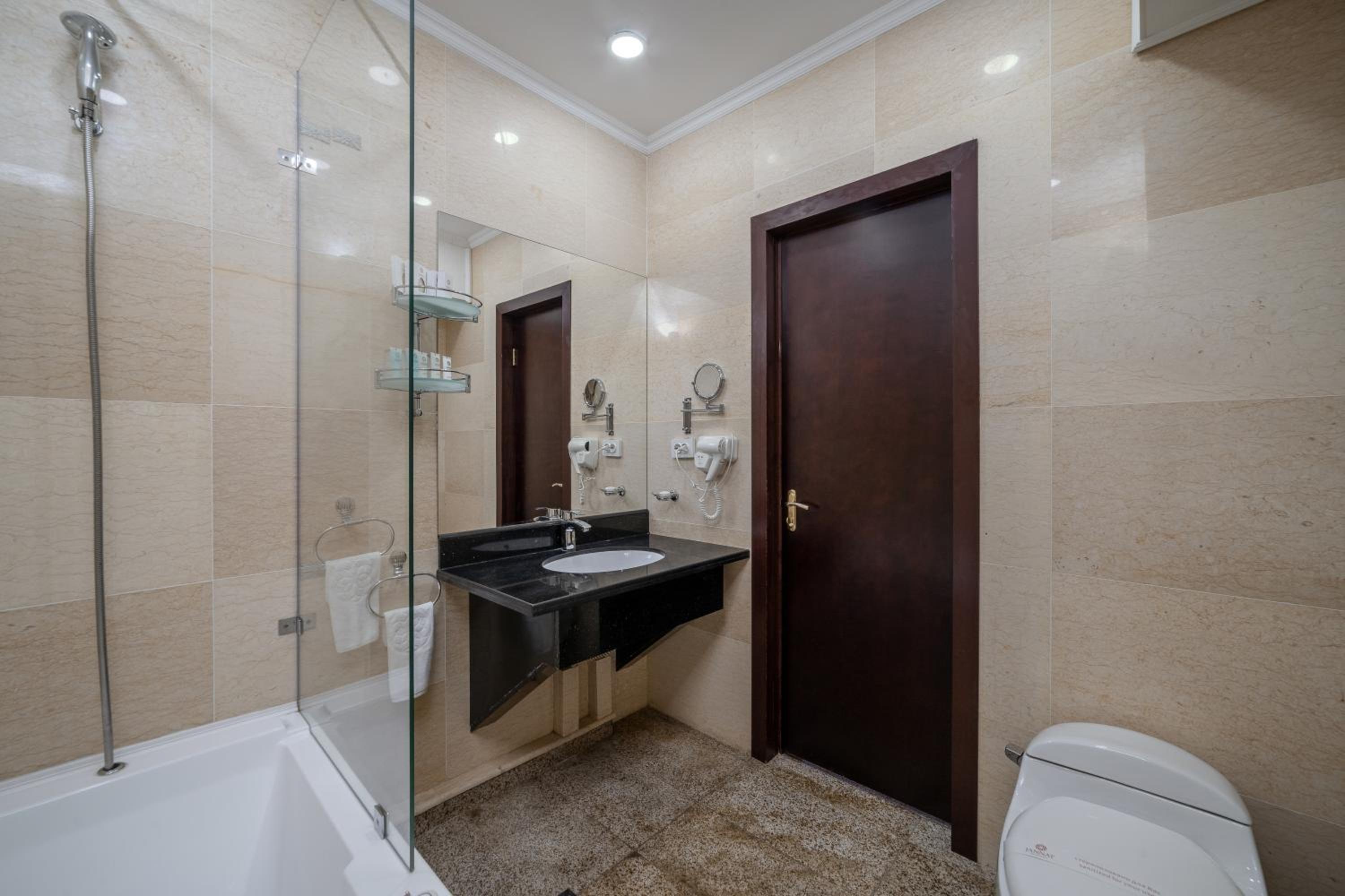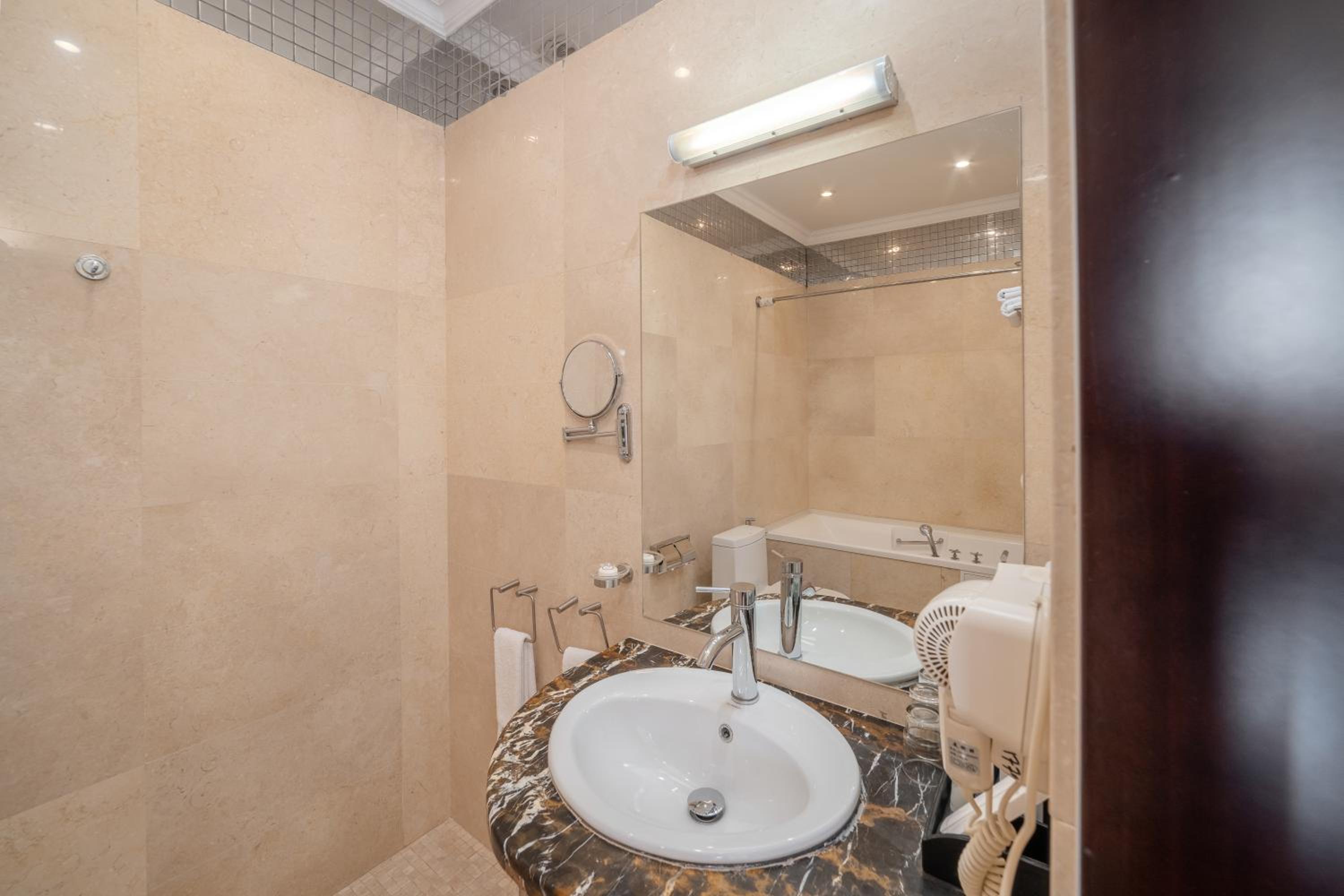 Some small things were average: like stain on furniture, plastic slippers, smell in changing room, damaged bath handles, empty minibar, but overall we enjoyed our stay. Thank you to hotel staff!