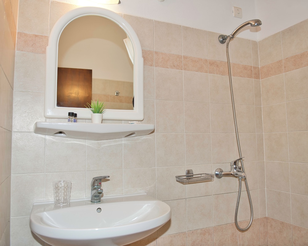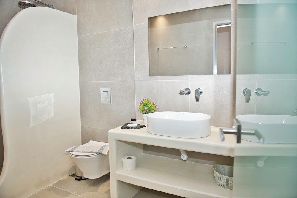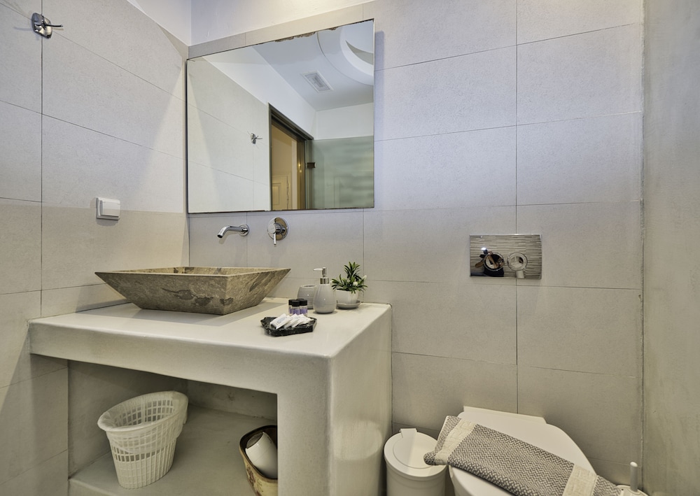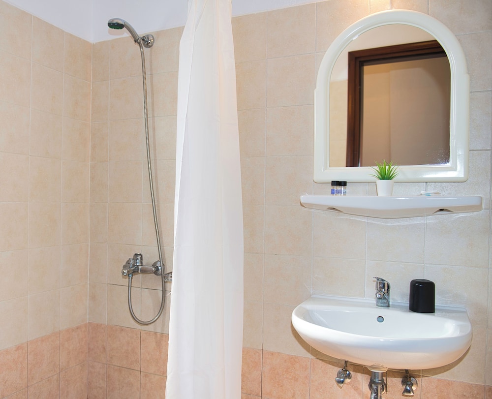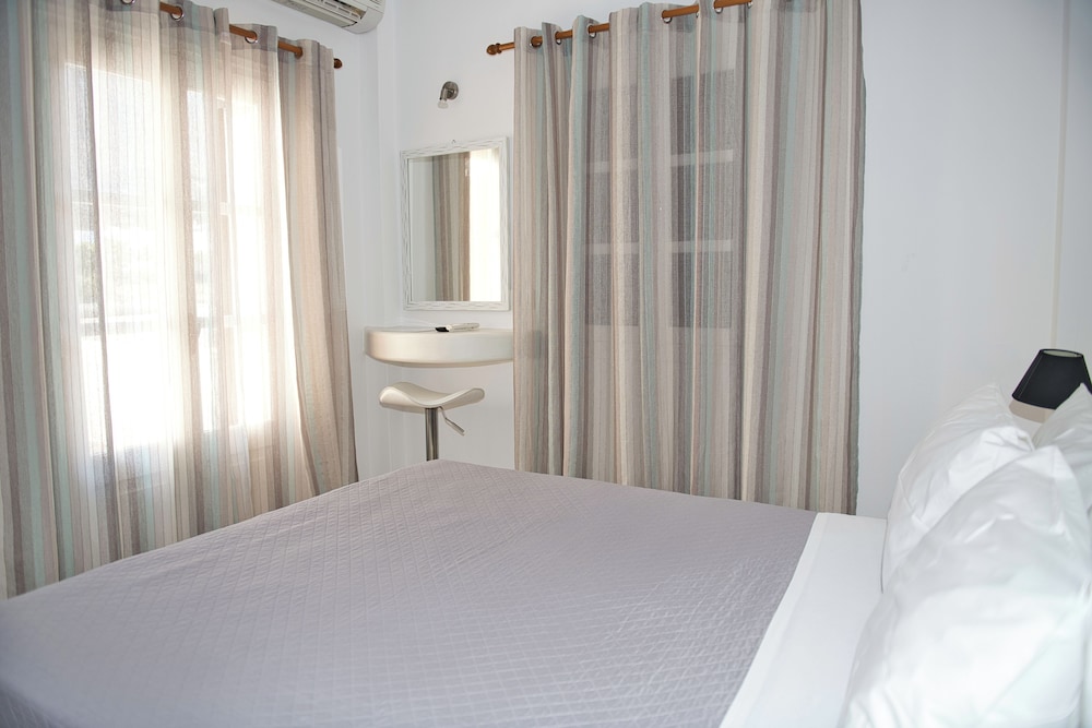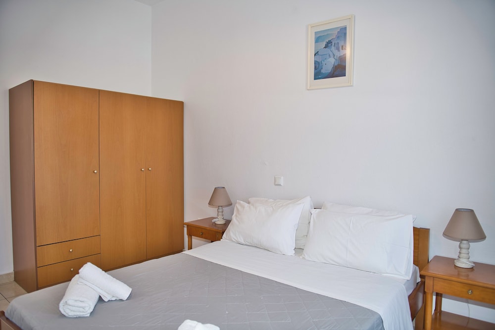 This was a nice hotel to stay in. Staff were very kind and accommodating. The rooms and living room were clean. The bathroom was modern and cool. They are more than 1/2 a mile away from the bus stop and a little over a mile to get to Kamari beach.