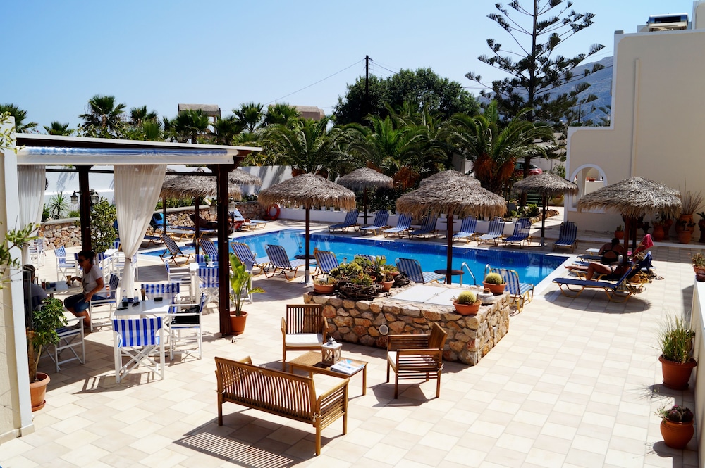 Abbiamo soggiornato in questa struttura solamente due giorni in quanto eravamo di passaggio a Santorini. L’hotel è veramente bello, la zona della piscina è bellissima e molto curata. A noi è stato assegnato un appuntamento e seppur l’arredo fosse un po’ datato, era pulito e spazioso. Colazione buona e dobbiamo dire che la proprietaria è stata davvero molto gentile e accogliente.