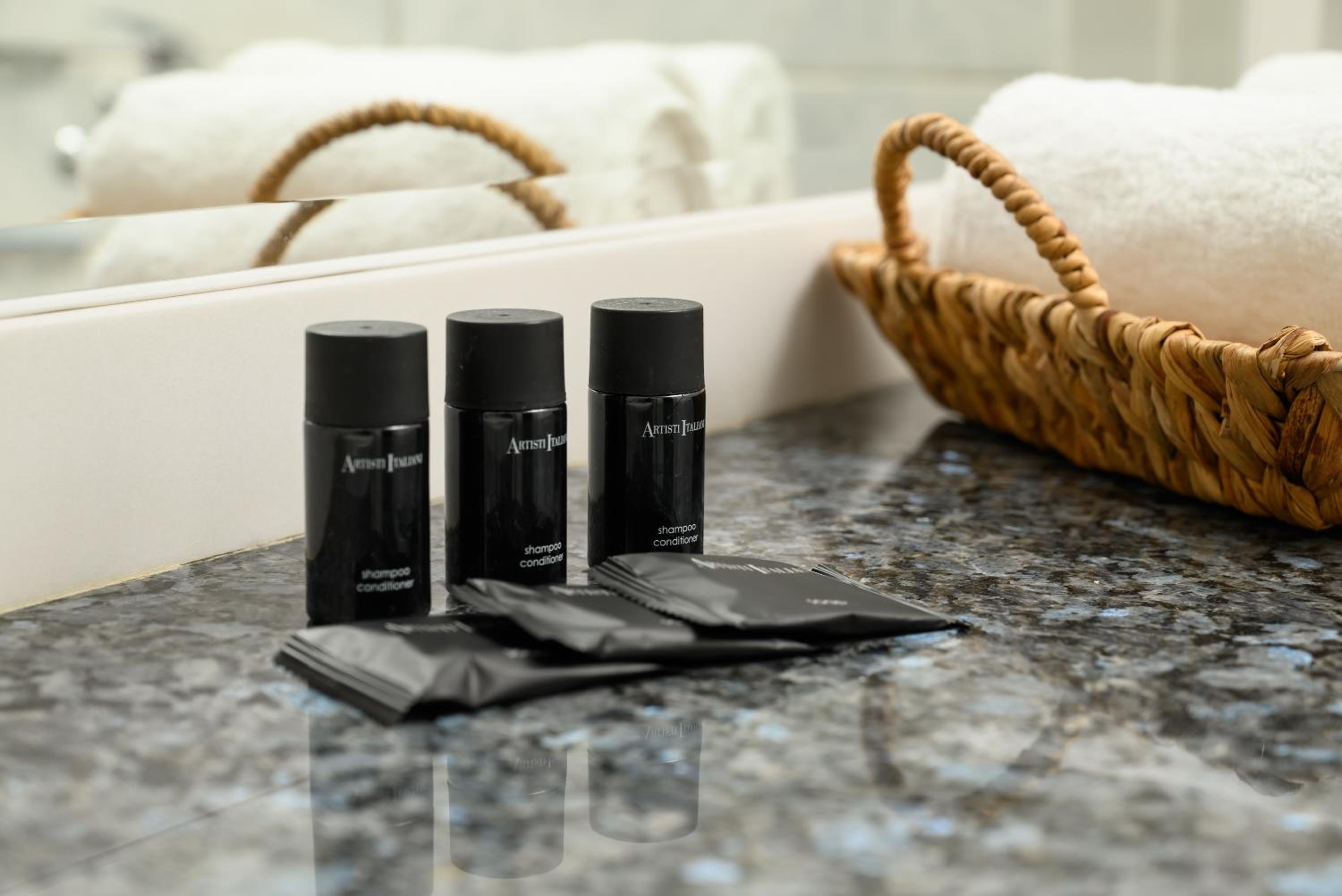There is no hair dryer in the room, only one at the reception that you have to ask for and wait if somebody else has it. There is no ironing machine. We had two very small (20 ml) 2in1 shampoo and shower gel for two days, two persons. Not nearly enough for two people so we had to buy some. The bed was supposed to be double but it was just 4 mattresses put together. The bathroom door was very noisy at night. The air conditioning was right above the bed at top right so you cannot let it on and stay in bed comfortably. We had breakfast which was not very good.