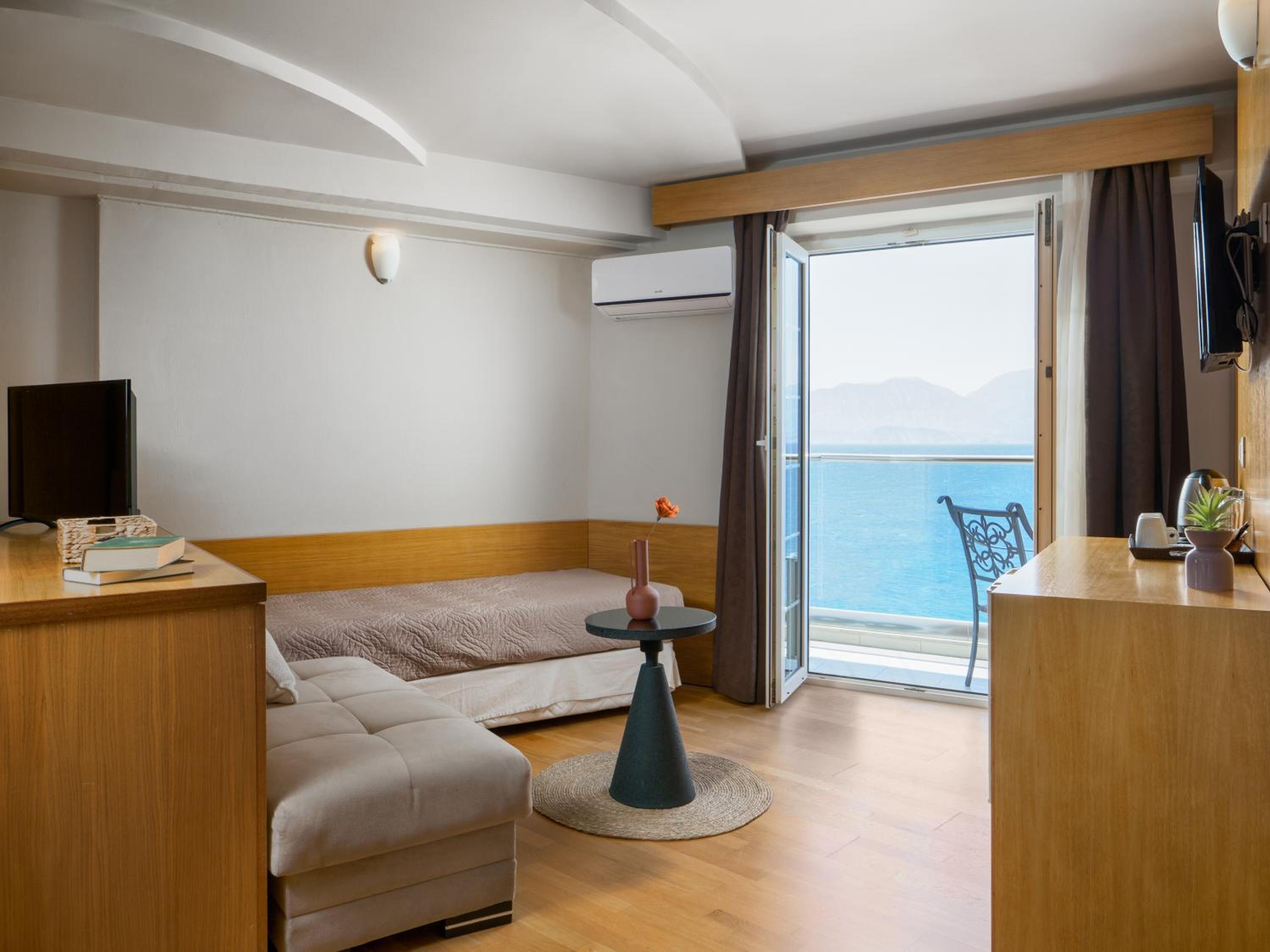 Η θέα ήταν πολύ καλή . Το πρωινό ήταν μέτριο . Το δωμάτιο ήταν στενάχωρο ακούγονταν τα διπλανά δωμάτια .