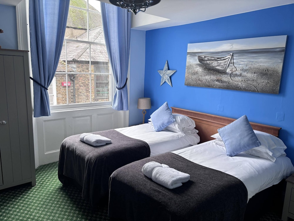 A pleasant, town centre hotel. We enjoyed the friendly staff, decent, if somewhat dated, room and lovely food and beverages at reasonable prices in the pub/restaurant. As stated, the room was dated but clean. Only a few issues… The tv was visible from the sofa but not from the bed. Also, it was a Friday night with live music downstairs. Our window looked out over the front door so those hanging around outside were easily heard and did keep us up until after midnight. I knew of this issue ahead of time and was planning on being downstairs and enjoying the music myself, but a migraine sent me to bed early so the music and partying became an issue. However, if you plan on staying up late, you may enjoy it as the pub seemed to have a lovely, fun atmosphere. Can’t complain as the problem was mine. The town of Sandwich was lovely and hope to come again sometime. Would stay here again.