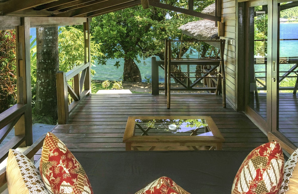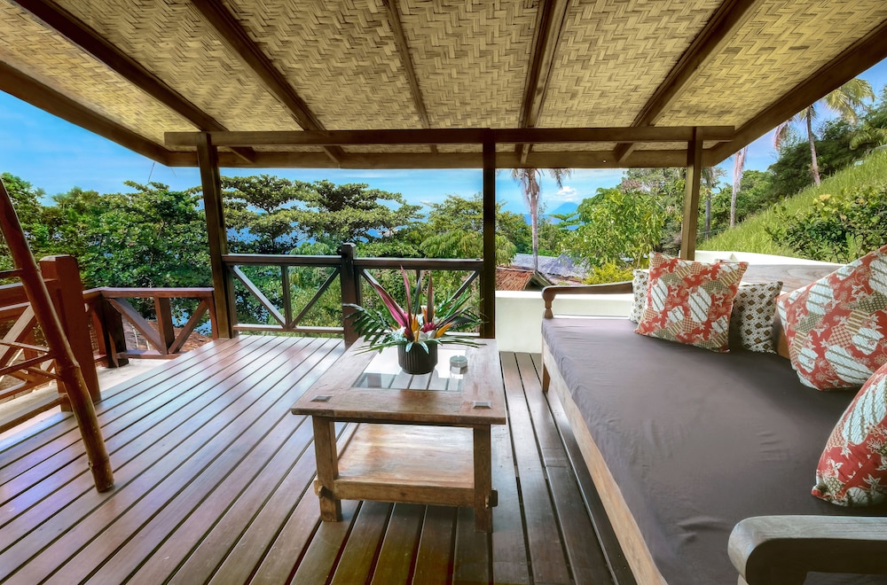 The accommodation was really nice and offers all you need including warm water. I really liked the bathroom which was very modern and cozy. The porch has comfortable couches to relax in and listen to the ocean. The entire resort is a beautiful garden that hosts exotic birds, butterflies, plants and flowers, a little stream and swimming pool. A really fantastic place that we even got to have all for ourselves after New Years when all the other guests checked out.
