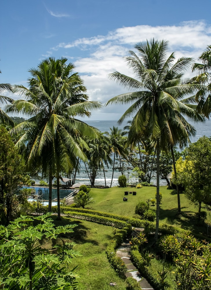 I chose Janji Laut specifically because it was farther outside the main city of Manado, but this does mean that there were no other restaurants or shops within walking distance of the resort. However, the food at the resort was delicious! I was the only guest at the resort for most of my stay there, but the staff were very amenable and served my meals whenever I was ready for them, accommodating any requests I made. I loved sitting out on the porch of my room to read. The room was very clean and well-kept. I'm not able to upload photos from my computer, but the grounds were beautiful - what you see on the site here is what you get! It was pretty far from Manado and there was no TV in the room, but I was not looking for these things. It was a very peaceful place and exactly what I was looking for.