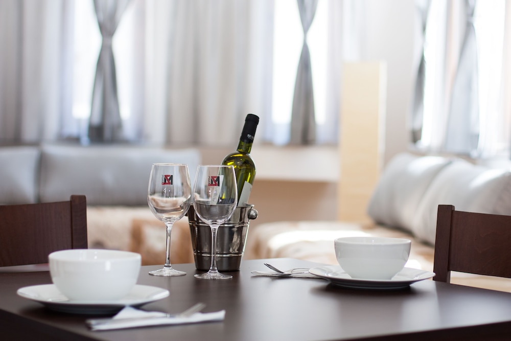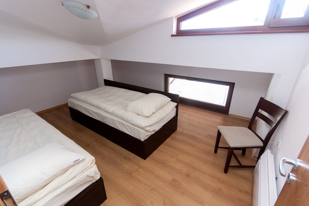 Ruby Tower is a nice, small apartment building about a 5-minute walk to the town shops/restaurants. It's about a 10-minute walk from the town center, and probably 15 minutes to the base gondola. For skiing, most of the shops will pick you up at your hotel with your skis, so just make arrangements the day prior. For us (family of 5), this worked out great. Back to the apartment, it is roomy and spacious. There's a supermarket right around the corner, so you can buy b-fast or dinner items to cook in the apartment. The staff was very friendly. The rooms were clean, and we found the beds comfortable. We thought this was a great value for the price, and Bansko was a fun town to spend a few days. We definitely recommend Ruby Tower.