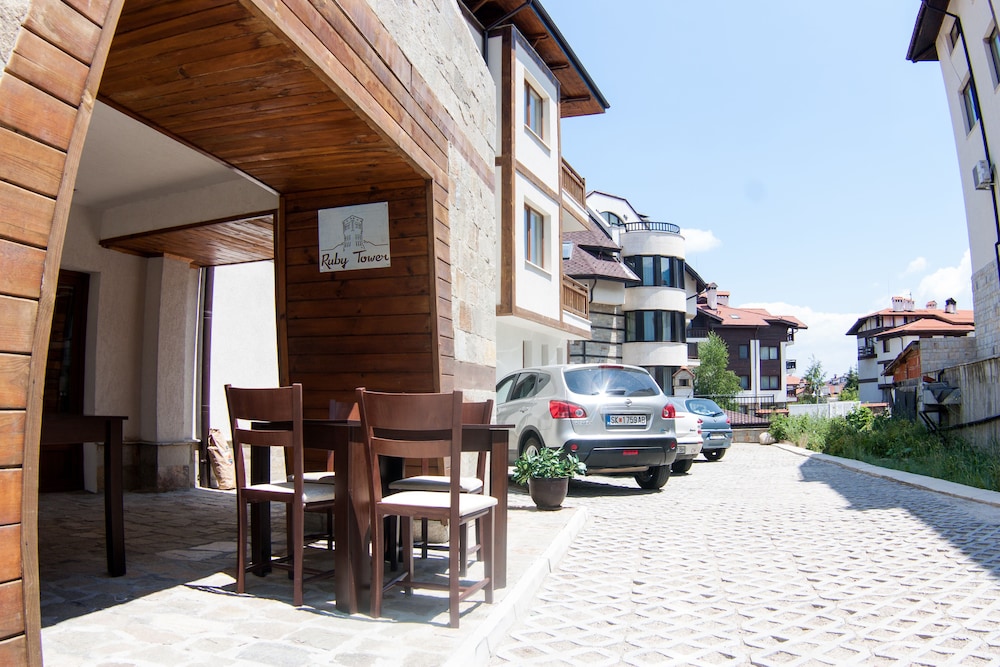 Enjoy the scenic beauty of Bansko from the terrace and garden of Ruby Tower Apartments. Immerse yourself in the tranquil surroundings and let the mountains captivate you.