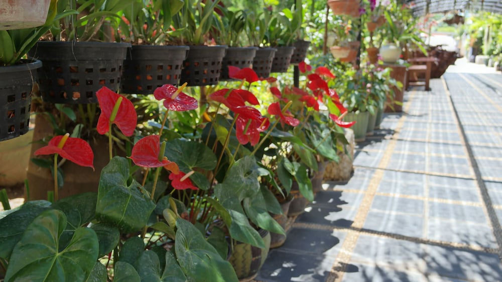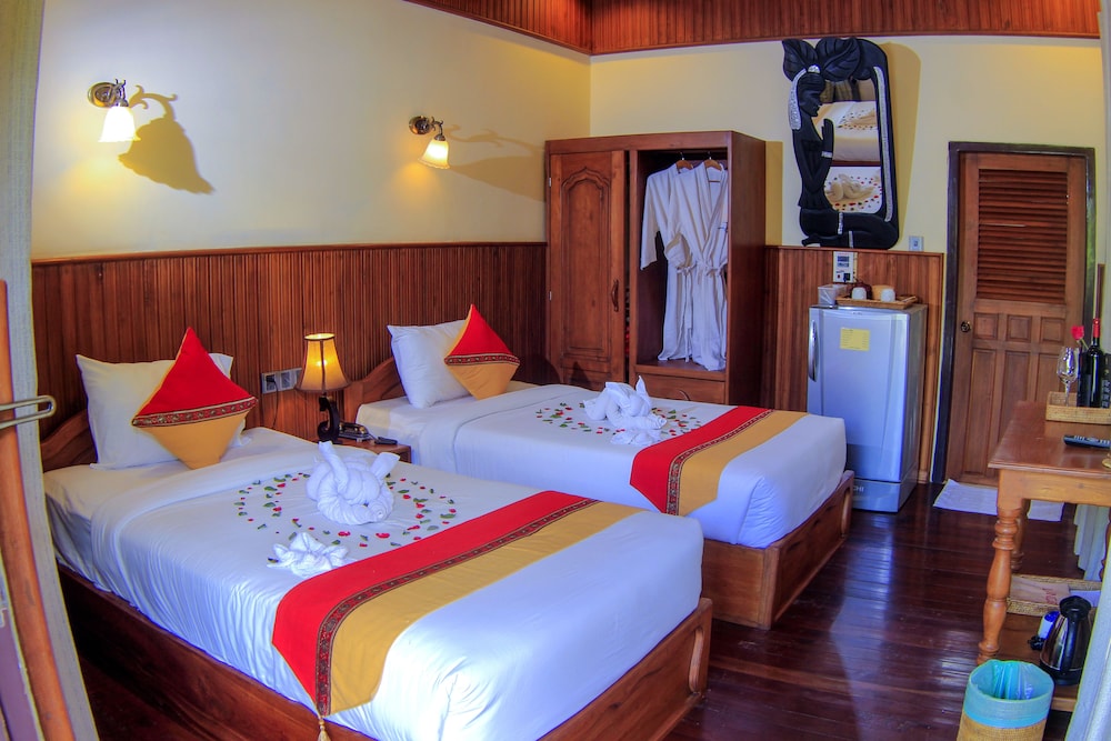 As for the amenities, it’s a lovely spot with plenty of plants and flowers around. The rooms are clean and comfortable (although our bathroom shower did have an uneven floor that meant the water didn’t drain very well). Each room has a veranda as well, so you can sit out and enjoy the warm weather. And everything seems to be well maintained – not always a given in Asian countries.