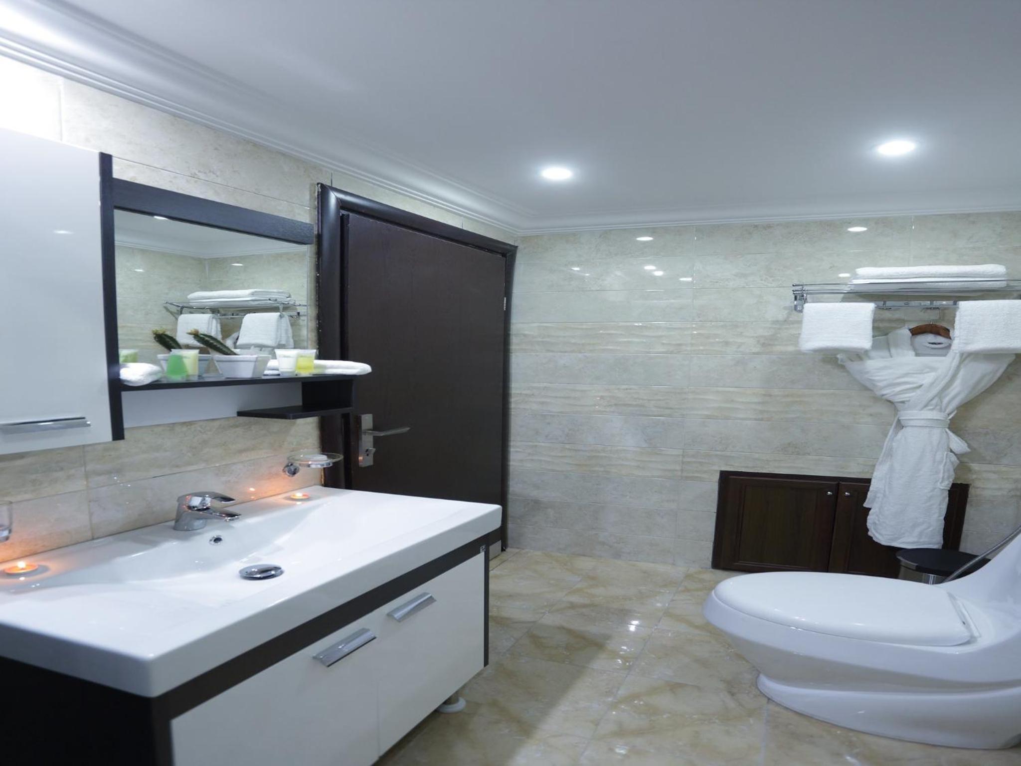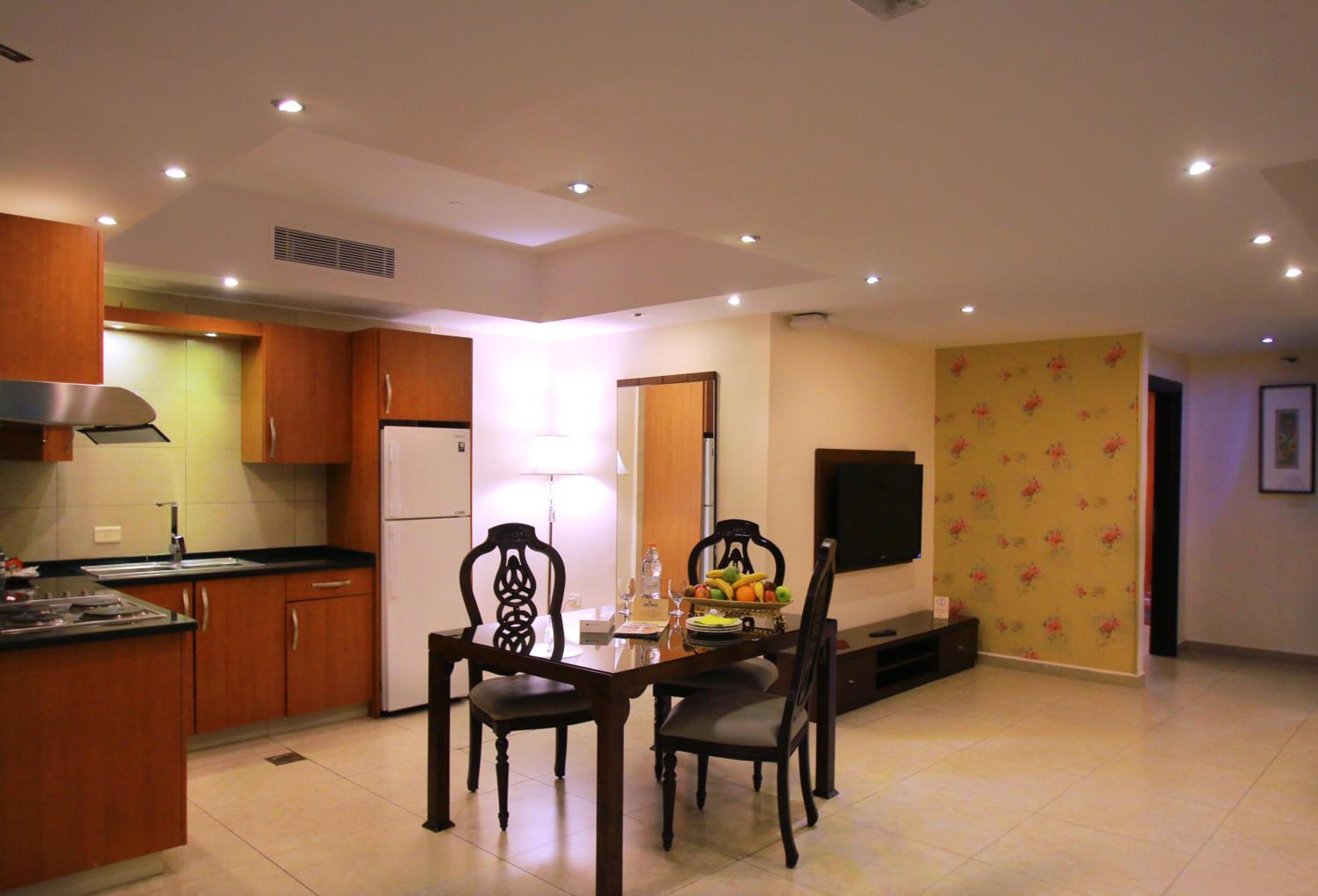 The City Rose Hotel Suites, situated near Amman Mall, offers spacious suites with a flat-screen TV, dark wood furniture, and calming colors. Guests can enjoy the convenience of a kitchenette, complete with a microwave and refrigerator. The bathroom features a luxurious bath, shower, bathrobe, and hairdryer, ensuring a comfortable stay.