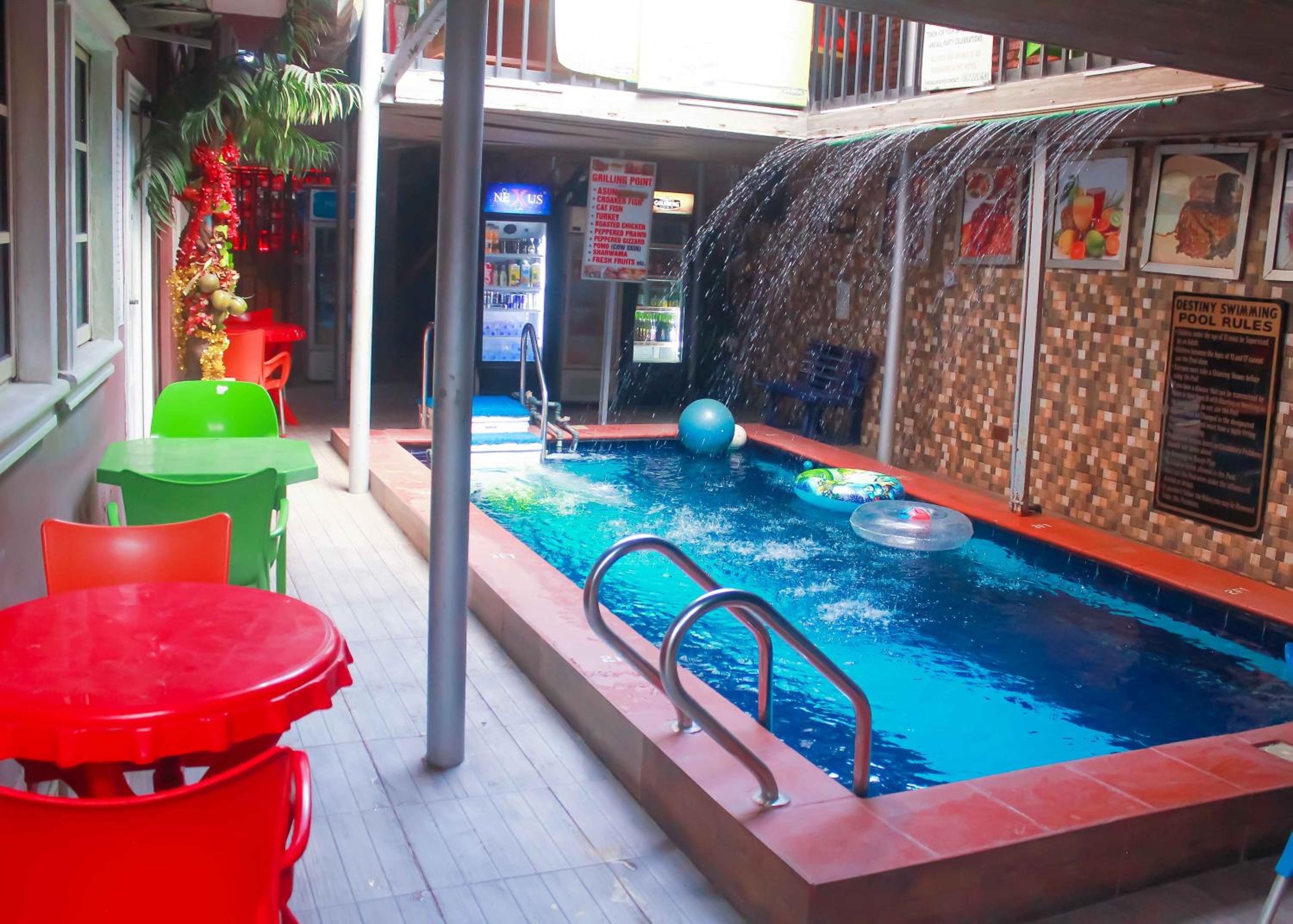 Luxurious Amenities: Enjoy the outdoor swimming pool, shared lounge, and on-site restaurant and bar during your stay at Definite Destiny Hotel by YOTRAD.